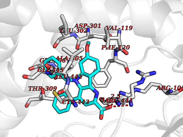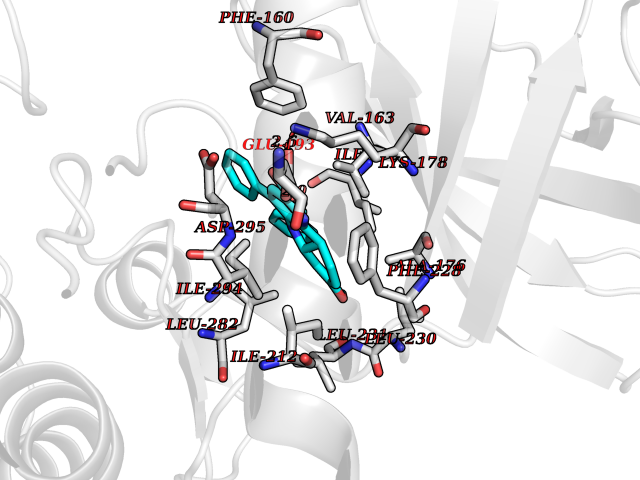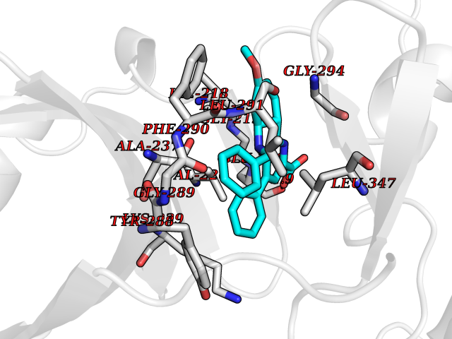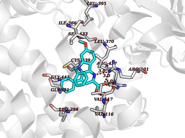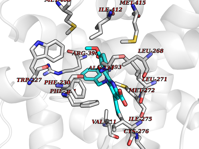 | Target general information Gen name CYP2C8 Organism Homo sapiens (Human) Uniprot ID TTD ID NA Synonyms NA Protein family Cytochrome P450 family Biochemical class Oxidoreductase Function Arachidonic acid epoxygenase activity.Aromatase activity.Caffeine oxidase activity.Estrogen 16-alpha-hydroxylase activity.Heme binding.Iron ion binding.Monooxygenase activity.Oxygen binding. Related diseases A chromosomal aberration involving BCL2 has been found in chronic lymphatic leukemia. Translocation t(14;18)(q32;q21) with immunoglobulin gene regions. BCL2 mutations found in non-Hodgkin lymphomas carrying the chromosomal translocation could be attributed to the Ig somatic hypermutation mechanism resulting in nucleotide transitions. {ECO:0000269|PubMed:2875799, ECO:0000269|PubMed:3285301}. Drugs (DrugBank ID) DB08607; DB08496; DB14055; DB12001; DB05812; DB15568; DB00918; DB12015; DB01424; DB01118; DB00321; DB00381; DB00613; DB01060; DB17449; DB01217; DB01435; DB11901; DB06605; DB00714; DB01072; DB01076; DB11995; DB00972; DB08822; DB12781; DB13997; DB05015; DB16703; DB06770; DB05229; DB00443; DB12236; DB00307; DB01393; DB13746; DB16536; DB06616; DB12267; DB12151; DB01194; DB01222; DB00921; DB06772; DB08875; DB00201; DB13919; DB00796; DB09061; DB08502; DB00564; DB00482; DB06119; DB00439; DB00608; DB00169; DB09201; DB00501; DB00604; DB12499; DB00349; DB00845; DB00758; DB00257; DB00363; DB00907; DB01394; DB05219; DB00531; DB08912; DB11682; DB00250; DB09183; DB01609; DB01234; DB14649; DB09213; DB00829; DB00586; DB00255; DB00343; DB01184; DB00625; DB11979; DB15444; DB06210; DB13874; DB11718; DB08899; DB00530; DB00783; DB13952; DB13953; DB13954; DB13955; DB13956; DB00402; DB00977; DB14766; DB00973; DB12466; DB04854; DB01023; DB01039; DB16165; DB00544; DB13867; DB08906; DB00588; DB01095; DB11679; DB01241; DB01645; DB11978; DB01218; DB00741; DB14538; DB14539; DB14540; DB14541; DB14542; DB14543; DB14545; DB14544; DB01611; DB12471; DB01050; DB09054; DB01181; DB00619; DB16200; DB01029; DB11633; DB06636; DB00951; DB11757; DB14568; DB09570; DB01221; DB06738; DB01026; DB01009; DB00465; DB00448; DB01259; DB09078; DB12070; DB05667; DB08918; DB00451; DB04725; DB00281; DB17083; DB01583; DB09198; DB06448; DB00836; DB00455; DB12130; DB00678; DB00227; DB09280; DB15935; DB06077; DB08932; DB14921; DB14009; DB00603; DB00784; DB00814; DB00170; DB00532; DB01357; DB00333; DB09241; DB00959; DB00916; DB01110; DB06595; DB00834; DB16236; DB11763; DB00764; DB14512; DB00471; DB00295; DB06510; DB00688; DB01024; DB00486; DB00788; DB09199; DB00622; DB00184; DB01115; DB04868; DB06712; DB12005; DB06670; DB09080; DB16267; DB12513; DB09296; DB00338; DB11632; DB01062; DB12612; DB01229; DB03796; DB05467; DB00617; DB06589; DB08922; DB00850; DB00780; DB01174; DB00946; DB00252; DB01132; DB00554; DB17472; DB08860; DB08901; DB15822; DB14631; DB00635; DB01032; DB00818; DB00205; DB04216; DB00908; DB00468; DB01129; DB00481; DB08896; DB11853; DB14761; DB00912; DB16826; DB00615; DB01045; DB11753; DB01201; DB01220; DB08864; DB08931; DB14840; DB14924; DB00503; DB09200; DB00533; DB00412; DB04847; DB12332; DB00938; DB12543; DB01232; DB00418; DB01037; DB11362; DB15685; DB11689; DB06739; DB00641; DB01261; DB00398; DB15569; DB00421; DB09118; DB00359; DB06729; DB01138; DB00675; DB00799; DB12020; DB09256; DB01079; DB12095; DB15133; DB00857; DB00342; DB08880; DB00624; DB13943; DB13944; DB13946; DB11712; DB00208; DB06137; DB01124; DB01685; DB00214; DB08911; DB00374; DB00755; DB00897; DB12245; DB12808; DB00347; DB00440; DB00197; DB13179; DB11652; DB15328; DB12255; DB15114; DB00862; DB11613; DB08881; DB00661; DB08828; DB09068; DB12026; DB00682; DB00549; DB01198 Interacts with P13473-2; O75400-2; Q9Y371 EC number 1.14.14.1 Uniprot keywords 3D-structure; Alternative splicing; Direct protein sequencing; Endoplasmic reticulum; Heme; Iron; Lipid metabolism; Membrane; Metal-binding; Microsome; Monooxygenase; Oxidoreductase; Phosphoprotein; Proteomics identification; Reference proteome; Steroid metabolism Protein physicochemical properties Chain ID A Molecular weight (Da) 52511 Length 463 Aromaticity 0.1 Instability index 37.03 Isoelectric point 8.6 Charge (pH=7) 6.74 3D Binding mode Sequence KLPPGPTPLPIIGNMLQIDVKDICKSFTNFSKVYGPVFTVYFGMNPIVVFHGYEAVKEALIDNGEEFSGRGNSPISQRITKGLGIISSNGKRWKEIRRFSLTTLRNFGMGKRSIEDRVQEEAHCLVEELRKTKASPCDPTFILGCAPCNVICSVVFQKRFDYKDQNFLTLMKRFNENFRILNSPWIQVCNNFPLLIDCFPGTHNKVLKNVALTRSYIREKVKEHQASLDVNNPRDFIDCFLIKMEQEKDNQKSEFNIENLVGTVADLFVAGTETTSTTLRYGLLLLLKHPEVTAKVQEEIDHVIGRHRSPCMQDRSHMPYTDAVVHEIQRYSDLVPTGVPHAVTTDTKFRNYLIPKGTTIMALLTSVLHDDKEFPNPNIFDPGHFLDKNGNFKKSDYFMPFSAGKRICAGEGLARMELFLFLTTILQNFNLKSVDDLKNLNTTAVTKGIVSLPPSYQICFIPV Hydrogen bonds contact Hydrophobic contact | ||||