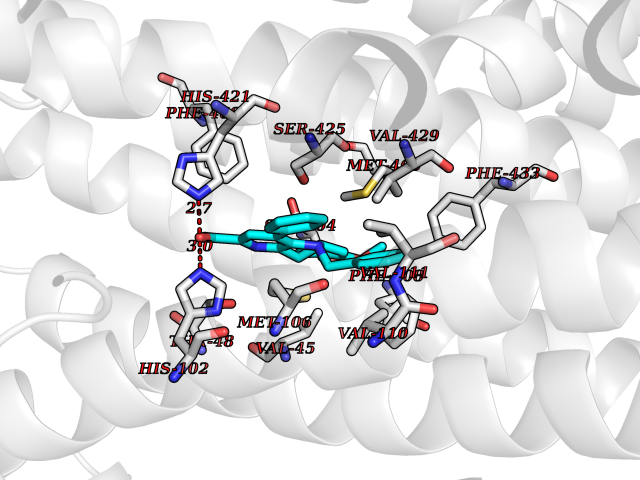 | Target general information Gen name ctaD Organism Cereibacter sphaeroides (Rhodobacter sphaeroides) Uniprot ID TTD ID NA Synonyms NA Protein family Heme-copper respiratory oxidase family Biochemical class Oxidoreductase Function Copper ion binding.Cytochrome-c oxidase activity.Heme binding.Iron ion binding. Related diseases Cystathioninuria (CSTNU) [MIM:219500]: Autosomal recessive phenotype characterized by abnormal accumulation of plasma cystathionine, leading to increased urinary excretion. {ECO:0000269|PubMed:12574942, ECO:0000269|PubMed:18476726}. The disease is caused by variants affecting the gene represented in this entry. Drugs (DrugBank ID) DB03619 Interacts with Q03736 EC number 7.1.1.9 Uniprot keywords 3D-structure; Cell membrane; Copper; Electron transport; Heme; Hydrogen ion transport; Ion transport; Iron; Membrane; Metal-binding; Respiratory chain; Translocase; Transmembrane; Transmembrane helix; Transport Protein physicochemical properties Chain ID A,C Molecular weight (Da) 88419.8 Length 794 Aromaticity 0.15 Instability index 40.59 Isoelectric point 6.09 Charge (pH=7) -10.78 3D Binding mode Sequence FTRWFMSTNHKDIGVLYLFTGGLVGLISVAFTVYMRMELMAPGVQFMCAEHLESGLVKGFFQSLWPSAVENCTPNGHLWNVMITGHGILMMFFVVIPALFGGFGNYFMPLHIGAPDMAFPRMNNLSYWLYVAGTSLAVASLFAPGGNGQLGSGIGWVLYPPLSTSESGYSTDLAIFAVHLSGASSILGAINMITTFLNMRAPGMTMHKVPLFAWSIFVTAWLILLALPVLAGAITMLLTDRNFGTTFFQPSGGGDPVLYQHILWFFGHPEVYIIVLPAFGIVSHVIATFAKKPIFGYLPMVYAMVAIGVLGFVVWAHHMYTAGLSLTQQSYFMMATMVIAVPTGIKIFSWIATMWGGSIELKTPMLWALGFLFLFTVGGVTGIVLSQASVDRYYHDTYYVVAHFHYVMSLGAVFGIFAGIYFWIGKMSGRQYPEWAGKLHFWMMFVGANLTFFPQHFLGRQGMPRRYIDYPEAFATWNFVSSLGAFLSFASFLFFLGVIFYTLTRGARVTANNYWNEHADTLEWTLTSPPPEHTFEQSLEIIGRPQPGGTGFQPSASPVATQIHWLDGFILVIIAAITIFVTLLILYAVWRFHEKRNKVPARFTHNSPLEIAWTIVPIVILVAIGAFSLPVLFNQQEIPEADVTVKVTGYQWYWGYEYPDEEISFESYMIGSPATGGDNRMSPEVEQQLIEAGYSRDEFLLATDTAMVVPVNKTVVVQVTGADVIHSWTVPAFGVKQDAVPGRLAQLWFRAEREGIFFGQCSELCGISHAYMPITVKVVSEEAYAAWLEQHHHH Hydrogen bonds contact Hydrophobic contact | ||||