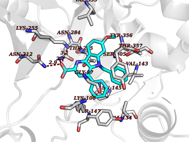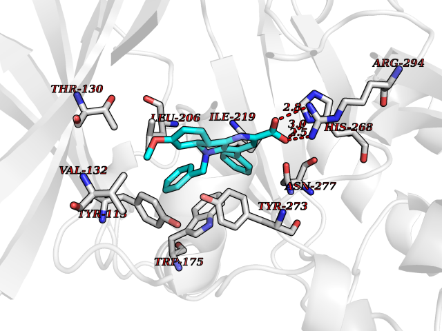 | Target general information Gen name TPH1 Organism Homo sapiens (Human) Uniprot ID TTD ID Synonyms Tryptophan 5-monooxygenase 1; TRPH; TPRH Protein family Biopterin-dependent aromatic amino acid hydroxylase family Biochemical class Paired donor oxygen oxidoreductase Function Responsible for addition of the -HO group (hydroxylation) to the 5 position to form the amino acid 5-hydroxytryptophan (5-HTP), which is the initial and rate-limiting step in the synthesis of the neurotransmitter serotonin. Related diseases Tyrosinemia 2 (TYRSN2) [MIM:276600]: An inborn error of metabolism characterized by elevations of tyrosine in the blood and urine, and oculocutaneous manifestations. Typical features include palmoplantar keratosis, painful corneal ulcers, and intellectual disability. {ECO:0000269|PubMed:1357662}. The disease is caused by variants affecting the gene represented in this entry. Drugs (DrugBank ID) DB05199; DB00360; DB12095; DB00150 Interacts with Q14457; Q96IK1-2; Q9UKB3; Q9H8Y8; O43586; O95789-4 EC number EC 1.14.16.4 Uniprot keywords 3D-structure; Alternative splicing; Iron; Metal-binding; Monooxygenase; Oxidoreductase; Phosphoprotein; Proteomics identification; Reference proteome; Serotonin biosynthesis; Ubl conjugation Protein physicochemical properties Chain ID A Molecular weight (Da) 31138.2 Length 271 Aromaticity 0.13 Instability index 43.43 Isoelectric point 6.73 Charge (pH=7) -0.86 3D Binding mode Sequence TVPWFPKKISDLDHCNVYRKRRKYFADLAMNYKHGDPIPKVEFTEEEIKTWGTVFQELNKLYPTHACREYLKNLPLLSKYCGYREDNIPQLEDVSNFLKERTGFSIRPVAGYLSPRDFLSGLAFRVFHCTQYVRHSSDPFYTPEPDTCHELLGHVPLLAEPSFAQFSQEIGLASLGASEEAVQKLATCYFFTVEFGLCKQDGQLRVFGAGLLSSISELKHALSGHAKVKPFDPKITCKQECLITTFQDVYFVSESFEDAKEKMREFTKTIK Hydrogen bonds contact Hydrophobic contact | ||||