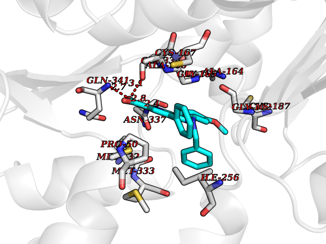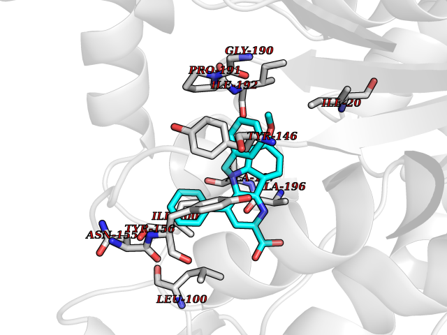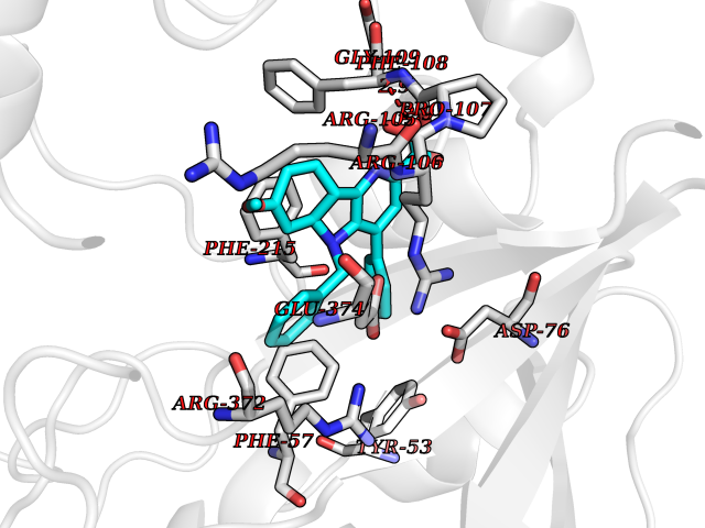 | Target general information Gen name CYP19A1 Organism Homo sapiens (Human) Uniprot ID TTD ID Synonyms P-450AROM; Estrogen synthetase; Estrogen synthase; Cytochrome P450 19A1; Cytochrome P-450AROM; CYPXIX; CYP19; CYAR; ARO1 Protein family Cytochrome P450 family Biochemical class Paired donor oxygen oxidoreductase Function Catalyzes the formation of aromatic C18 estrogens from C19 androgens. Related diseases Aromatase excess syndrome (AEXS) [MIM:139300]: An autosomal dominant disorder characterized by increased extraglandular aromatization of steroids that presents with heterosexual precocity in males and isosexual precocity in females. The disease is caused by variants affecting the gene represented in this entry.; DISEASE: Aromatase deficiency (AROD) [MIM:613546]: A rare disease in which fetal androgens are not converted into estrogens due to placental aromatase deficiency. Thus, pregnant women exhibit a hirsutism, which spontaneously resolves after post-partum. At birth, female babies present with pseudohermaphroditism due to virilization of extern genital organs. In adult females, manifestations include delay of puberty, breast hypoplasia and primary amenorrhoea with multicystic ovaries. {ECO:0000269|PubMed:24705274, ECO:0000269|PubMed:8265607, ECO:0000269|PubMed:8530621, ECO:0000269|PubMed:9211678}. The disease is caused by variants affecting the gene represented in this entry. Drugs (DrugBank ID) DB02342; DB00357; DB01217; DB00443; DB04794; DB06719; DB13009; DB00389; DB00269; DB00856; DB04839; DB01406; DB00255; DB00858; DB01127; DB14598; DB14600; DB00974; DB06423; DB00783; DB00655; DB00926; DB00990; DB04539; DB01026; DB01006; DB05667; DB00358; DB01065; DB00333; DB06710; DB01110; DB16236; DB05749; DB08804; DB03467; DB00184; DB09389; DB01229; DB05804; DB00481; DB05875; DB02901; DB06147; DB00675; DB00894; DB00624; DB13943; DB13944; DB13946; DB01007; DB00197 Interacts with NA EC number EC 1.14.14.14 Uniprot keywords 3D-structure; Alternative splicing; Direct protein sequencing; Disease variant; Endoplasmic reticulum; Heme; Iron; Lipid metabolism; Membrane; Metal-binding; Microsome; Monooxygenase; Oxidoreductase; Proteomics identification; Pseudohermaphroditism; Reference proteome; Transmembrane; Transmembrane helix Protein physicochemical properties Chain ID A Molecular weight (Da) 52141.6 Length 452 Aromaticity 0.1 Instability index 36.02 Isoelectric point 8.45 Charge (pH=7) 4.41 3D Binding mode Sequence SSIPGPGYCMGIGPLISHGRFLWMGIGSACNYYNRVYGEFMRVWISGEETLIISKSSSMFHIMKHNHYSSRFGSKLGLQCIGMHEKGIIFNNNPELWKTTRPFFMKALSGPGLVRMVTVCAESLKTHLDRLEEVTNESGYVDVLTLLRRVMLDTSNTLFLRIPLDESAIVVKIQGYFDAWQALLIKPDIFFKISWLYKKYEKSVKDLKDAIEVLIAEKRRRISTEEKLEECMDFATELILAEKRGDLTRENVNQCILEMLIAAPDTMSVSLFFMLFLIAKHPNVEEAIIKEIQTVIGERDIKIDDIQKLKVMENFIYESMRYQPVVDLVMRKALEDDVIDGYPVKKGTNIILNIGRMHRLEFFPKPNEFTLENFAKNVPYRYFQPFGFGPRGCAGKYIAMVMMKAILVTLLRRFHVKTLQGQCVESIQKIHDLSLHPDETKNMLEMIFTPRN Hydrogen bonds contact Hydrophobic contact | ||||