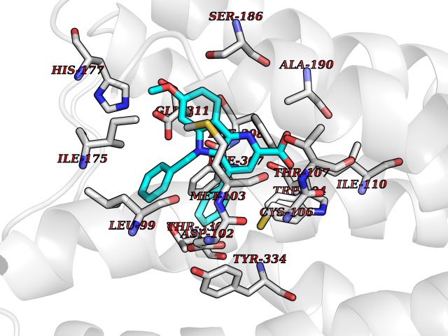 | Target general information Gen name CYP2D6 Organism Homo sapiens (Human) Uniprot ID TTD ID Synonyms P450-DB1; Cytochrome P450-DB1; Cytochrome P450 2D6; CYPIID6; CYP2DL1 Protein family Cytochrome P450 family Biochemical class Paired donor oxygen oxidoreductase Function It is involved in the metabolism of drugs such as antiarrhythmics, adrenoceptor antagonists, and tricyclic antidepressants. Responsible for the metabolism of many drugs and environmental chemicals that it oxidizes. Related diseases A chromosomal aberration involving BCL2 has been found in chronic lymphatic leukemia. Translocation t(14;18)(q32;q21) with immunoglobulin gene regions. BCL2 mutations found in non-Hodgkin lymphomas carrying the chromosomal translocation could be attributed to the Ig somatic hypermutation mechanism resulting in nucleotide transitions. {ECO:0000269|PubMed:2875799, ECO:0000269|PubMed:3285301}. Drugs (DrugBank ID) DB01562; DB01472; DB14010; DB12001; DB05812; DB01193; DB00316; DB15568; DB00918; DB06203; DB00866; DB01424; DB01118; DB00321; DB00381; DB00613; DB00543; DB00182; DB00701; DB11785; DB01435; DB01429; DB01274; DB01238; DB14185; DB09204; DB11638; DB06216; DB00637; DB11586; DB00335; DB00289; DB01076; DB00972; DB04957; DB09013; DB16703; DB01086; DB06770; DB01244; DB15982; DB00195; DB01295; DB12236; DB01128; DB04889; DB00810; DB13975; DB08807; DB00188; DB09128; DB12151; DB12752; DB06726; DB00297; DB08808; DB00921; DB01156; DB00490; DB09173; DB00201; DB09061; DB14737; DB06016; DB00521; DB01136; DB00482; DB04846; DB00439; DB00185; DB00608; DB01114; DB00477; DB00356; DB01410; DB01166; DB00501; DB01012; DB00568; DB00604; DB00215; DB12499; DB00283; DB04920; DB14025; DB00349; DB00845; DB01242; DB00575; DB13508; DB00257; DB00363; DB09065; DB05239; DB00907; DB00318; DB11672; DB14635; DB00924; DB00091; DB11963; DB06292; DB04884; DB00496; DB01264; DB09183; DB04840; DB00705; DB06512; DB01151; DB06700; DB16650; DB12161; DB13679; DB09555; DB01191; DB00633; DB01576; DB00514; DB00647; DB11994; DB01551; DB00343; DB01093; DB01075; DB00757; DB01184; DB00843; DB09167; DB00590; DB01142; DB00997; DB00470; DB04855; DB00476; DB00625; DB11979; DB00216; DB15444; DB09039; DB13874; DB01228; DB06735; DB11718; DB00494; DB13757; DB00751; DB00530; DB13443; DB01175; DB06678; DB00187; DB00330; DB01466; DB01628; DB01590; DB12500; DB01023; DB00574; DB06702; DB12265; DB01195; DB04841; DB00472; DB00623; DB01095; DB00176; DB00983; DB02703; DB15149; DB00674; DB05087; DB00317; DB08909; DB00986; DB01218; DB00502; DB00956; DB01611; DB00557; DB09053; DB01177; DB04946; DB00619; DB00458; DB08952; DB00224; DB06370; DB13293; DB04818; DB16200; DB11633; DB06636; DB00951; DB11757; DB00602; DB09570; DB01026; DB00598; DB12212; DB00448; DB11732; DB16217; DB09078; DB00528; DB12070; DB09351; DB01210; DB08918; DB00281; DB04948; DB01206; DB00836; DB01601; DB00455; DB04871; DB09195; DB06708; DB04829; DB09238; DB00934; DB14921; DB00737; DB14009; DB09224; DB00170; DB00454; DB00532; DB13530; DB06691; DB01071; DB00933; DB01577; DB00333; DB00763; DB01403; DB01028; DB09241; DB01214; DB01233; DB00264; DB00379; DB06148; DB01388; DB01110; DB00211; DB01454; DB06595; DB00834; DB00805; DB08893; DB00370; DB12523; DB01171; DB00745; DB14011; DB09049; DB00731; DB04861; DB01149; DB00220; DB09048; DB00238; DB00627; DB00622; DB00699; DB02701; DB00184; DB01115; DB04868; DB12005; DB00540; DB00334; DB14881; DB00338; DB00904; DB11130; DB04911; DB01173; DB11837; DB04938; DB01096; DB01580; DB01062; DB00497; DB06412; DB01192; DB01267; DB00377; DB06603; DB00715; DB06589; DB00022; DB01359; DB00738; DB01074; DB08922; DB00850; DB03783; DB00780; DB00914; DB00252; DB05316; DB01100; DB00960; DB00592; DB01621; DB04951; DB17472; DB11642; DB08901; DB01297; DB15822; DB01087; DB01035; DB00433; DB00396; DB01131; DB00420; DB01069; DB09288; DB01182; DB00571; DB04216; DB01224; DB00908; DB00468; DB01129; DB00863; DB00243; DB00234; DB14761; DB00409; DB06506; DB02709; DB11855; DB13174; DB11753; DB08864; DB14840; DB00734; DB12693; DB00503; DB00953; DB09291; DB15119; DB00412; DB05271; DB12332; DB11614; DB06654; DB01232; DB01037; DB06144; DB01104; DB00203; DB00641; DB01591; DB00398; DB12713; DB00489; DB06727; DB01323; DB09118; DB06820; DB06729; DB06608; DB11770; DB00675; DB00706; DB06204; DB06083; DB01079; DB12095; DB06287; DB00857; DB00342; DB13775; DB04905; DB04844; DB11712; DB00277; DB00679; DB01623; DB00208; DB00373; DB01409; DB00932; DB06137; DB01036; DB05109; DB00193; DB00752; DB00656; DB12245; DB00726; DB00792; DB00209; DB15328; DB09076; DB13609; DB15091; DB11915; DB00862; DB08881; DB00285; DB00661; DB06217; DB06684; DB09185; DB00570; DB00361; DB11739; DB09068; DB01392; DB00549; DB15688; DB00425; DB01624 Interacts with NA EC number EC 1.14.14.- Uniprot keywords 3D-structure; Alternative splicing; Cholesterol metabolism; Endoplasmic reticulum; Fatty acid metabolism; Heme; Iron; Lipid metabolism; Membrane; Metal-binding; Microsome; Monooxygenase; Oxidoreductase; Proteomics identification; Reference proteome; Steroid metabolism; Sterol metabolism Protein physicochemical properties Chain ID A Molecular weight (Da) 51898.1 Length 464 Aromaticity 0.09 Instability index 43.83 Isoelectric point 6.76 Charge (pH=7) -0.99 3D Binding mode Sequence GKLPPGPLPLPGLGNLLFQNTPYCFDQLRRRFGDVFSLQLAWTPVVVLNGLAAVREALVTHGEDTADRPPVPITQILGFGPRSQGVFLARYGPAWREQRRFSVSTLRNLGLGKKSLEQWVTEEAACLCAAFANHSGRPFRPNGLLDKAVSNVIASLTCGRRFEYDDPRFLRLLDLAQEGLKEESGFLREVLNAVPVLLHIPALAGKVLRFQKAFLTQLDELLTEHRMTWDPAQPPRDLTEAFLAEMEKAKGNPESSFNDENLRIVVADLFSAGMVTTSTTLAWGLLLMILHPDVQRRVQQEIDDVIGQVRRPEMGDQAHMPYTTAVIHEVQRFGDIVPLGVTHMTSRDIEVQGFRIPKGTTLITNLSSVLKDEAVWEKPFRFHPEHFLDAQGHFVKPEAFLPFSAGRRACLGEPLARMELFLFFTSLLQHFSFSVPTGQPRPSHHGVFAFLVSPSPYELCAVPR Hydrogen bonds contact Hydrophobic contact | ||||