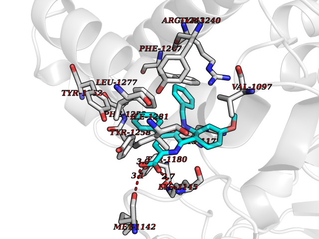 | Target general information Gen name EIF2AK3 Organism Homo sapiens (Human) Uniprot ID TTD ID Synonyms PEK Protein family Protein kinase superfamily, Ser/Thr protein kinase family, GCN2 subfamily Biochemical class Kinase Function Converts phosphorylated eIF-2-alpha/EIF2S1 either in a global protein synthesis inhibitor, leading to a reduced overall utilization of amino acids, or to a translation initiation activator of specific mRNAs, such as the transcriptional activator ATF4, and hence allowing ATF4-mediated reprogramming of amino acid biosynthetic gene expression to alleviate nutrient depletion. Serves as a critical effector of unfolded protein response (UPR)-induced G1 growth arrest due to the loss of cyclin-D1 (CCND1). Involved in control of mitochondrial morphology and function. Metabolic-stress sensing protein kinase that phosphorylates the alpha subunit of eukaryotic translation initiation factor 2 (eIF-2-alpha/EIF2S1) on 'Ser-52' during the unfolded protein response (UPR) and in response to low amino acid availability. Related diseases Wolcott-Rallison syndrome (WRS) [MIM:226980]: A rare autosomal recessive disorder, characterized by permanent neonatal or early infancy insulin-dependent diabetes and, at a later age, epiphyseal dysplasia, osteoporosis, growth retardation and other multisystem manifestations, such as hepatic and renal dysfunctions, intellectual disability and cardiovascular abnormalities. {ECO:0000269|PubMed:10932183, ECO:0000269|PubMed:12086964, ECO:0000269|PubMed:12960215, ECO:0000269|PubMed:16813601, ECO:0000269|PubMed:24168455, ECO:0000269|PubMed:24194294, ECO:0000269|PubMed:27145240, ECO:0000269|PubMed:28220546, ECO:0000269|PubMed:30906465, ECO:0000269|PubMed:30922274, ECO:0000269|PubMed:32216767, ECO:0000269|PubMed:34123975}. The disease is caused by variants affecting the gene represented in this entry. Drugs (DrugBank ID) NA Interacts with Q9NZJ5; P11021 EC number EC 2.7.11.1 Uniprot keywords 3D-structure; ADP-ribosylation; ATP-binding; Diabetes mellitus; Disease variant; Endoplasmic reticulum; Glycoprotein; Kinase; Membrane; Nucleotide-binding; Phosphoprotein; Proteomics identification; Reference proteome; Serine/threonine-protein kinase; Signal; Stress response; Transferase; Translation regulation; Transmembrane; Transmembrane helix; Tyrosine-protein kinase; Unfolded protein response Protein physicochemical properties Chain ID A Molecular weight (Da) 29033.5 Length 248 Aromaticity 0.1 Instability index 43.71 Isoelectric point 7.75 Charge (pH=7) 1.27 3D Binding mode Sequence GRYLTDFEPIQCLGRGGVVFEAKNKVDDCNYAIKRIRLPNRELAREKVMREVKALAKLEHPGIVRYFNAWLEKNKVYLYIQMQLCRKENLKDWMNGRCTIEERERSVCLHIFLQIAEAVEFLHSKGLMHRDLKPSNIFFTMDDVVKVGDFGLVGTKLYMSPEQIHGNSYSHKVDIFSLGLILFELLYPFSTQMERVRTLTDVRNLKFPPLFTQKYPCEYVMVQDMLSPSPMERPEAINIIENAVFEDL Hydrogen bonds contact Hydrophobic contact | ||||