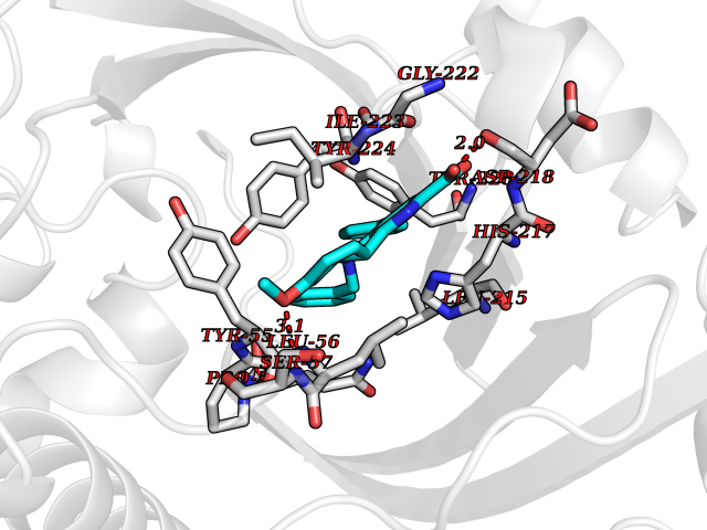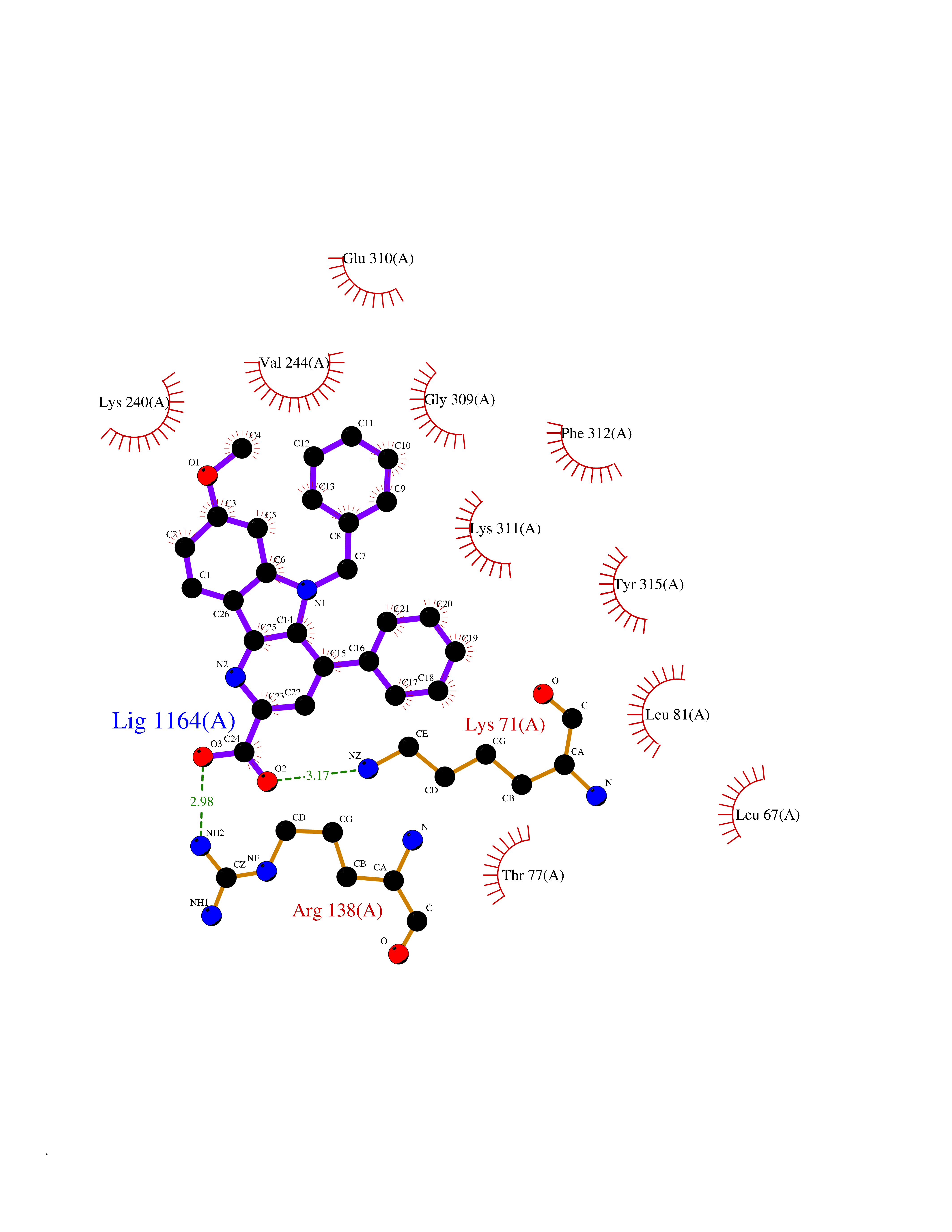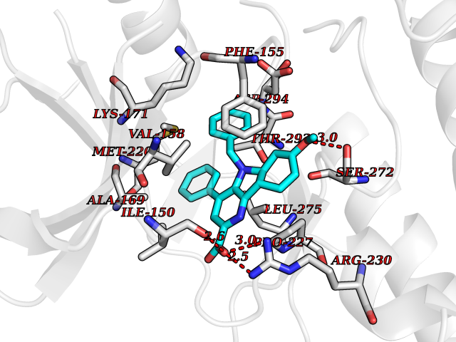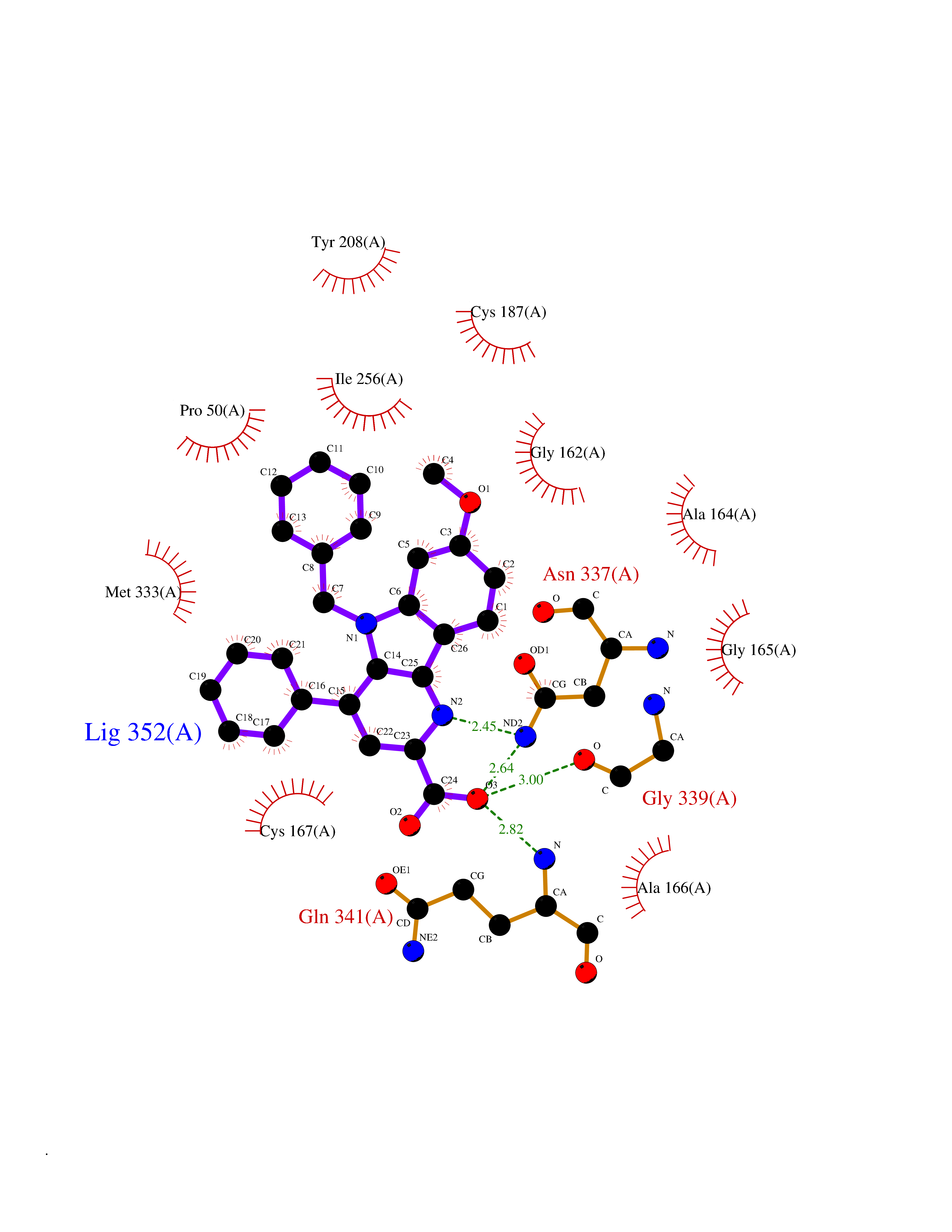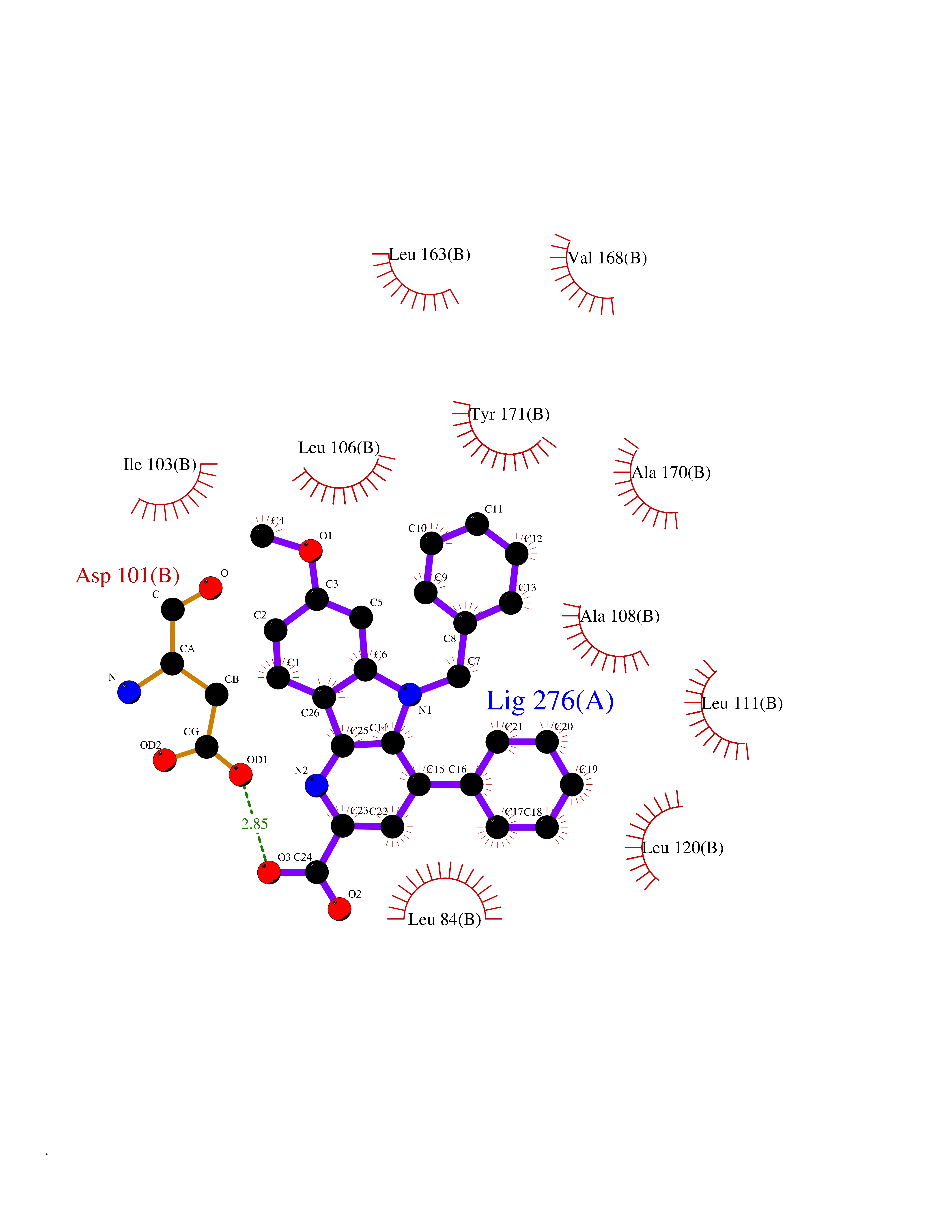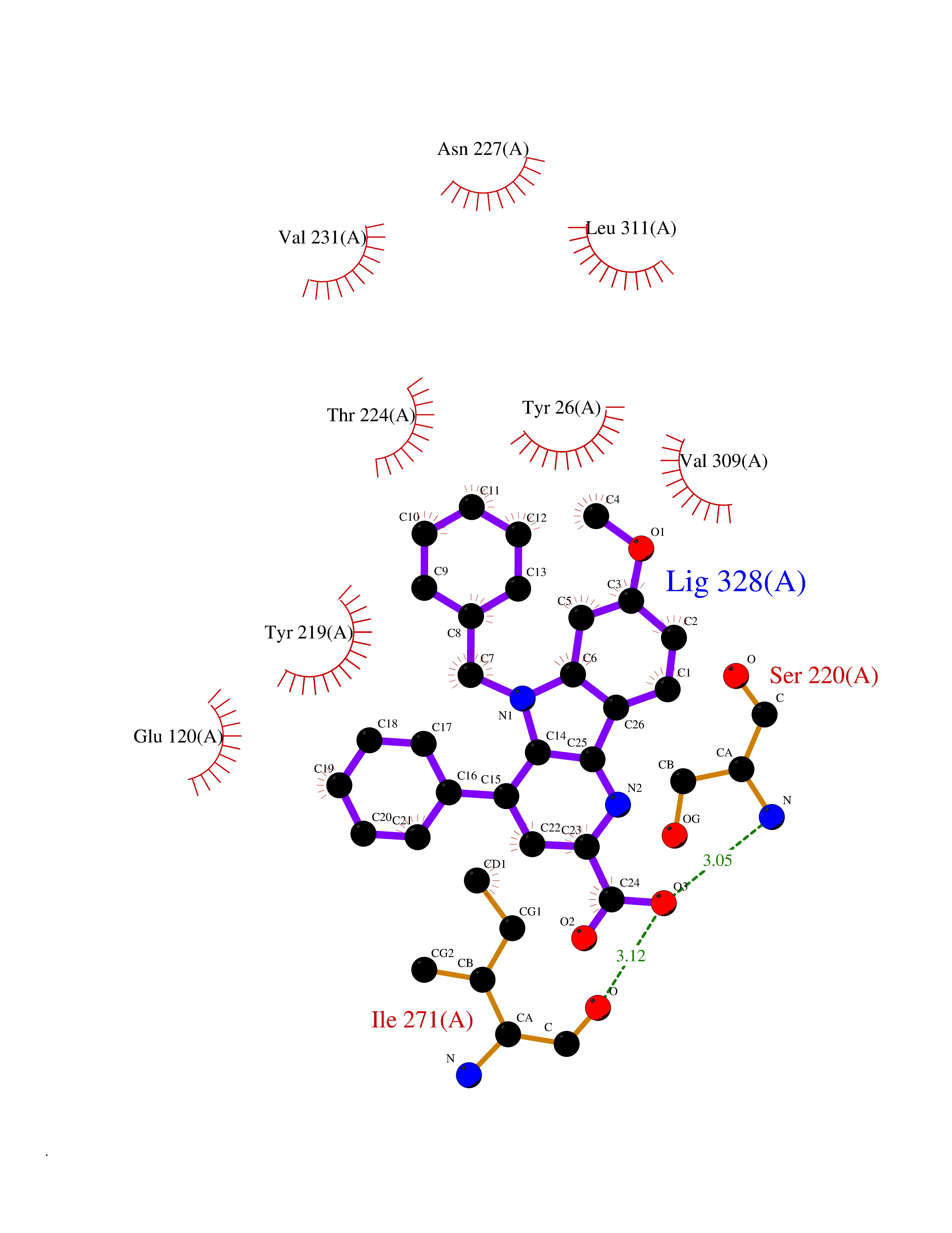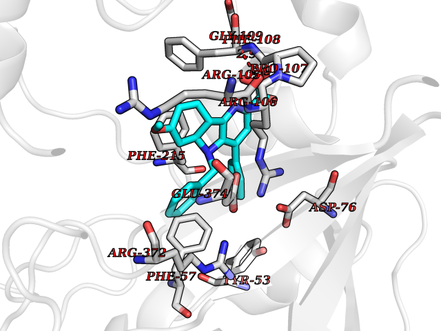 | Target general information Gen name ADORA2A Organism Homo sapiens (Human) Uniprot ID TTD ID Synonyms Adenosine receptor A2a; ADORA2; A2a Adenosine receptor; A(2A) adenosine receptor Protein family G-protein coupled receptor 1 family Biochemical class GPCR rhodopsin Function The activity of this receptor is mediated by G proteins which activate adenylyl cyclase. Receptor for adenosine. Related diseases Intellectual developmental disorder, autosomal recessive 59 (MRT59) [MIM:617323]: A disorder characterized by significantly below average general intellectual functioning associated with impairments in adaptive behavior and manifested during the developmental period. {ECO:0000269|PubMed:26416544}. The disease is caused by variants affecting the gene represented in this entry. Drugs (DrugBank ID) DB08770; DB14132; DB00640; DB05009; DB05191; DB04853; DB00201; DB04932; DB09273; DB00651; DB00824; DB11757; DB17080; DB00555; DB00358; DB00683; DB01303; DB00806; DB06213; DB01412; DB00277 Interacts with P30542; P29274; P29275; O15155; P21554; Q99418; O15354; Q7Z6G3; O43759-2; Q13107; Q5T9L3-1; P31424-1 EC number NA Uniprot keywords 3D-structure; Cell membrane; Disulfide bond; G-protein coupled receptor; Glycoprotein; Membrane; Proteomics identification; Receptor; Reference proteome; Transducer; Transmembrane; Transmembrane helix; Ubl conjugation Protein physicochemical properties Chain ID A Molecular weight (Da) 32419.4 Length 296 Aromaticity 0.12 Instability index 39.04 Isoelectric point 8.77 Charge (pH=7) 7.19 3D Binding mode Sequence APPIMGSSVYITVELAIAVLAILGNVLVCWAVWLNSNLQNVTNYFVVSLAAADILVGVLAIPFAITISTGFCAACHGCLFIACFVLVLAQSSIFSLLAIAIDRYIAIAIPLRYNGLVTGTRAAGIIAICWVLSFAIGLTPMLGWNNCGQPKEGKAHSQGCGEGQVACLFEDVVPMNYMVYFNFFACVLVPLLLMLGVYLRIFAAARRQLERARSTLQKEVHAAKSAAIIAGLFALCWLPLHIINCFTFFCPDCSHAPLWLMYLAIVLAHTNSVVNPFIYAYRIREFRQTFRKIIRS Hydrogen bonds contact Hydrophobic contact | ||||