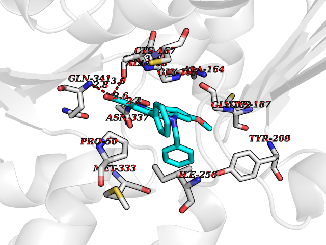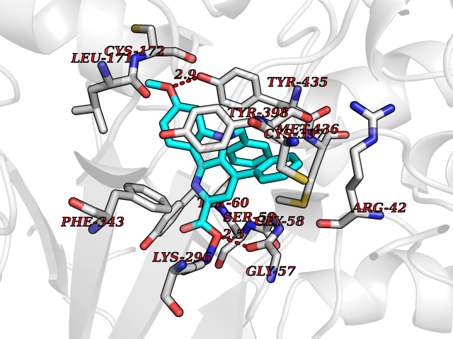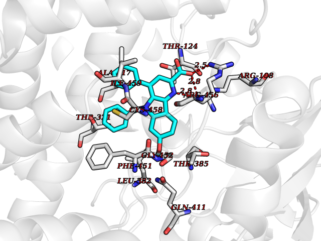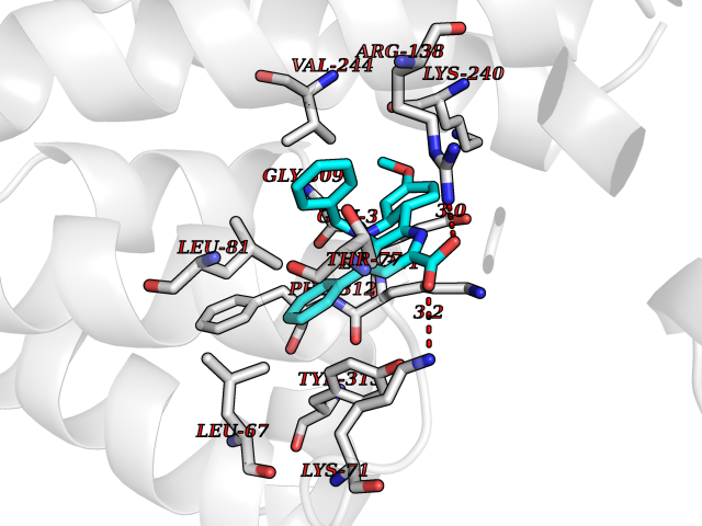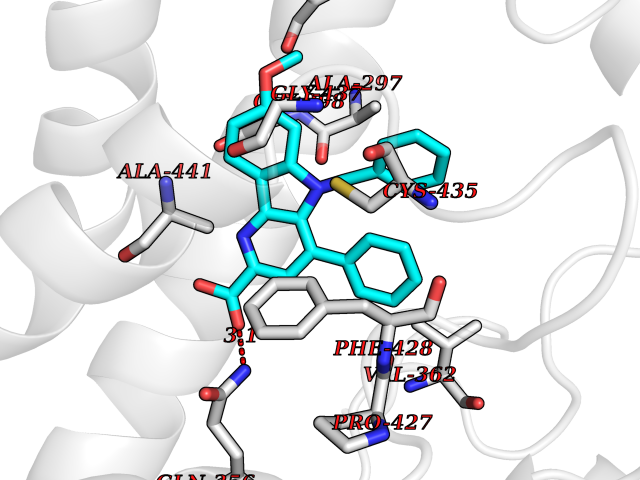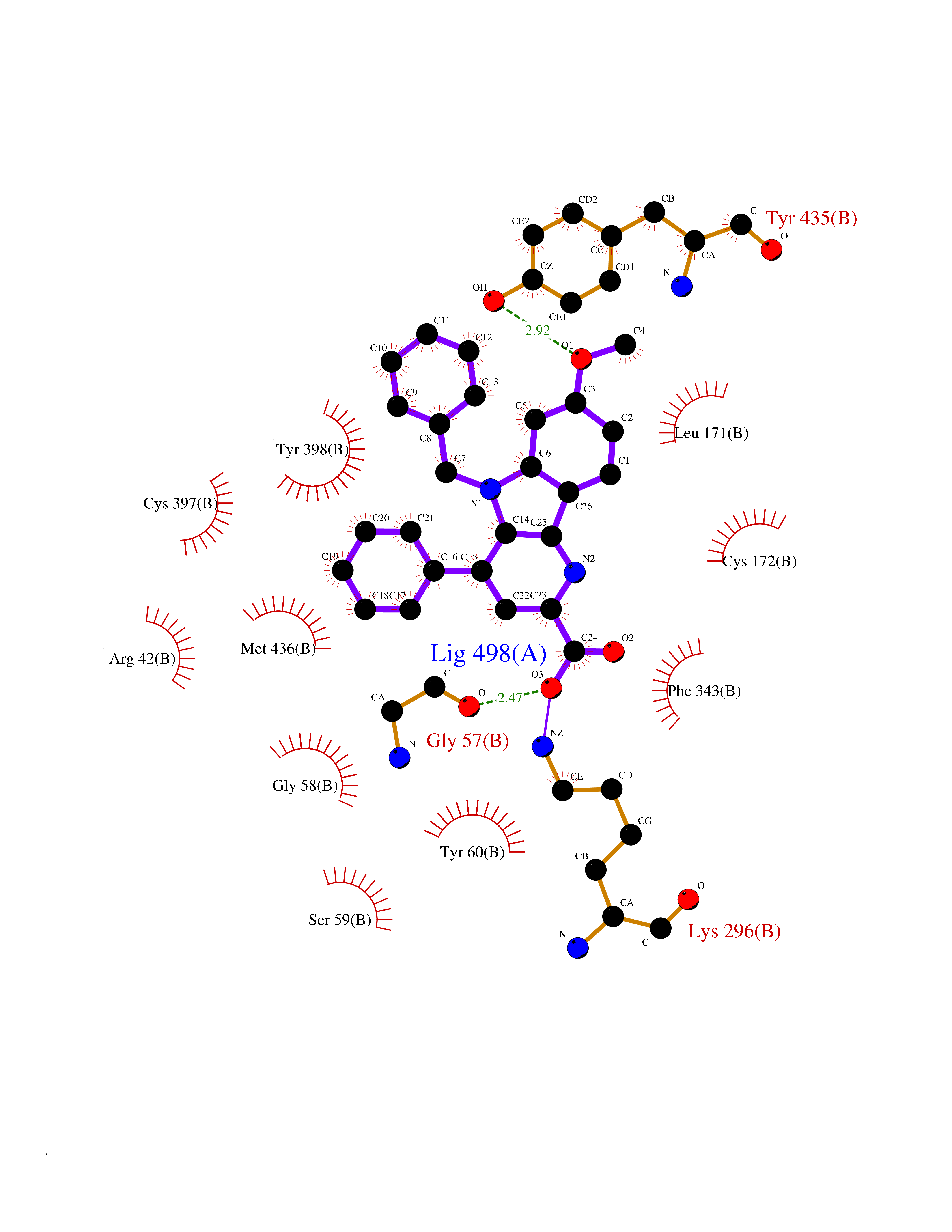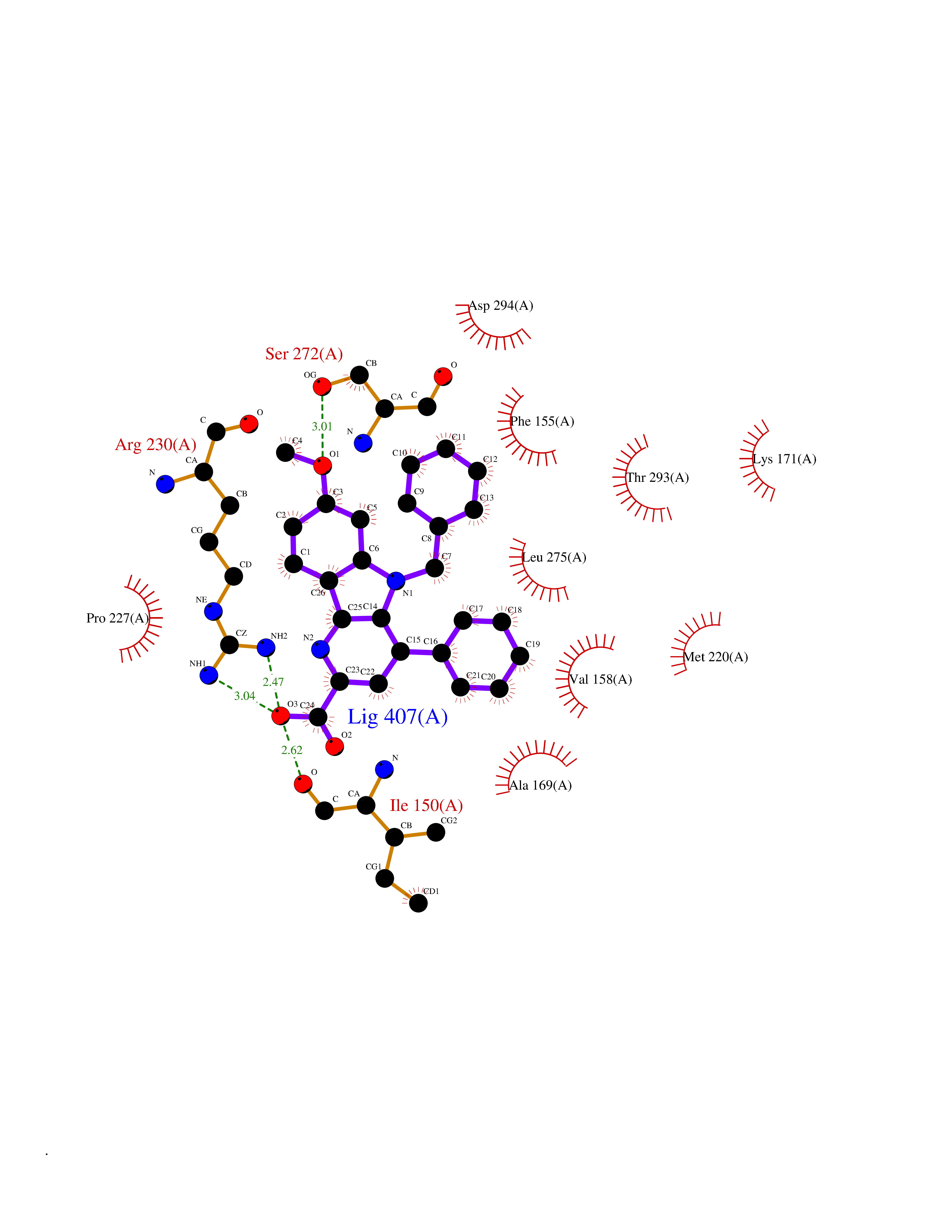 | Target general information Gen name CYP2C8 Organism Homo sapiens (Human) Uniprot ID TTD ID NA Synonyms NA Protein family Cytochrome P450 family Biochemical class Oxidoreductase Function Arachidonic acid epoxygenase activity.Aromatase activity.Caffeine oxidase activity.Estrogen 16-alpha-hydroxylase activity.Heme binding.Iron ion binding.Monooxygenase activity.Oxygen binding. Related diseases A chromosomal aberration involving BCL2 has been found in chronic lymphatic leukemia. Translocation t(14;18)(q32;q21) with immunoglobulin gene regions. BCL2 mutations found in non-Hodgkin lymphomas carrying the chromosomal translocation could be attributed to the Ig somatic hypermutation mechanism resulting in nucleotide transitions. {ECO:0000269|PubMed:2875799, ECO:0000269|PubMed:3285301}. Drugs (DrugBank ID) DB08607; DB08496; DB14055; DB12001; DB05812; DB15568; DB00918; DB12015; DB01424; DB01118; DB00321; DB00381; DB00613; DB01060; DB17449; DB01217; DB01435; DB11901; DB06605; DB00714; DB01072; DB01076; DB11995; DB00972; DB08822; DB12781; DB13997; DB05015; DB16703; DB06770; DB05229; DB00443; DB12236; DB00307; DB01393; DB13746; DB16536; DB06616; DB12267; DB12151; DB01194; DB01222; DB00921; DB06772; DB08875; DB00201; DB13919; DB00796; DB09061; DB08502; DB00564; DB00482; DB06119; DB00439; DB00608; DB00169; DB09201; DB00501; DB00604; DB12499; DB00349; DB00845; DB00758; DB00257; DB00363; DB00907; DB01394; DB05219; DB00531; DB08912; DB11682; DB00250; DB09183; DB01609; DB01234; DB14649; DB09213; DB00829; DB00586; DB00255; DB00343; DB01184; DB00625; DB11979; DB15444; DB06210; DB13874; DB11718; DB08899; DB00530; DB00783; DB13952; DB13953; DB13954; DB13955; DB13956; DB00402; DB00977; DB14766; DB00973; DB12466; DB04854; DB01023; DB01039; DB16165; DB00544; DB13867; DB08906; DB00588; DB01095; DB11679; DB01241; DB01645; DB11978; DB01218; DB00741; DB14538; DB14539; DB14540; DB14541; DB14542; DB14543; DB14545; DB14544; DB01611; DB12471; DB01050; DB09054; DB01181; DB00619; DB16200; DB01029; DB11633; DB06636; DB00951; DB11757; DB14568; DB09570; DB01221; DB06738; DB01026; DB01009; DB00465; DB00448; DB01259; DB09078; DB12070; DB05667; DB08918; DB00451; DB04725; DB00281; DB17083; DB01583; DB09198; DB06448; DB00836; DB00455; DB12130; DB00678; DB00227; DB09280; DB15935; DB06077; DB08932; DB14921; DB14009; DB00603; DB00784; DB00814; DB00170; DB00532; DB01357; DB00333; DB09241; DB00959; DB00916; DB01110; DB06595; DB00834; DB16236; DB11763; DB00764; DB14512; DB00471; DB00295; DB06510; DB00688; DB01024; DB00486; DB00788; DB09199; DB00622; DB00184; DB01115; DB04868; DB06712; DB12005; DB06670; DB09080; DB16267; DB12513; DB09296; DB00338; DB11632; DB01062; DB12612; DB01229; DB03796; DB05467; DB00617; DB06589; DB08922; DB00850; DB00780; DB01174; DB00946; DB00252; DB01132; DB00554; DB17472; DB08860; DB08901; DB15822; DB14631; DB00635; DB01032; DB00818; DB00205; DB04216; DB00908; DB00468; DB01129; DB00481; DB08896; DB11853; DB14761; DB00912; DB16826; DB00615; DB01045; DB11753; DB01201; DB01220; DB08864; DB08931; DB14840; DB14924; DB00503; DB09200; DB00533; DB00412; DB04847; DB12332; DB00938; DB12543; DB01232; DB00418; DB01037; DB11362; DB15685; DB11689; DB06739; DB00641; DB01261; DB00398; DB15569; DB00421; DB09118; DB00359; DB06729; DB01138; DB00675; DB00799; DB12020; DB09256; DB01079; DB12095; DB15133; DB00857; DB00342; DB08880; DB00624; DB13943; DB13944; DB13946; DB11712; DB00208; DB06137; DB01124; DB01685; DB00214; DB08911; DB00374; DB00755; DB00897; DB12245; DB12808; DB00347; DB00440; DB00197; DB13179; DB11652; DB15328; DB12255; DB15114; DB00862; DB11613; DB08881; DB00661; DB08828; DB09068; DB12026; DB00682; DB00549; DB01198 Interacts with P13473-2; O75400-2; Q9Y371 EC number 1.14.14.1 Uniprot keywords 3D-structure; Alternative splicing; Direct protein sequencing; Endoplasmic reticulum; Heme; Iron; Lipid metabolism; Membrane; Metal-binding; Microsome; Monooxygenase; Oxidoreductase; Phosphoprotein; Proteomics identification; Reference proteome; Steroid metabolism Protein physicochemical properties Chain ID A Molecular weight (Da) 52511 Length 463 Aromaticity 0.1 Instability index 37.03 Isoelectric point 8.6 Charge (pH=7) 6.74 3D Binding mode Sequence KLPPGPTPLPIIGNMLQIDVKDICKSFTNFSKVYGPVFTVYFGMNPIVVFHGYEAVKEALIDNGEEFSGRGNSPISQRITKGLGIISSNGKRWKEIRRFSLTTLRNFGMGKRSIEDRVQEEAHCLVEELRKTKASPCDPTFILGCAPCNVICSVVFQKRFDYKDQNFLTLMKRFNENFRILNSPWIQVCNNFPLLIDCFPGTHNKVLKNVALTRSYIREKVKEHQASLDVNNPRDFIDCFLIKMEQEKDNQKSEFNIENLVGTVADLFVAGTETTSTTLRYGLLLLLKHPEVTAKVQEEIDHVIGRHRSPCMQDRSHMPYTDAVVHEIQRYSDLVPTGVPHAVTTDTKFRNYLIPKGTTIMALLTSVLHDDKEFPNPNIFDPGHFLDKNGNFKKSDYFMPFSAGKRICAGEGLARMELFLFLTTILQNFNLKSVDDLKNLNTTAVTKGIVSLPPSYQICFIPV Hydrogen bonds contact Hydrophobic contact | ||||