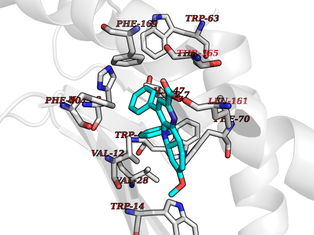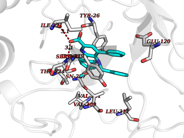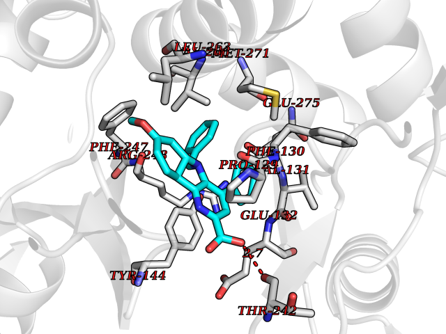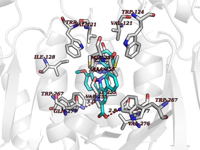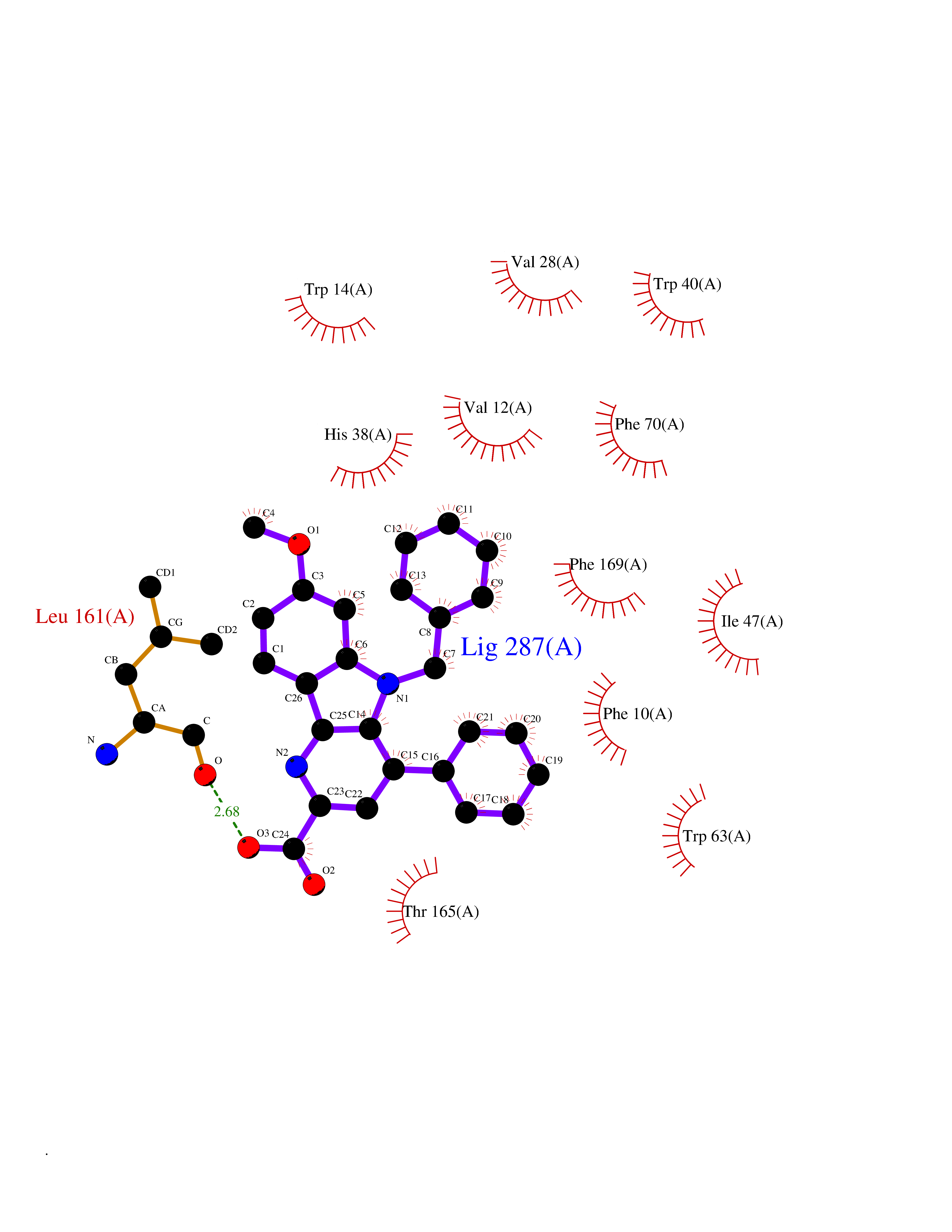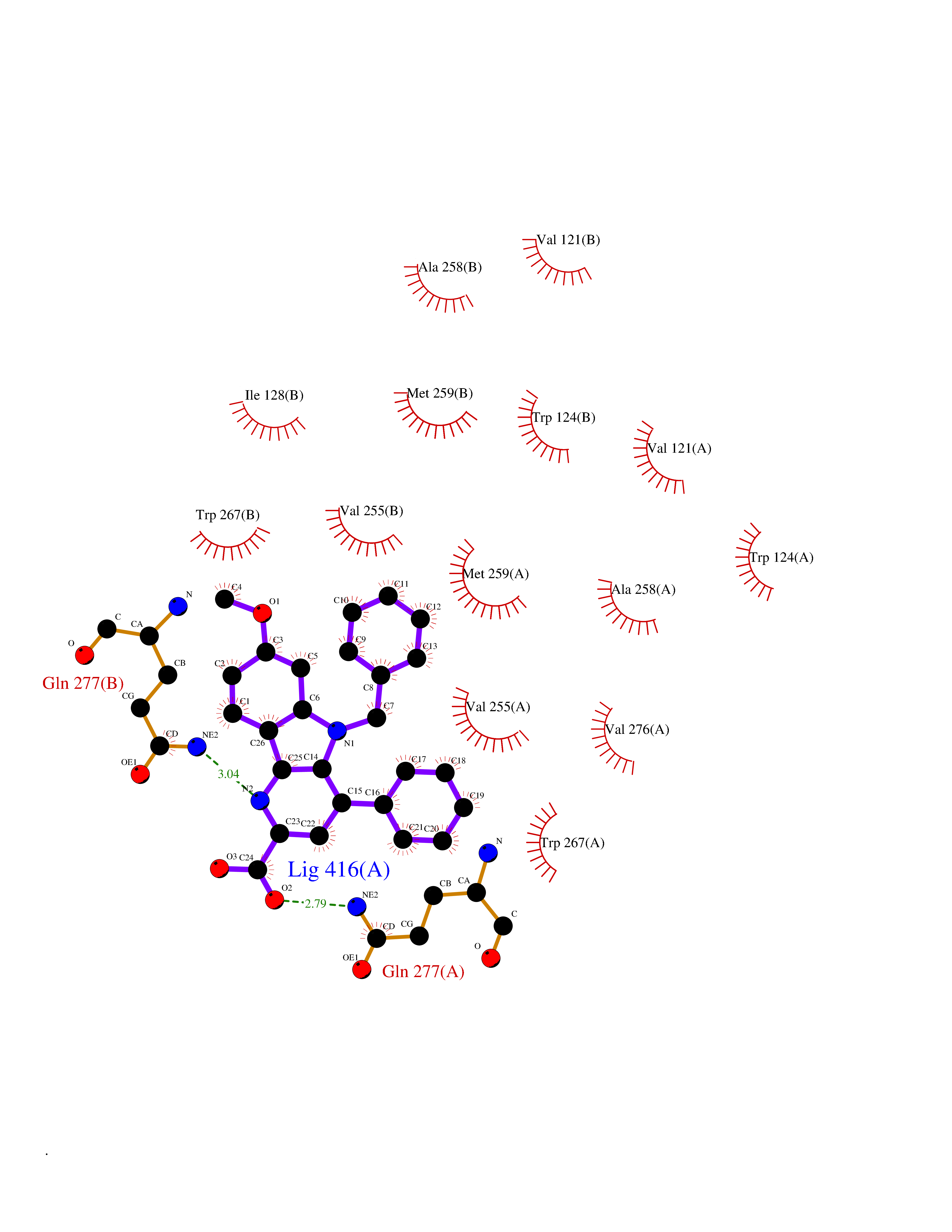 | Target general information Gen name TPH1 Organism Homo sapiens (Human) Uniprot ID TTD ID Synonyms Tryptophan 5-monooxygenase 1; TRPH; TPRH Protein family Biopterin-dependent aromatic amino acid hydroxylase family Biochemical class Paired donor oxygen oxidoreductase Function Responsible for addition of the -HO group (hydroxylation) to the 5 position to form the amino acid 5-hydroxytryptophan (5-HTP), which is the initial and rate-limiting step in the synthesis of the neurotransmitter serotonin. Related diseases Tyrosinemia 2 (TYRSN2) [MIM:276600]: An inborn error of metabolism characterized by elevations of tyrosine in the blood and urine, and oculocutaneous manifestations. Typical features include palmoplantar keratosis, painful corneal ulcers, and intellectual disability. {ECO:0000269|PubMed:1357662}. The disease is caused by variants affecting the gene represented in this entry. Drugs (DrugBank ID) DB05199; DB00360; DB12095; DB00150 Interacts with Q14457; Q96IK1-2; Q9UKB3; Q9H8Y8; O43586; O95789-4 EC number EC 1.14.16.4 Uniprot keywords 3D-structure; Alternative splicing; Iron; Metal-binding; Monooxygenase; Oxidoreductase; Phosphoprotein; Proteomics identification; Reference proteome; Serotonin biosynthesis; Ubl conjugation Protein physicochemical properties Chain ID A Molecular weight (Da) 31138.2 Length 271 Aromaticity 0.13 Instability index 43.43 Isoelectric point 6.73 Charge (pH=7) -0.86 3D Binding mode Sequence TVPWFPKKISDLDHCNVYRKRRKYFADLAMNYKHGDPIPKVEFTEEEIKTWGTVFQELNKLYPTHACREYLKNLPLLSKYCGYREDNIPQLEDVSNFLKERTGFSIRPVAGYLSPRDFLSGLAFRVFHCTQYVRHSSDPFYTPEPDTCHELLGHVPLLAEPSFAQFSQEIGLASLGASEEAVQKLATCYFFTVEFGLCKQDGQLRVFGAGLLSSISELKHALSGHAKVKPFDPKITCKQECLITTFQDVYFVSESFEDAKEKMREFTKTIK Hydrogen bonds contact Hydrophobic contact | ||||