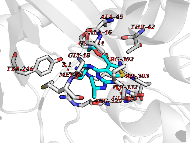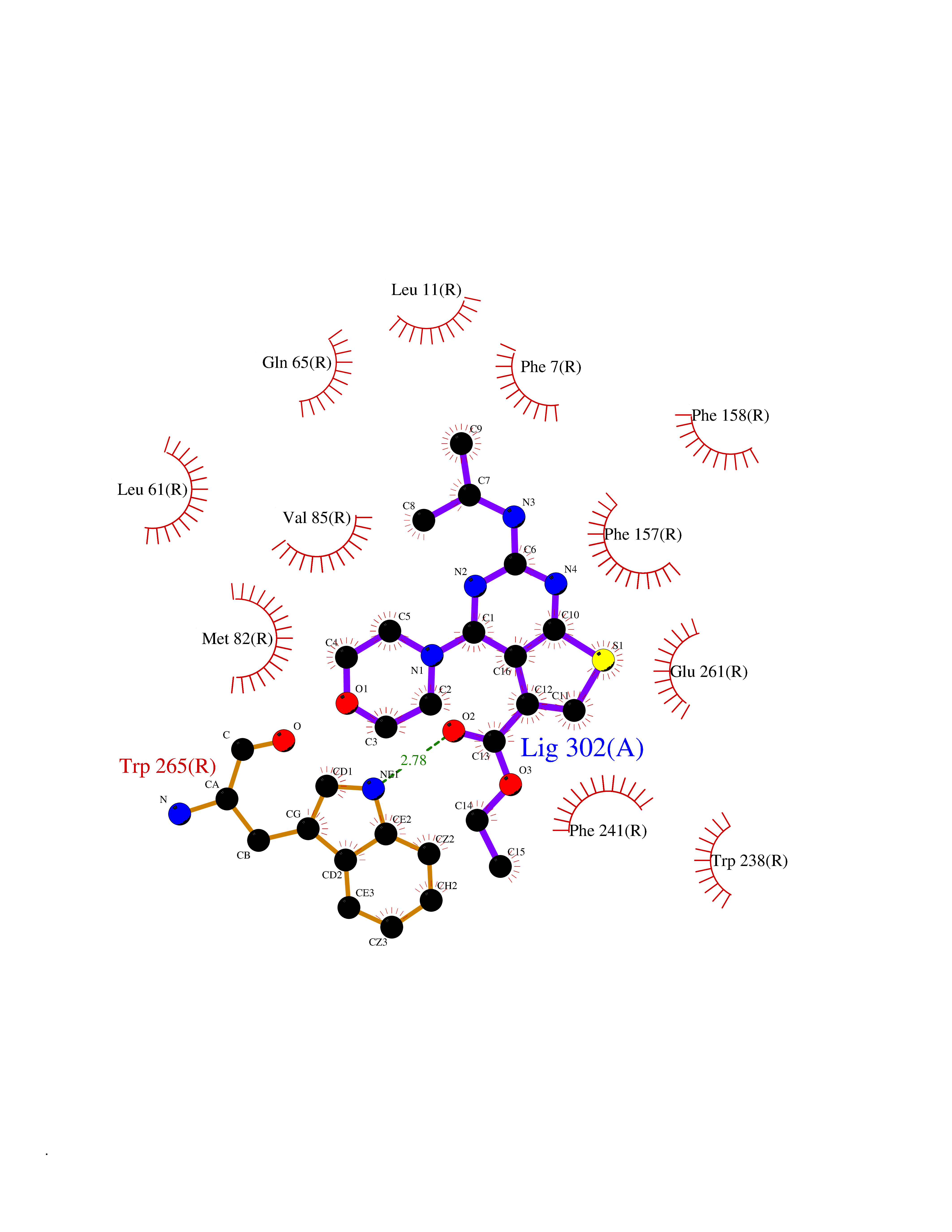 | Target general information Gen name Hae-influ nadR Organism Haemophilus influenzae (strain ATCC 51907 / DSM 11121 / KW20 / Rd) Uniprot ID TTD ID Synonyms nadR; Transcriptional regulator nadR Protein family Bacterial NMN adenylyltransferase family; Bacterial RNK family Biochemical class Nicotinamide ribonucleoside uptake permease Function This enzyme has twoactivities: nicotinamide mononucleotide (NMN) adenylyltransferase and ribosylnicotinamide (RN) kinase. The RN kinase activity catalyzes the phosphorylation of RN to form nicotinamide ribonucleotide. The NMN adenylyltransferase activity catalyzes the transfer of the AMP moiety of ATP to nicotinamide ribonucleotide to form NAD(+). Related diseases Involved in the epigenetic regulation of ESR1 expression in breast cancer in a TFAP2C, IFI16 and HDAC4/5/6-dependent manner. {ECO:0000269|PubMed:24413532}. Drugs (DrugBank ID) NA Interacts with NA EC number NA Uniprot keywords 3D-structure; Alternative initiation; ATP-binding; Cell membrane; Cytoplasm; Kinase; Membrane; Multifunctional enzyme; NAD; Nucleotide-binding; Pyridine nucleotide biosynthesis; Reference proteome; Transferase Protein physicochemical properties Chain ID A Molecular weight (Da) 39581.5 Length 344 Aromaticity 0.14 Instability index 41.39 Isoelectric point 6.94 Charge (pH=7) -0.18 3D Binding mode Sequence EKKVGVIFGKFYPVHTGHINXIYEAFSKVDELHVIVCSDTVRDLKLFYDSKXKRXPTVQDRLRWXQQIFKYQKNQIFIHHLVEDGIPSYPNGWQSWSEAVKTLFHEKHFEPSIVFSSEPQDKAPYEKYLGLEVSLVDPDRTFFNVSATKIRTTPFQYWKFIPKEARPFFAKTVAILGGESSGKSVLVNKLAAVFNTTSAWEYGREFVFEKLGGDEQAMQYSDYPQXALGHQRYIDYAVRHSHKIAFIDTDFITTQAFCIQYEGKAHPFLDSXIKEYPFDVTILLKNNTEQKQRQQFQQLLKKLLDKYKVPYIEIESPSYLDRYNQVKAVIEKVLNEEEISELQN Hydrogen bonds contact Hydrophobic contact | ||||