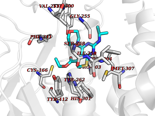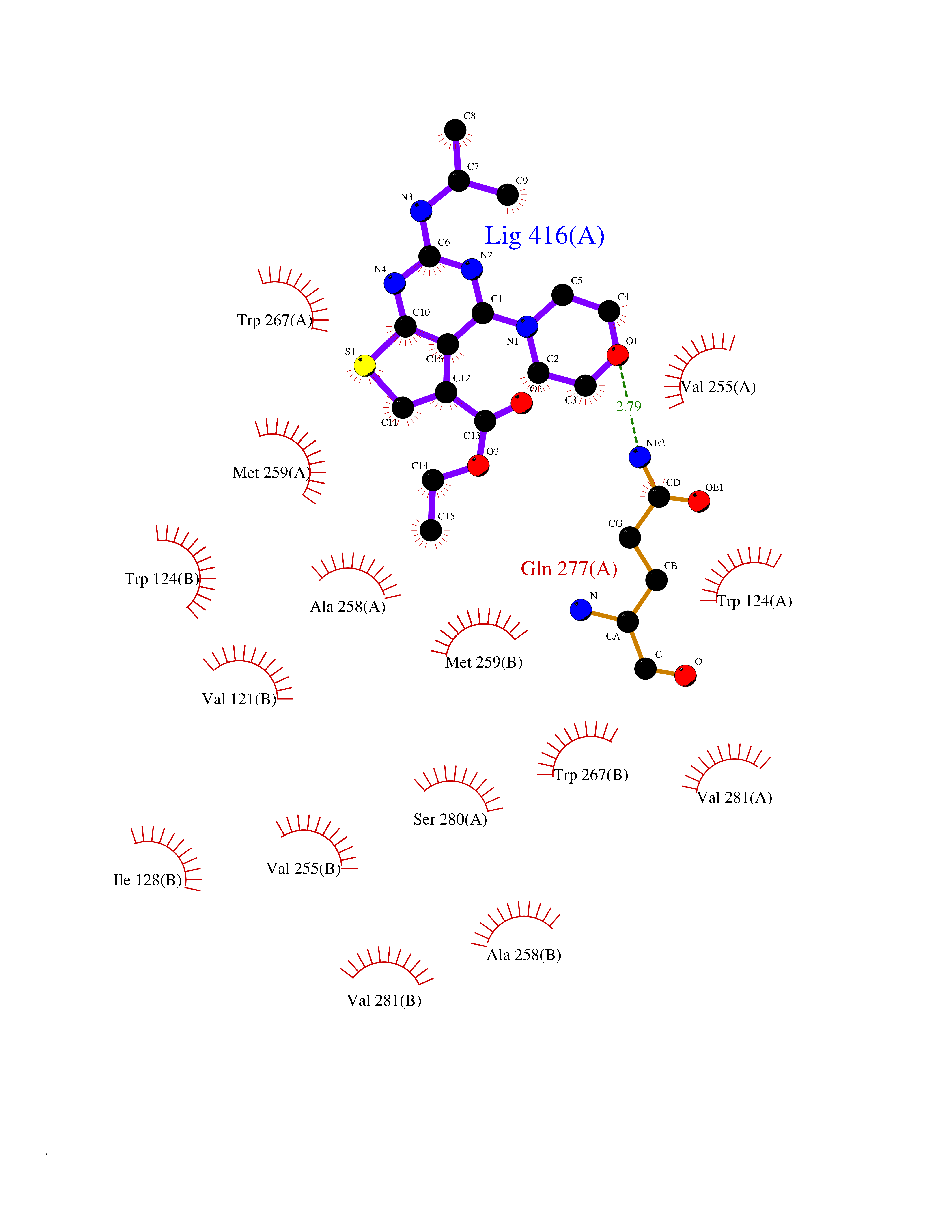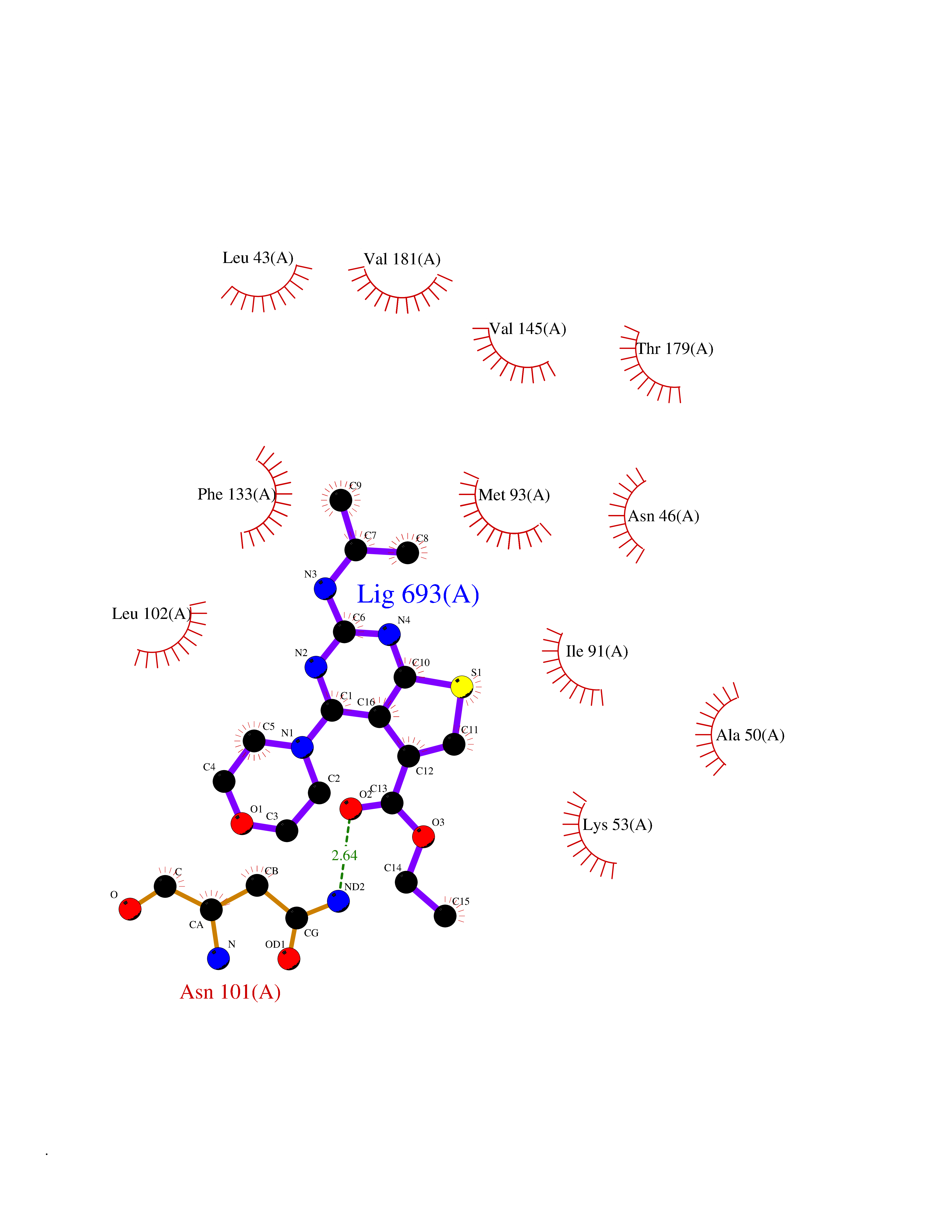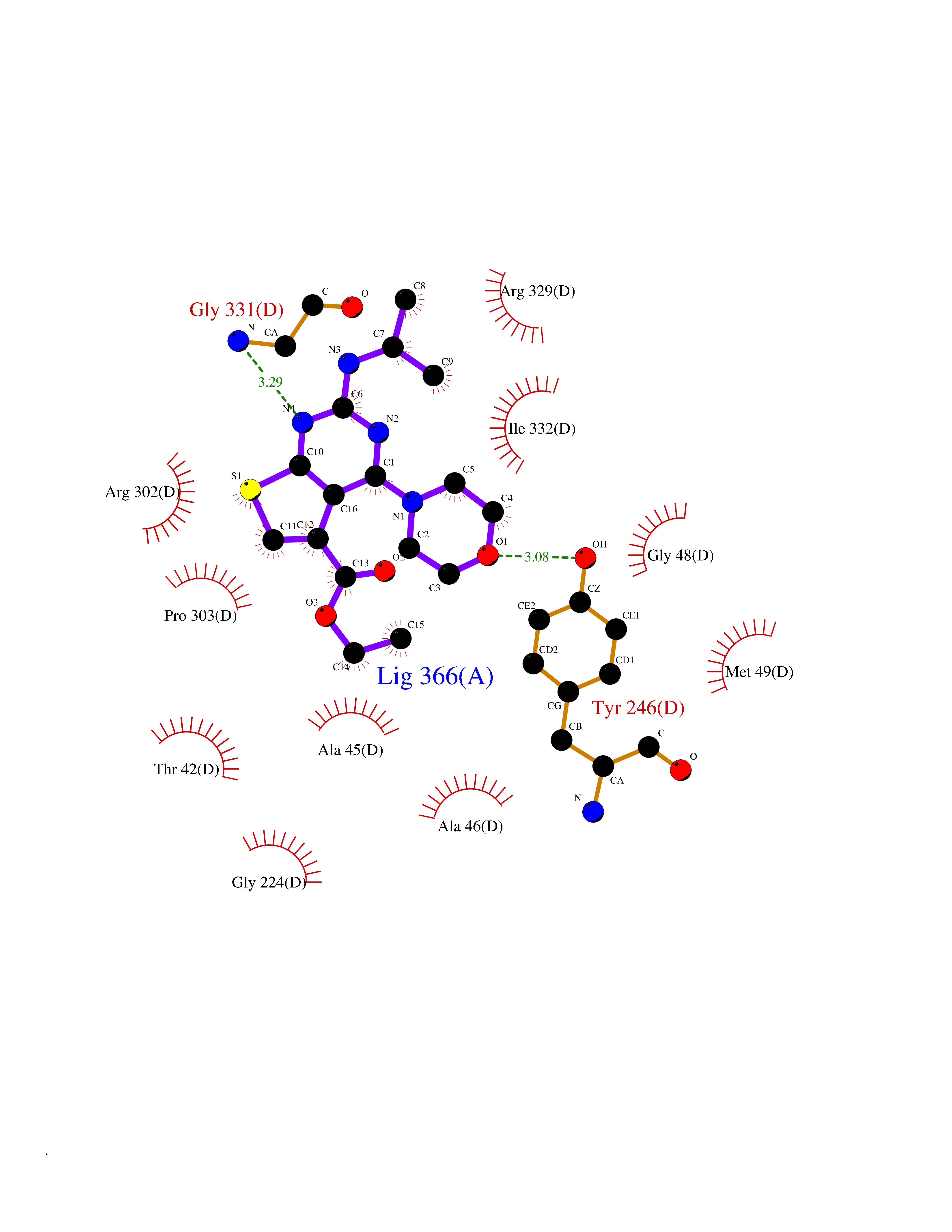 | Target general information Gen name DARS Organism Homo sapiens (Human) Uniprot ID TTD ID NA Synonyms PIG40;DARS Protein family Class-II aminoacyl-tRNA synthetase family, Type 2 subfamily Biochemical class Ligase Function Aminoacylase activity.Aspartate-tRNA ligase activity.ATP binding.RNA binding. Related diseases Hypomyelination with brainstem and spinal cord involvement and leg spasticity (HBSL) [MIM:615281]: An autosomal recessive leukoencephalopathy characterized by onset in the first year of life of severe spasticity, mainly affecting the lower limbs and resulting in an inability to achieve independent ambulation. Affected individuals show delayed motor development and nystagmus; some may have mild intellectual disability. Brain MRI shows hypomyelination and white matter lesions in the cerebrum, brainstem, cerebellum, and spinal cord. {ECO:0000269|PubMed:23643384}. The disease is caused by variants affecting the gene represented in this entry. Drugs (DrugBank ID) DB00128 Interacts with Q13155; Q08050; P62993 EC number 6.1.1.12 Uniprot keywords 3D-structure; Acetylation; Alternative splicing; Aminoacyl-tRNA synthetase; ATP-binding; Cytoplasm; Disease variant; Ligase; Nucleotide-binding; Phosphoprotein; Protein biosynthesis; Proteomics identification; Reference proteome Protein physicochemical properties Chain ID A,B Molecular weight (Da) 49374.2 Length 430 Aromaticity 0.09 Instability index 42.82 Isoelectric point 6.11 Charge (pH=7) -5.14 3D Binding mode Sequence AEDYAKERYGISSMIQSQEKPDRVLVRVRDLTIQKADEVVWVRARVHTSRAKGKQCFLVLRQQQFNVQALVAVGDHASKQMVKFAANINKESIVDVEGVVRKVNQKIGSCTQQDVELHVQKIYVISLAEPRLPLQLDDAVRPTVNQDTRLDNRVIDLRTSTSQAVFRLQSGICHLFRETLINKGFVEIQTPKISPQLYKQMCICADFEKVFSIGPVFLTEFVGLDIEMAFNYHYHEVMEEIADTMVQIFKGLQERFQTEIQTVNKQFPCEPFKFLEPTLRLEYCEALAMLREAGVEMGDEDDLSTPNEKLLGHLVKEKYDTDFYILDKYPLAVRPFYTMPDPRNPKQSNSYDMFMRGEEILSGAQRIHDPQLLTERALHHGIDLEKIKAYIDSFRFGAPPHAGGGIGLERVTMLFLGLHNVRQTSMFPRD Hydrogen bonds contact Hydrophobic contact | ||||