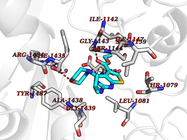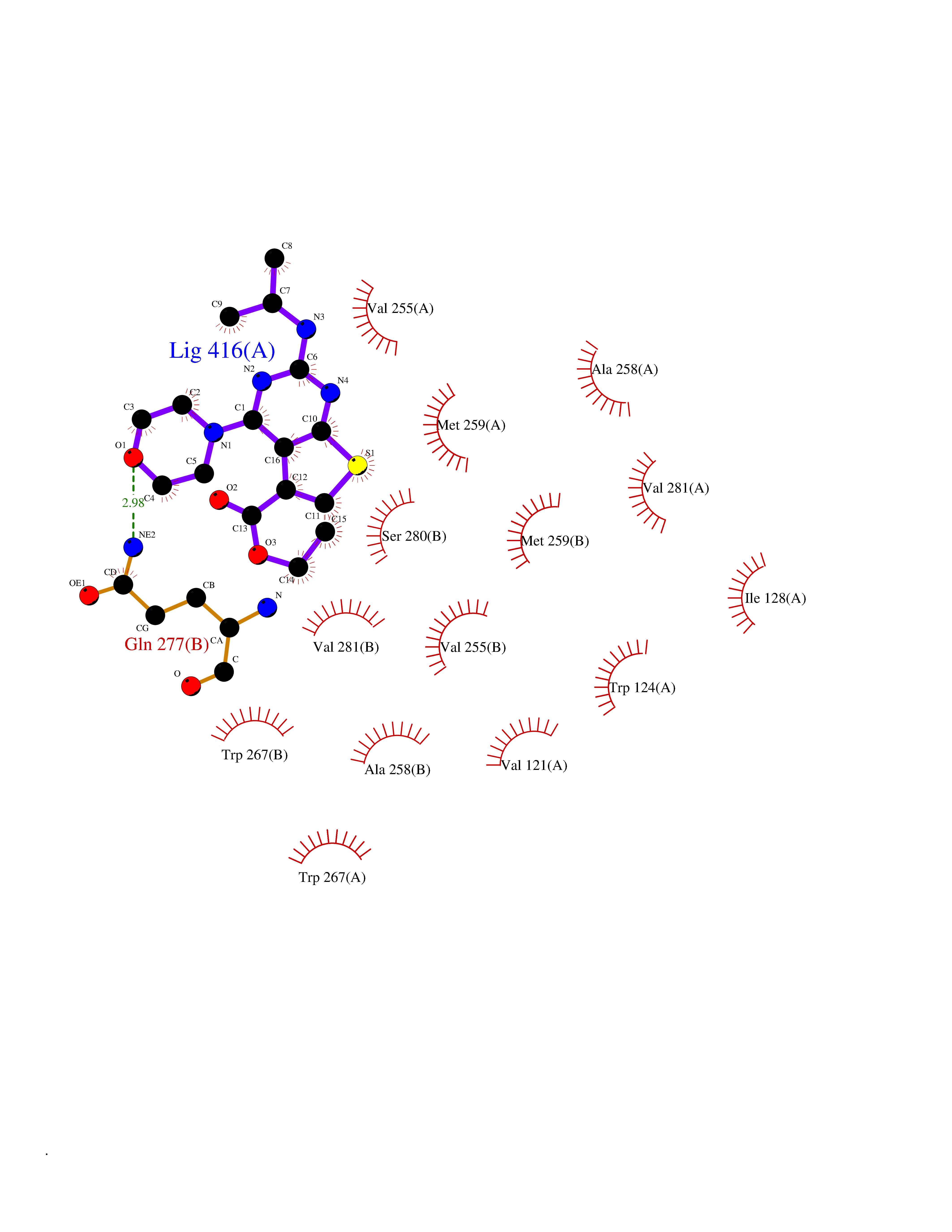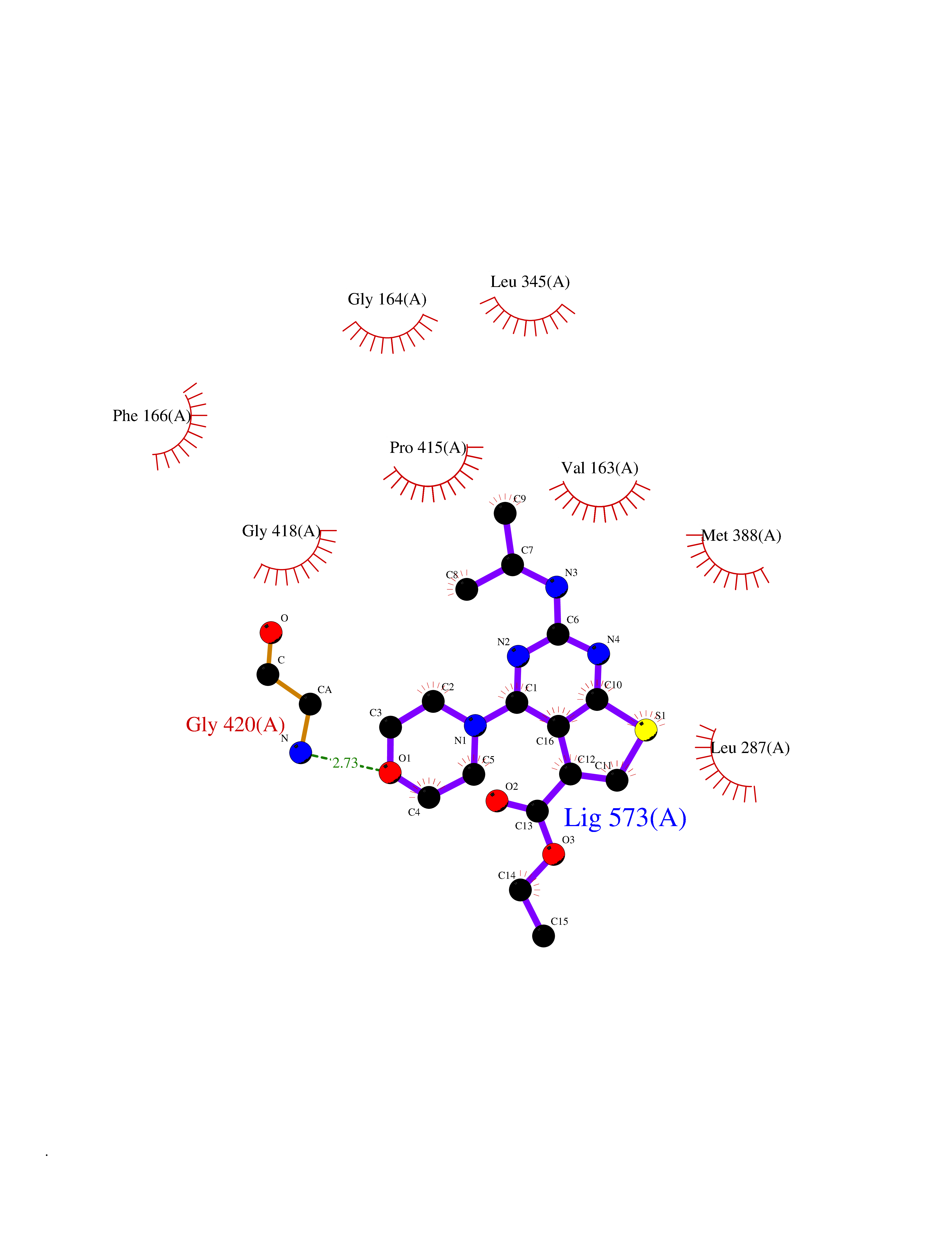 | Target general information Gen name IDH1 Organism Homo sapiens (Human) Uniprot ID TTD ID Synonyms PICD (mutated); Oxalosuccinate decarboxylase (mutated); NADP(+)-specific ICDH (mutated); Isocitrate dehydrogenase [NADP] cytoplasmic (mutated); IDP (mutated); IDH (mutated); Cytosolic NADP-isocitrate  Protein family Isocitrate and isopropylmalate dehydrogenases family Biochemical class Short-chain dehydrogenases reductase Function Catalyses the NADPH-dependent reduction of alpha-ketoglutarate to R(-)-2-hydroxyglutarate (2HG). Related diseases Glioma (GLM) [MIM:137800]: Gliomas are benign or malignant central nervous system neoplasms derived from glial cells. They comprise astrocytomas and glioblastoma multiforme that are derived from astrocytes, oligodendrogliomas derived from oligodendrocytes and ependymomas derived from ependymocytes. {ECO:0000269|PubMed:19117336, ECO:0000269|PubMed:19935646}. The gene represented in this entry is involved in disease pathogenesis. Mutations affecting Arg-132 are tissue-specific, and suggest that this residue plays a unique role in the development of high-grade gliomas. Mutations of Arg-132 to Cys, His, Leu or Ser abolish magnesium binding and abolish the conversion of isocitrate to alpha-ketoglutarate. Instead, alpha-ketoglutarate is converted to R(-)-2-hydroxyglutarate. Elevated levels of R(-)-2-hydroxyglutarate are correlated with an elevated risk of malignant brain tumors. {ECO:0000269|PubMed:19935646}.; DISEASE: Genetic variations are associated with cartilaginous tumors such as enchondroma or chondrosarcoma. Mutations of Arg-132 to Cys, Gly or His abolish the conversion of isocitrate to alpha-ketoglutarate. Instead, alpha-ketoglutarate is converted to R(-)-2-hydroxyglutarate. {ECO:0000269|PubMed:26161668}. Drugs (DrugBank ID) DB09374; DB01727; DB14568; DB03461; DB16267 Interacts with P0DP23; P27797; P36957; O75874; Q8TDX7; P16284; P17612; P50454; P37173; Q05086-3 EC number EC 1.1.1.42 Uniprot keywords 3D-structure; Acetylation; Cytoplasm; Direct protein sequencing; Glyoxylate bypass; Magnesium; Manganese; Metal-binding; NADP; Oxidoreductase; Peroxisome; Phosphoprotein; Proteomics identification; Reference proteome; Tricarboxylic acid cycle Protein physicochemical properties Chain ID A,B Molecular weight (Da) 92711.7 Length 823 Aromaticity 0.1 Instability index 26.74 Isoelectric point 6.42 Charge (pH=7) -4.48 3D Binding mode Sequence KKISGGSVVEMQGDEMTRIIWELIKEKLIFPYVELDLHSYDLGIENRDATNDQVTKDAAEAIKKHNVGVKCATITPDEKRVEEFKLKQMWKSPNGTIRNILGGTVFREAIICKNIPRLVSGWVKPIIIGHHAYGDQYRATDFVVPGPGKVEITYTPSDGTQKVTYLVHNFEEGGGVAMGMYNQDKSIEDFAHSSFQMALSKGWPLYLSTKNTILKKYDGRFKDIFQEIYDKQYKSQFEAQKIWYEHRLIDDMVAQAMKSEGGFIWACKNYDGDVQSDSVAQGYGSLGMMTSVLVCPDGKTVEAEAAHGTVTRHYRMYQKGQETSTNPIASIFAWTRGLAHRAKLDNNKELAFFANALEEVSIETIEAGFMTKDLAACIKGLPNVQRSDYLNTFEFMDKLGENLKIKLAQAKLKKISGGSVVEMQGDEMTRIIWELIKEKLIFPYVELDLHSYDLGIENRDATNDQVTKDAAEAIKKHNVGVKCATITPDEKRVEEFKLKQMWKSPNGTIRNILGGTVFREAIICKNIPRLVSGWVKPIIIGHHAYGDQYRATDFVVPGPGKVEITYTPSDGTQKVTYLVHNFEEGGGVAMGMYNQDKSIEDFAHSSFQMALSKGWPLYLSTKNTILKKYDGRFKDIFQEIYDKQYKSQFEAQKIWYEHRLIDDMVAQAMKSEGGFIWACKNYDGDVQSDSVAQGYGSLGMMTSVLVCPDGKTVEAEAAHGTVTRHYRMYQKGQETSTNPIASIFAWTRGLAHRAKLDNNKELAFFANALEEVSIETIEAGFMTKDLAACIKGLPNVQRSDYLNTFEFMDKLGENLKIKLAQAK Hydrogen bonds contact Hydrophobic contact | ||||