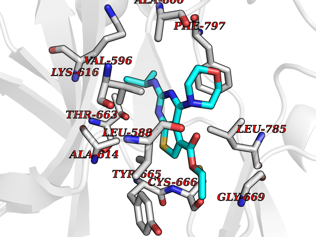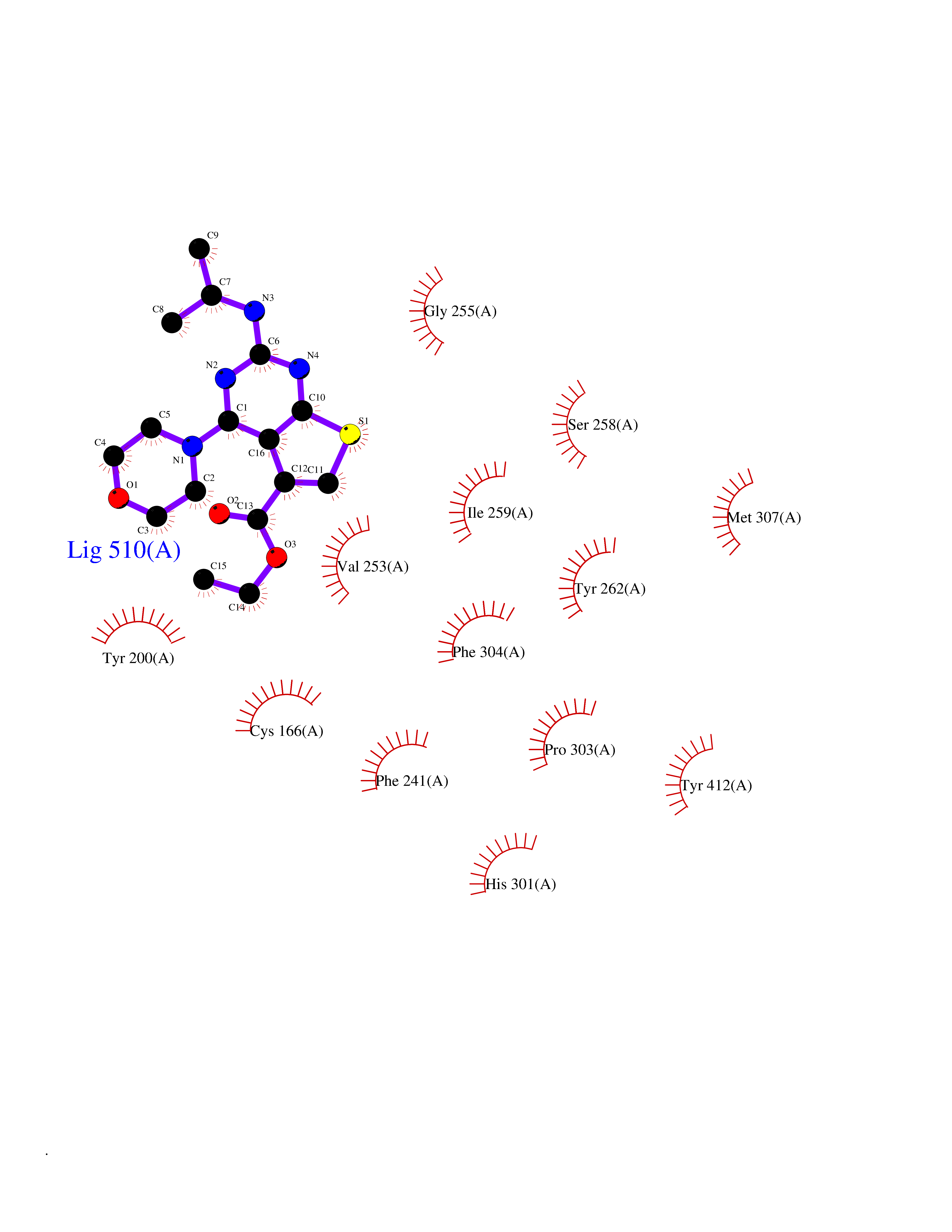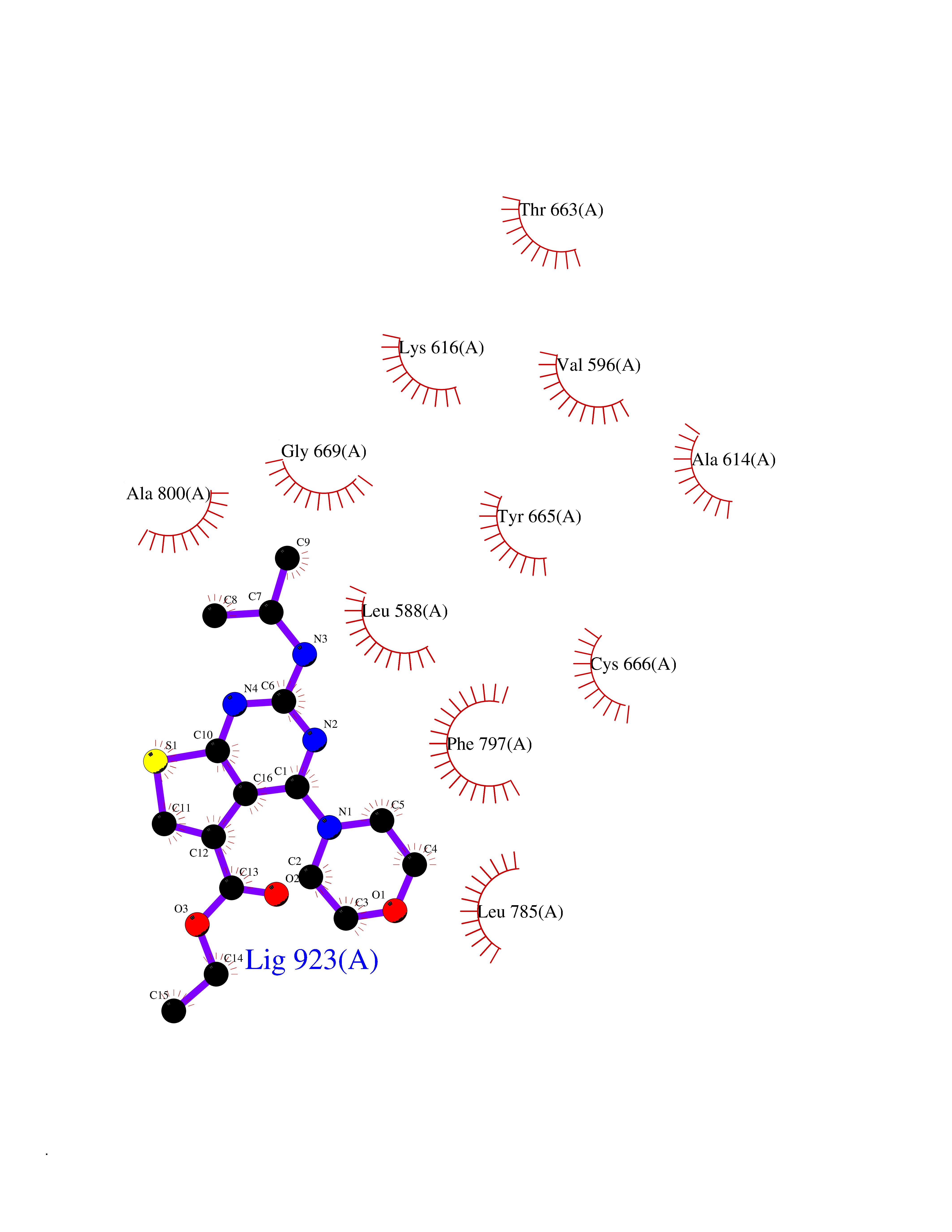 | Target general information Gen name CSF1R Organism Homo sapiens (Human) Uniprot ID TTD ID Synonyms Proto-oncogene c-Fms; M-CSF-R; FMS; CSF-1R; CSF-1-R; CSF-1 receptor; CD115 Protein family Protein kinase superfamily, Tyr protein kinase family, CSF-1/PDGF receptor subfamily Biochemical class Kinase Function Promotes the release of proinflammatory chemokines in response to IL34 and CSF1, and thereby plays an important role in innate immunity and in inflammatory processes. Plays an important role in the regulation of osteoclast proliferation and differentiation, the regulation of bone resorption, and is required for normal bone and tooth development. Required for normal male and female fertility, and for normal development of milk ducts and acinar structures in the mammary gland during pregnancy. Promotes reorganization of the actin cytoskeleton, regulates formation of membrane ruffles, cell adhesion and cell migration, and promotes cancer cell invasion. Activates several signaling pathways in response to ligand binding. Phosphorylates PIK3R1, PLCG2, GRB2, SLA2 and CBL. Activation of PLCG2 leads to the production of the cellular signaling molecules diacylglycerol and inositol 1,4,5-trisphosphate, that then lead to the activation of protein kinase C family members, especially PRKCD. Phosphorylation of PIK3R1, the regulatory subunit of phosphatidylinositol 3-kinase, leads to activation of the AKT1 signaling pathway. Activated CSF1R also mediates activation of the MAP kinases MAPK1/ERK2 and/or MAPK3/ERK1, and of the SRC family kinases SRC, FYN and YES1. Activated CSF1R transmits signals both via proteins that directly interact with phosphorylated tyrosine residues in its intracellular domain, or via adapter proteins, such as GRB2. Promotes activation of STAT family members STAT3, STAT5A and/or STAT5B. Promotes tyrosine phosphorylation of SHC1 and INPP5D/SHIP-1. Receptor signaling is down-regulated by protein phosphatases, such as INPP5D/SHIP-1, that dephosphorylate the receptor and its downstream effectors, and by rapid internalization of the activated receptor. Tyrosine-protein kinase that acts as cell-surface receptor for CSF1 and IL34 and plays an essential role in the regulation of survival, proliferation and differentiation of hematopoietic precursor cells, especially mononuclear phagocytes, such as macrophages and monocytes. Related diseases Aberrant expression of CSF1 or CSF1R can promote cancer cell proliferation, invasion and formation of metastases. Overexpression of CSF1 or CSF1R is observed in a significant percentage of breast, ovarian, prostate, and endometrial cancers.; DISEASE: Aberrant expression of CSF1 or CSF1R may play a role in inflammatory diseases, such as rheumatoid arthritis, glomerulonephritis, atherosclerosis, and allograft rejection.; DISEASE: Leukoencephalopathy, hereditary diffuse, with spheroids 1 (HDLS1) [MIM:221820]: An autosomal dominant adult-onset rapidly progressive neurodegenerative disorder characterized by variable behavioral, cognitive, and motor changes. Patients often die of dementia within 6 years of onset. Brain imaging shows patchy abnormalities in the cerebral white matter, predominantly affecting the frontal and parietal lobes. {ECO:0000269|PubMed:22197934, ECO:0000269|PubMed:23408870, ECO:0000269|PubMed:24336230, ECO:0000269|PubMed:24532199}. The disease is caused by variants affecting the gene represented in this entry.; DISEASE: Brain abnormalities, neurodegeneration, and dysosteosclerosis (BANDDOS) [MIM:618476]: An autosomal recessive disease with variable manifestations. Main features are brain malformations with calcifying leukoencephalopathy, progressive neurodegeneration, and bone sclerotic features. The age at onset ranges from infancy to early adulthood. Neurologic features include loss of previous motor and language skills, cognitive impairment, spasticity, and focal seizures. Brain imaging shows periventricular white matter abnormalities and calcifications, large cisterna magna or Dandy-Walker malformation, and sometimes agenesis of the corpus callosum. {ECO:0000269|PubMed:30982608, ECO:0000269|PubMed:30982609}. The disease is caused by variants affecting the gene represented in this entry. Drugs (DrugBank ID) DB07167; DB07202; DB12147; DB12010; DB00619; DB06080; DB12978; DB01268 Interacts with P09603; Q15375; P29323; Q6ZMJ4-1 EC number EC 2.7.10.1 Uniprot keywords 3D-structure; Alternative splicing; ATP-binding; Cell membrane; Disease variant; Disulfide bond; Glycoprotein; Immunity; Immunoglobulin domain; Inflammatory response; Innate immunity; Kinase; Membrane; Neurodegeneration; Nucleotide-binding; Phosphoprotein; Proteomics identification; Proto-oncogene; Receptor; Reference proteome; Repeat; Signal; Transferase; Transmembrane; Transmembrane helix; Tyrosine-protein kinase; Ubl conjugation Protein physicochemical properties Chain ID A Molecular weight (Da) 35082.9 Length 311 Aromaticity 0.11 Instability index 44.6 Isoelectric point 8.13 Charge (pH=7) 2.42 3D Binding mode Sequence QVRWKIIESYNSYTFIDPTQLPYNEKWEFPRNNLQFGKTLGAGAFGKVVEATAFGLGKEDAVLKVAVKMLKSTAHADEKEALMSELKIMSHLGQHENIVNLLGACTHGGPVLVITEYCCYGDLLNFLRRKSRVLETDSTASTRDLLHFSSQVAQGMAFLASKNCIHRDVAARNVLLTNGHVAKIGDFGLARDIMNDSNYIVKGNARLPVKWMAPESIFDCVYTVQSDVWSYGILLWEIFSLGLNPYPGILVNSKFYKLVKDGYQMAQPAFAPKNIYSIMQACWALEPTHRPTFQQICSFLQEQAQEDRRER Hydrogen bonds contact Hydrophobic contact | ||||