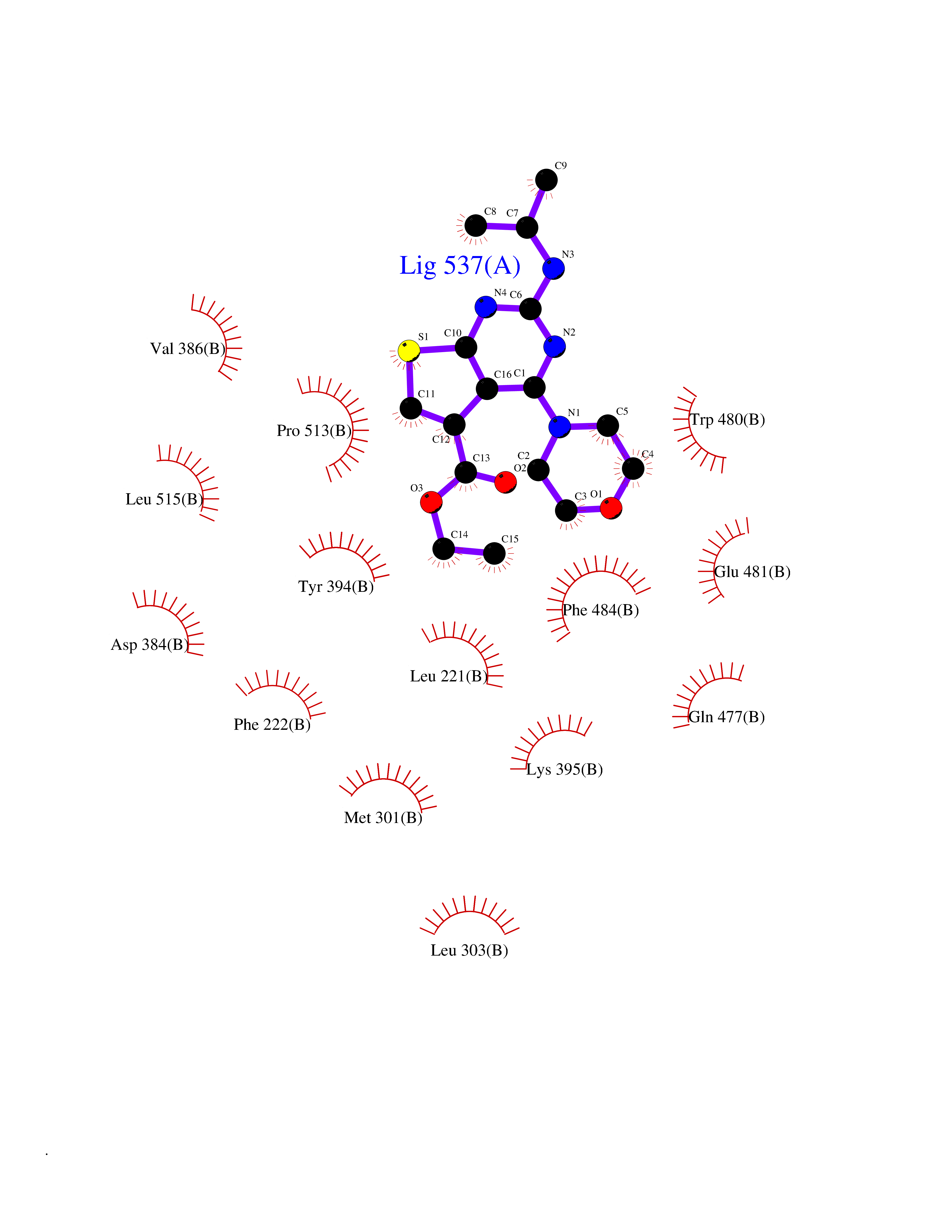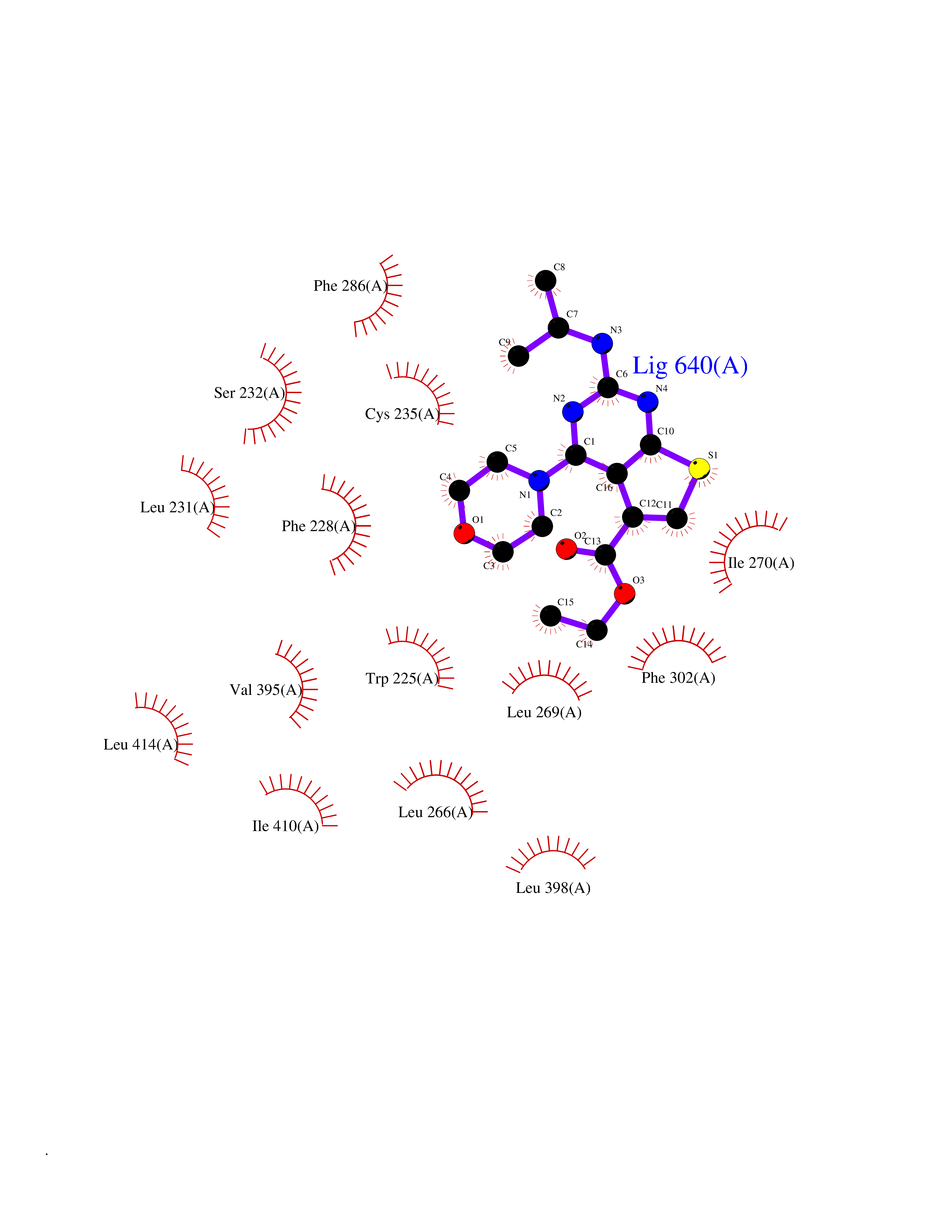 | Target general information Gen name SQLE Organism Homo sapiens (Human) Uniprot ID TTD ID Synonyms Squalene epoxidase; SQLE; SE; Oxidosqaulene cyclase Protein family Squalene monooxygenase family Biochemical class Paired donor oxygen oxidoreductase Function Catalyzes the first oxygenation step in sterol biosynthesis and is suggested to be one of the rate-limiting enzymes in this pathway. Related diseases Developmental and epileptic encephalopathy 24 (DEE24) [MIM:615871]: A disease characterized by early-onset seizures, intellectual disability of varying degrees, and behavioral disturbances or autistic features in most individuals. {ECO:0000269|PubMed:24747641, ECO:0000269|PubMed:27864847, ECO:0000269|PubMed:30351409}. The disease is caused by variants affecting the gene represented in this entry.; DISEASE: Generalized epilepsy with febrile seizures plus 10 (GEFSP10) [MIM:618482]: An autosomal dominant neurologic disorder with incomplete penetrance, characterized by variable types of seizures including absence, tonic-clonic, febrile, focal, and eyelid myoclonia. Some patients have normal neurologic development. Others have mild-to-moderate intellectual disability or autism spectrum disorder. {ECO:0000269|PubMed:29936235, ECO:0000269|PubMed:30351409}. The disease is caused by variants affecting the gene represented in this entry. Drugs (DrugBank ID) DB01091; DB08846; DB00735; DB00857 Interacts with Q96BA8; Q9H6H4; Q9NUH8 EC number EC 1.14.14.17 Uniprot keywords 3D-structure; Endoplasmic reticulum; FAD; Flavoprotein; Lipid metabolism; Membrane; Microsome; Oxidoreductase; Proteomics identification; Reference proteome; Ubl conjugation Protein physicochemical properties Chain ID A Molecular weight (Da) 50003.4 Length 450 Aromaticity 0.1 Instability index 37.4 Isoelectric point 7.8 Charge (pH=7) 1.9 3D Binding mode Sequence NDPEVIIVGAGVLGSALAAVLSRDGRKVTVIERDLKEPDRIVGEFLQPGGYHVLKDLGLGDTVEGLDAQVVNGYMIHDQESKSEVQIPYPLSENNQVQSGRAFHHGRFIMSLRKAAMAEPNAKFIEGVVLQLLEEDDVVMGVQYKDKETGDIKELHAPLTVVADGLFSKFRKSLVSNKVSVSSHFVGFLMKNAPQFKANHAELILANPSPVLIYQISSSETRVLVDIRGEMPRNLREYMVEKIYPQIPDHLKEPFLEATDNSHLRSMPASFLPPSSVKKRGVLLLGDAYNMRHPLTGGGMTVAFKDIKLWRKLLKGIPDLYDDAAIFEAKKSFYWARKTSHSFVVNILAQALYELFSATDDSLHQLRKACFLYFKLGGECVAGPVGLLSVLSPNPLVLIGHFFAVAIYAVYFCFKSEPWITKPRALLSSGAVLYKACSVIFPLIYSEMKY Hydrogen bonds contact Hydrophobic contact | ||||