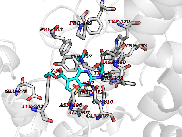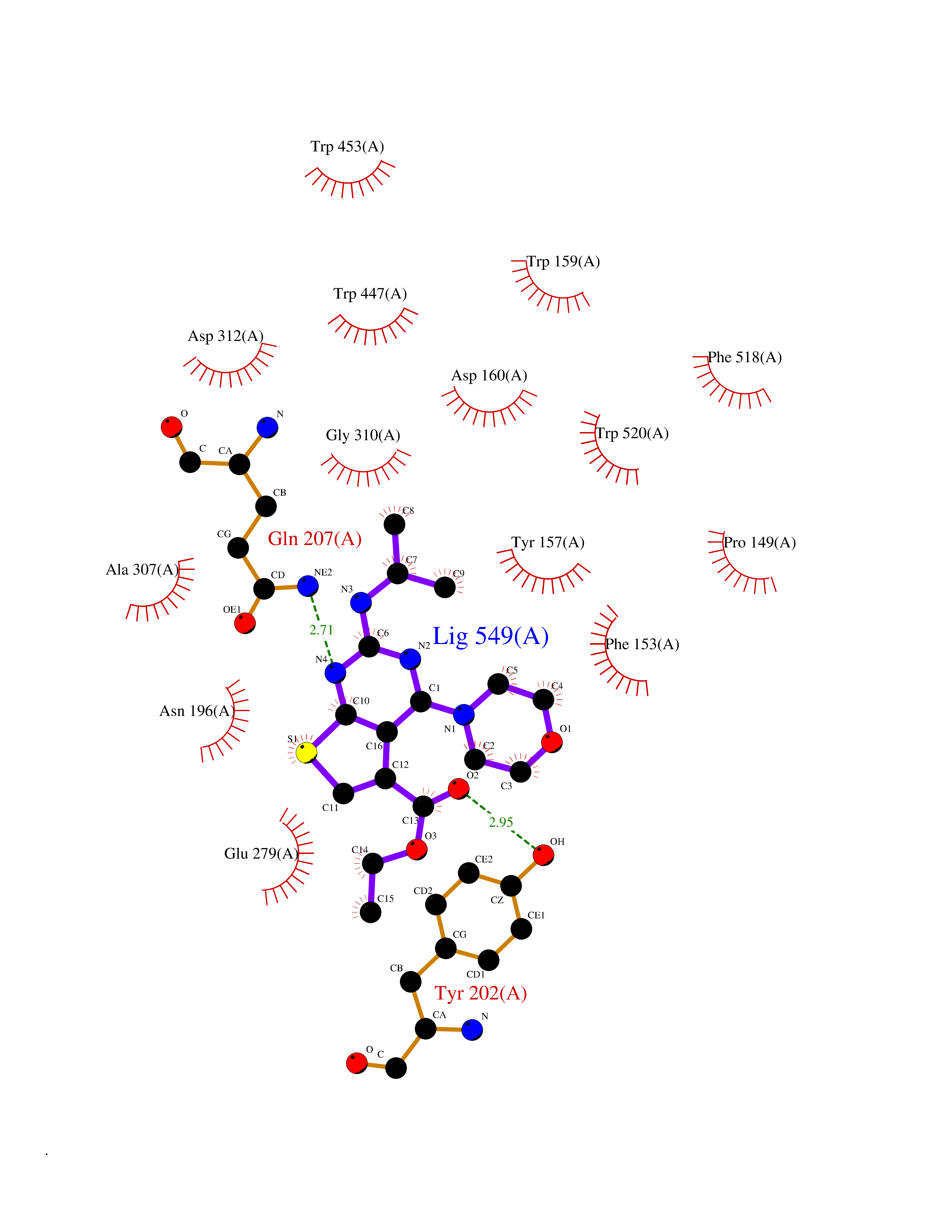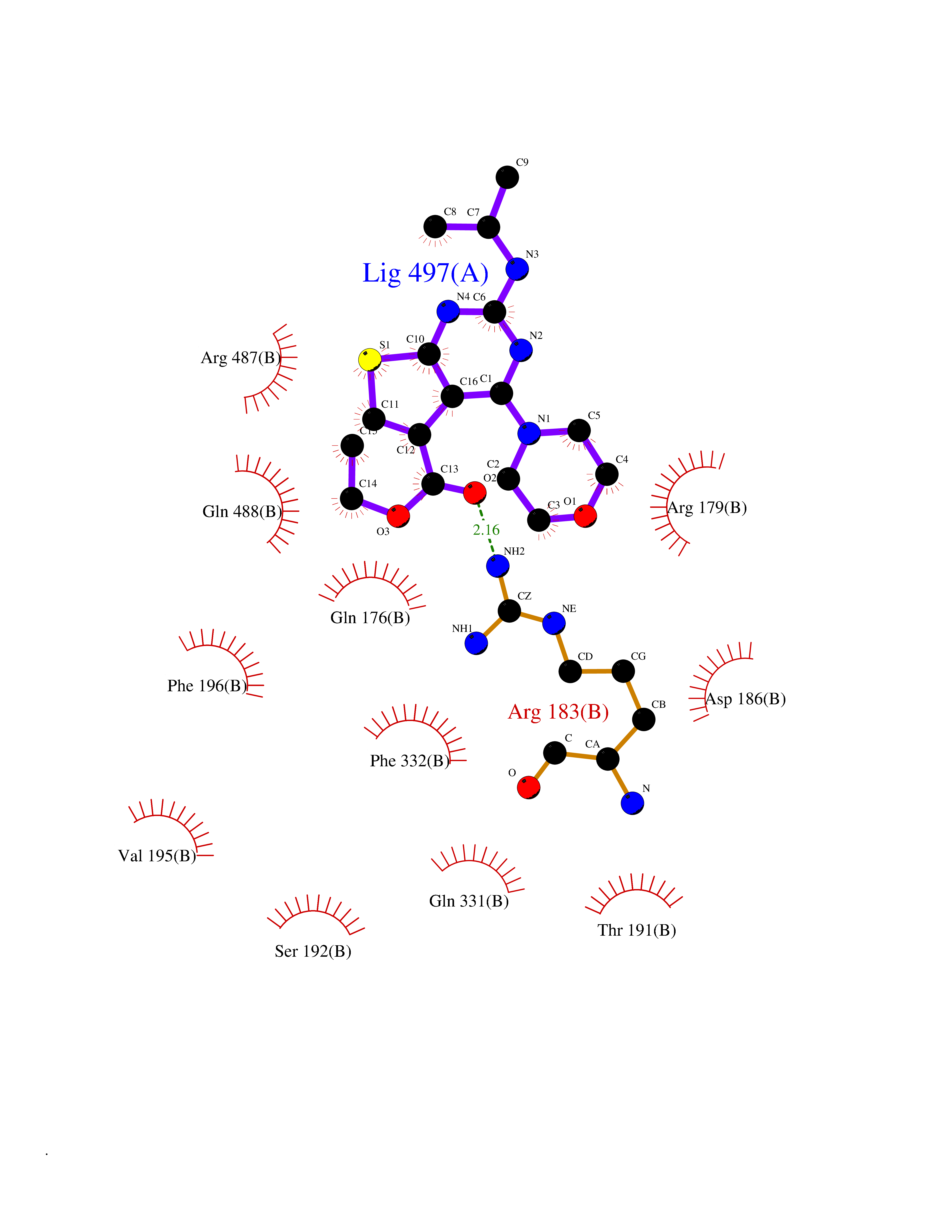 | Target general information Gen name dld Organism Escherichia coli (strain K12) Uniprot ID TTD ID NA Synonyms JW2121;b2133 Protein family Quinone-dependent D-lactate dehydrogenase family Biochemical class Oxidoreductase Function (R)-2-hydroxyglutarate dehydrogenase activity.D-lactate dehydrogenase (cytochrome) activity.Electron carrier activity.FAD binding.Flavin adenine dinucleotide binding.NAD binding.Oxidoreductase activity, acting on the CH-OH group of donors, quinone or similar compound as acceptor.Quinone binding. Related diseases Myeloperoxidase deficiency (MPOD) [MIM:254600]: A disorder characterized by decreased myeloperoxidase activity in neutrophils and monocytes that results in disseminated candidiasis. {ECO:0000269|PubMed:37198333, ECO:0000269|PubMed:7904599, ECO:0000269|PubMed:8142659, ECO:0000269|PubMed:8621627, ECO:0000269|PubMed:9354683, ECO:0000269|PubMed:9637725}. The disease is caused by variants affecting the gene represented in this entry. Drugs (DrugBank ID) DB03147; DB00756 Interacts with NA EC number 1.1.5.12 Uniprot keywords 3D-structure; Cell inner membrane; Cell membrane; Direct protein sequencing; FAD; Flavoprotein; Membrane; Oxidoreductase; Quinone; Reference proteome Protein physicochemical properties Chain ID A,B Molecular weight (Da) 56475.2 Length 502 Aromaticity 0.09 Instability index 32.5 Isoelectric point 5.97 Charge (pH=7) -10.38 3D Binding mode Sequence NKAFLNELARLVGSSHLLTDPAKTARYRKGFRSGQGDALAVVFPGSLLELWRVLKACVTADKIILMQAANTGLTEGSTPNGNDYDRDVVIISTLRLDKLHVLGKGEQVLAYPGTTLYSLEKALKPLGREPHSVIGSSCIGASVIGGICNNSGGSLVQRGPAYTEMSLFARINEDGKLTLVNHLGIDLGETPEQILSKLDDDRIKDDDVRHDGRHAHDYDYVHRVRDIEADTPARYNADPDRLFESSGCAGKLAVFAVRLDTFEAEKNQQVFYIGTNQPEVLTEIRRHILANFENLPVAGEYMHRDIYDIAELPPRMKNWRDKYEHHLLLKMAGDGVGEAKSWLVDYFKQAEGDFFVCTPEEGSKAFLHRFAAAGAAIRYQAVHSDEVEDILALDIALRRNDTEWYEHLPPEIDSQLVHKLYYGHFMCYVFHQDYIVKKGVDVHALKEQMLELLQQRGAQYPAEHNVGHLYKAPETLQKFYRENDPTNSMNPGIGKTSKRKNW Hydrogen bonds contact Hydrophobic contact | ||||