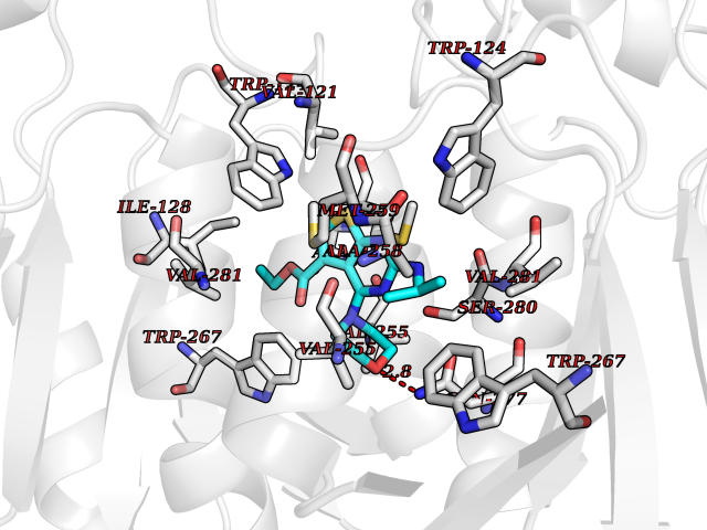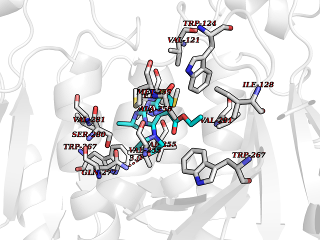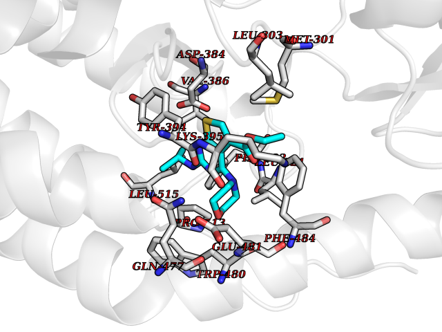 | Target general information Gen name treA Organism Escherichia coli (strain K12) Uniprot ID TTD ID NA Synonyms JW1186;osmA;b1197 Protein family Glycosyl hydrolase 37 family Biochemical class NA Function Provides the cells with the ability to utilize trehalose at high osmolarity by splitting it into glucose molecules that can subsequently be taken up by the phosphotransferase-mediated uptake system. Related diseases SRC kinase activity has been shown to be increased in several tumor tissues and tumor cell lines such as colon carcinoma cells. {ECO:0000269|PubMed:2498394, ECO:0000269|PubMed:3093483}.; DISEASE: Thrombocytopenia 6 (THC6) [MIM:616937]: A form of thrombocytopenia, a hematologic disorder defined by a decrease in the number of platelets in circulating blood, resulting in the potential for increased bleeding and decreased ability for clotting. THC6 is an autosomal dominant form. Affected individuals may also have bone abnormalities and an increased risk for myelofibrosis. {ECO:0000269|PubMed:26936507}. The disease is caused by variants affecting the gene represented in this entry. Drugs (DrugBank ID) NA Interacts with NA EC number 3.2.1.28 Uniprot keywords 3D-structure; Direct protein sequencing; Glycosidase; Hydrolase; Periplasm; Reference proteome; Signal Protein physicochemical properties Chain ID A Molecular weight (Da) 57508.9 Length 507 Aromaticity 0.11 Instability index 48.32 Isoelectric point 5.48 Charge (pH=7) -10.13 3D Binding mode Sequence PQPPDILLGPLFNDVQNAKLFPDQKTFADAVPNSDPLMILADYRMQQNQSGFDLRHFVNVNFTLPKYVPPEGQSLREHIDGLWPVLTRSTENTEKWDSLLPLPEPYVVPGGRFREVYYWDSYFTMLGLAESGHWDKVADMVANFAHEIDTYGHIPNGNRSYYLSRSQPPFFALMVELLAQHEGDAALKQYLPQMQKEYAYWMDGVENLQAGQQEKRVVKLQDGTLLNRYWDDRDTPRPESWVEDIATAKSNPNRPATEIYRDLRSAAASGWDFSSRWMDNPQQLNTLRTTSIVPVDLNSLMFKMEKILARASKAAGDNAMANQYETLANARQKGIEKYLWNDQQGWYADYDLKSHKVRNQLTAAALFPLYVNAAAKDRANKMATATKTHLLQPGGLNTTSVKSGQQWDAPNGWAPLQWVATEGLQNYGQKEVAMDISWHFLTNVQHTYDREKKLVEKYDVSTTGTGGGGGEYPLQDGFGWTNGVTLKMLDLICPKEQPCDNVPATRP Hydrogen bonds contact Hydrophobic contact | ||||
