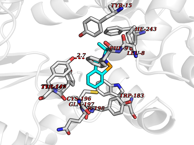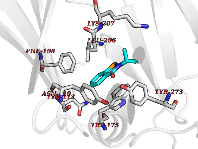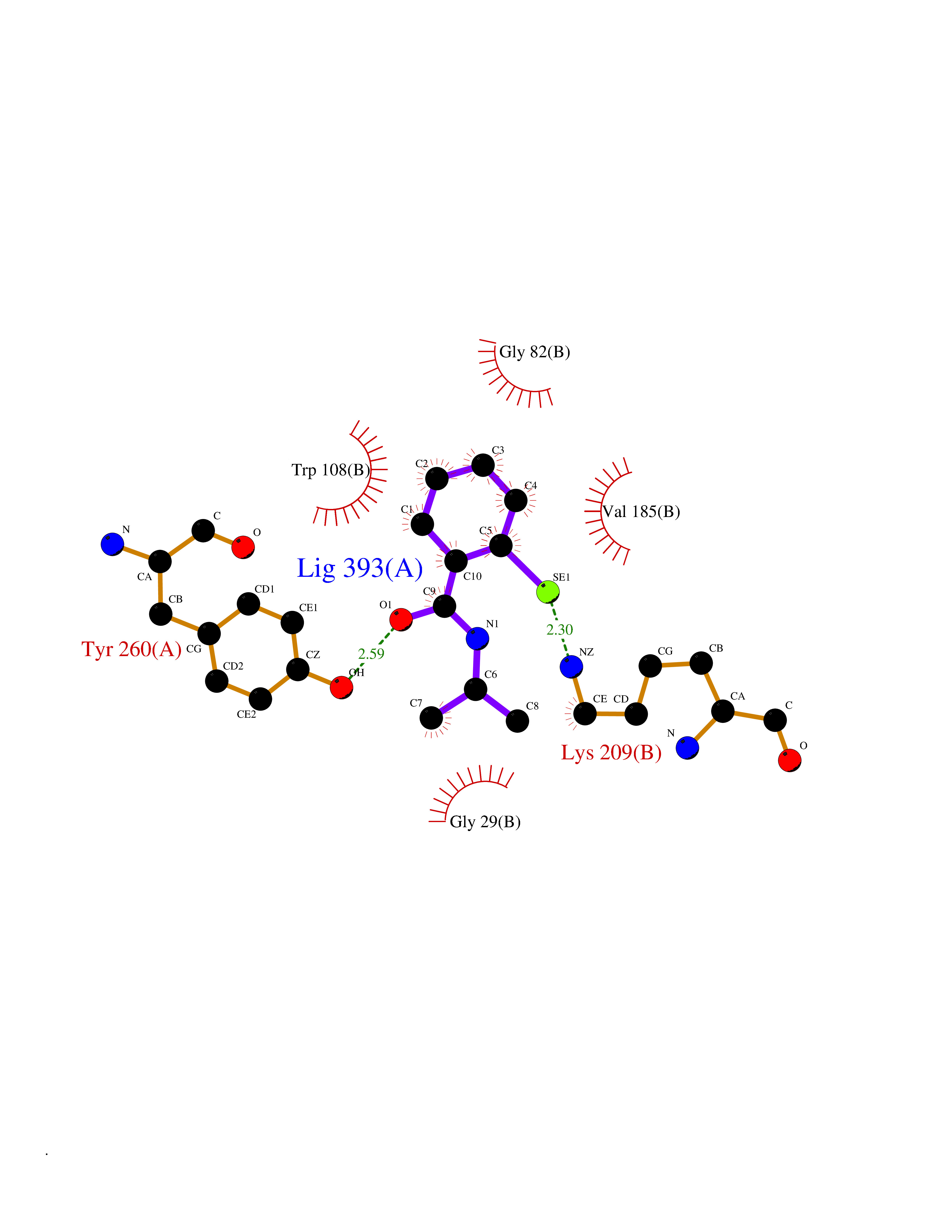 Target general information Gen name pox5 Organism Lactiplantibacillus plantarum (strain ATCC BAA-793 / NCIMB 8826 / WCFS1) (Lactobacillus plantarum) Uniprot ID TTD ID NA Synonyms lp_3589 Protein family TPP enzyme family Biochemical class Oxidoreductase Function Magnesium ion binding.Pyruvate oxidase activity.Thiamine pyrophosphate binding. Related diseases Telangiectasia, hereditary hemorrhagic, 2 (HHT2) [MIM:600376]: A multisystemic vascular dysplasia leading to dilation of permanent blood vessels and arteriovenous malformations of skin, mucosa, and viscera. The disease is characterized by recurrent epistaxis and gastro-intestinal hemorrhage. Visceral involvement includes arteriovenous malformations of the lung, liver, and brain. {ECO:0000269|PubMed:10694922, ECO:0000269|PubMed:10767348, ECO:0000269|PubMed:11170071, ECO:0000269|PubMed:11484689, ECO:0000269|PubMed:14684682, ECO:0000269|PubMed:15024723, ECO:0000269|PubMed:15712270, ECO:0000269|PubMed:16525724, ECO:0000269|PubMed:16752392, ECO:0000269|PubMed:20414677, ECO:0000269|PubMed:26176610, ECO:0000269|PubMed:8640225, ECO:0000269|PubMed:9245985}. The disease is caused by variants affecting the gene represented in this entry. Drugs (DrugBank ID) DB01987; DB03147 Interacts with NA EC number 1.2.3.3 Uniprot keywords 3D-structure; FAD; Flavoprotein; Magnesium; Metal-binding; Oxidoreductase; Reference proteome; Thiamine pyrophosphate Protein physicochemical properties Chain ID A,B Molecular weight (Da) 64137.9 Length 585 Aromaticity 0.08 Instability index 28.31 Isoelectric point 5.17 Charge (pH=7) -18.41 3D Binding mode Sequence TNILAGAAVIKVLEAWGVDHLYGIPGGSINSIMDALSAERDRIHYIQVRHEEVGAMAAAADAKLTGKIGVCFGSAGPGGTHLMNGLYDAREDHVPVLALIGQFGTTGMNMDTFQEMNENPIYADVADYNVTAVNAATLPHVIDEAIRRAYAHQGVAVVQIPVDLPWQQIPAEDWYASANSYQTPLLPEPDVQAVTRLTQTLLAAERPLIYYGIGARKAGKELEQLSKTLKIPLMSTYPAKGIVADRYPAYLGSANRVAQKPANEALAQADVVLFVGNNYPFAEVSKAFKNTRYFLQIDIDPAKLGKRHKTDIAVLADAQKTLAAILAQVSERESTPWWQANLANVKNWRAYLASLEDKQEGPLQAYQVLRAVNKIAEPDAIYSIDVGDINLNANRHLKLTPSNRHITSNLFATMGVGIPGAIAAKLNYPERQVFNLAGDGGASMTMQDLATQVQYHLPVINVVFTNCQYGWIKDEQEDTNQNDFIGVEFNDIDFSKIADGVHMQAFRVNKIEQLPDVFEQAKAIAQHEPVLIDAVITGDRPLPAEKLRLDSAMSSAADIEAFKQRYEAQDLQPLSTYLKQFGLDD Hydrogen bonds contact Hydrophobic contact | ||||
