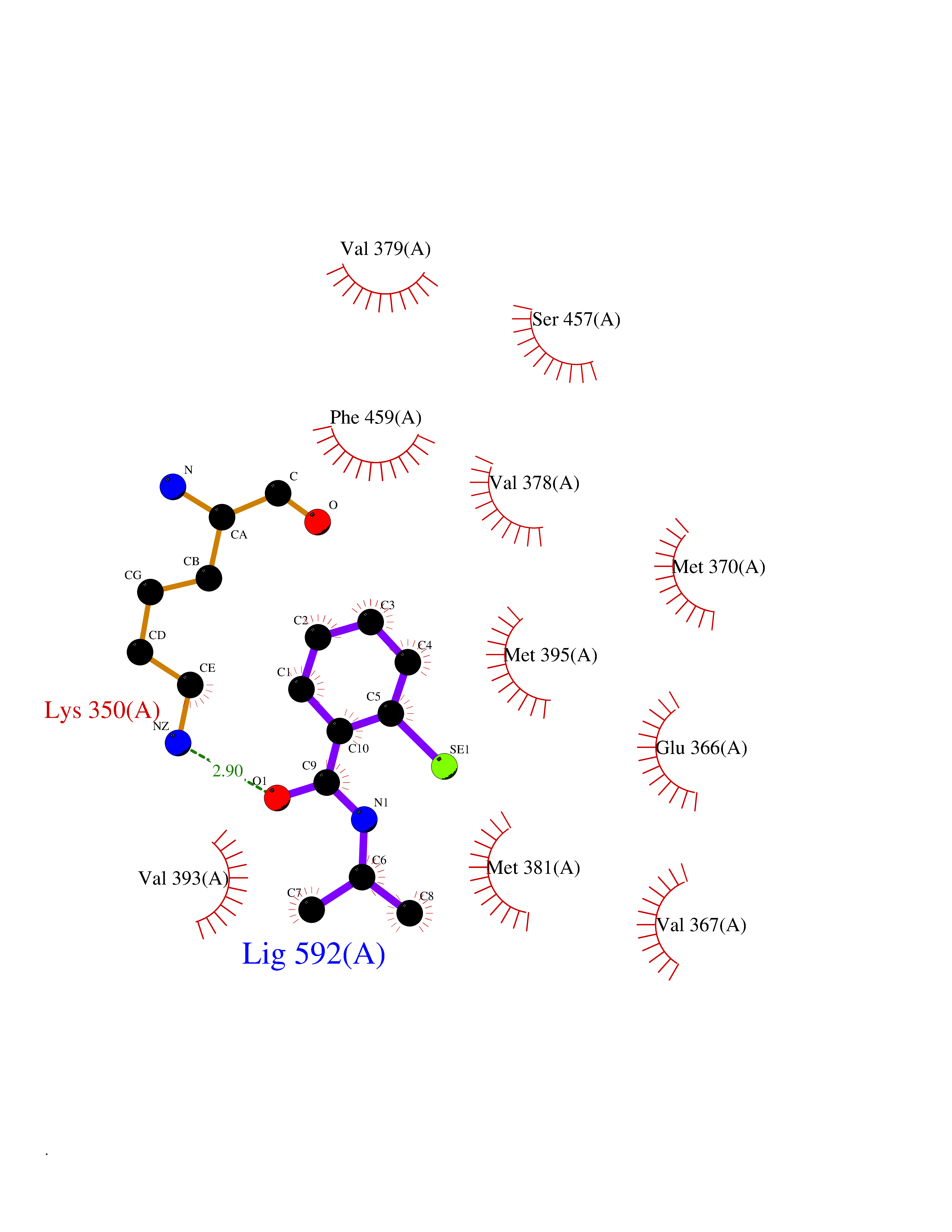 Target general information Gen name PAK4 Organism Homo sapiens (Human) Uniprot ID TTD ID Synonyms p21-activated kinase 4; Serine/threonine-protein kinase PAK 4; PAK-4; KIAA1142 Protein family Protein kinase superfamily, STE Ser/Thr protein kinase family, STE20 subfamily Biochemical class Kinase Function Activation by various effectors including growth factor receptors or active CDC42 and RAC1 results in a conformational change and a subsequent autophosphorylation on several serine and/or threonine residues. Phosphorylates and inactivates the protein phosphatase SSH1, leading to increased inhibitory phosphorylation of the actin binding/depolymerizing factor cofilin. Decreased cofilin activity may lead to stabilization of actin filaments. Phosphorylates LIMK1, a kinase that also inhibits the activity of cofilin. Phosphorylates integrin beta5/ITGB5 and thus regulates cell motility. Phosphorylates ARHGEF2 and activates the downstream target RHOA that plays a role in the regulation of assembly of focal adhesions and actin stress fibers. Stimulates cell survival by phosphorylating the BCL2 antagonist of cell death BAD. Alternatively, inhibits apoptosis by preventing caspase-8 binding to death domain receptors in a kinase independent manner. Plays a role in cell-cycle progression by controlling levels of the cell-cycle regulatory protein CDKN1A and by phosphorylating RAN. Serine/threonine protein kinase that plays a role in a variety of different signaling pathways including cytoskeleton regulation, cell migration, growth, proliferation or cell survival. Related diseases Metachromatic leukodystrophy (MLD) [MIM:250100]: An autosomal recessive disease caused by abnormal intralysosomal accumulation of cerebroside-3-sulfate in central and peripheral nervous systems, as well as other organs. MLD is clinically characterized by leukodystrophy, progressive demyelination and a variety of neurological symptoms, including gait disturbances, ataxias, optical atrophy, dementia, seizures, and spastic tetraparesis. Decreased arylsulfatase A activity is detected in urine, leukocytes, and fibroblasts of affected individuals. Several forms of the disease can be distinguished according to the age at onset and disease severity: late infantile, juvenile and adult forms, partial cerebroside sulfate deficiency, and pseudoarylsulfatase A deficiency. Individuals with pseudoarylsulfatase A deficiency have low arylsulfatase A activity but lack neurological manifestations and are apparently healthy. {ECO:0000269|PubMed:10220151, ECO:0000269|PubMed:10381328, ECO:0000269|PubMed:10477432, ECO:0000269|PubMed:10533072, ECO:0000269|PubMed:10751093, ECO:0000269|PubMed:11020646, ECO:0000269|PubMed:11061266, ECO:0000269|PubMed:11456299, ECO:0000269|PubMed:11941485, ECO:0000269|PubMed:12503099, ECO:0000269|PubMed:12788103, ECO:0000269|PubMed:1353340, ECO:0000269|PubMed:14517960, ECO:0000269|PubMed:14680985, ECO:0000269|PubMed:15026521, ECO:0000269|PubMed:15326627, ECO:0000269|PubMed:15710861, ECO:0000269|PubMed:1670590, ECO:0000269|PubMed:1673291, ECO:0000269|PubMed:1678251, ECO:0000269|PubMed:18693274, ECO:0000269|PubMed:19606494, ECO:0000269|PubMed:20339381, ECO:0000269|PubMed:21265945, ECO:0000269|PubMed:2574462, ECO:0000269|PubMed:7581401, ECO:0000269|PubMed:7825603, ECO:0000269|PubMed:7860068, ECO:0000269|PubMed:7902317, ECO:0000269|PubMed:7906588, ECO:0000269|PubMed:7909527, ECO:0000269|PubMed:8095918, ECO:0000269|PubMed:8101038, ECO:0000269|PubMed:8101083, ECO:0000269|PubMed:8104633, ECO:0000269|PubMed:8891236, ECO:0000269|PubMed:9090526, ECO:0000269|PubMed:9272717, ECO:0000269|PubMed:9452102, ECO:0000269|PubMed:9490297, ECO:0000269|PubMed:9600244, ECO:0000269|PubMed:9819708}. The disease is caused by variants affecting the gene represented in this entry.; DISEASE: Multiple sulfatase deficiency (MSD) [MIM:272200]: A clinically and biochemically heterogeneous disorder caused by the simultaneous impairment of all sulfatases, due to defective post-translational modification and activation. It combines features of individual sulfatase deficiencies such as metachromatic leukodystrophy, mucopolysaccharidosis, chondrodysplasia punctata, hydrocephalus, ichthyosis, neurologic deterioration and developmental delay. {ECO:0000269|PubMed:15146462}. The protein represented in this entry is involved in disease pathogenesis. Arylsulfatase A activity is impaired in multiple sulfatase deficiency due to mutations in SUMF1 (PubMed:15146462). SUMF1 mutations result in defective post-translational modification of ARSA at residue Cys-69 that is not converted to 3-oxoalanine (PubMed:7628016). {ECO:0000269|PubMed:15146462, ECO:0000269|PubMed:7628016}. Drugs (DrugBank ID) DB12010 Interacts with P60953; Q96EL1; P31947; P54274; O00401; P62258; P63104; P05067; P37840 EC number EC 2.7.11.1 Uniprot keywords 3D-structure; Alternative splicing; Apoptosis; ATP-binding; Cell cycle; Cytoplasm; Kinase; Methylation; Nucleotide-binding; Phosphoprotein; Proteomics identification; Reference proteome; Serine/threonine-protein kinase; Transferase; Ubl conjugation Protein physicochemical properties Chain ID A Molecular weight (Da) 32672.8 Length 291 Aromaticity 0.07 Instability index 36.81 Isoelectric point 8.36 Charge (pH=7) 2.21 3D Binding mode Sequence MSHEQFRAALQLVVDPGDPRSYLDNFIKIGEGSTGIVCIATVRSSGKLVAVKKMDLRKQQRRELLFNEVVIMRDYQHENVVEMYNSYLVGDELWVVMEFLEGGALTDIVTHTRMNEEQIAAVCLAVLQALSVLHAQGVIHRDIKSDSILLTHDGRVKLSDFGFCAQVSKEVPRRKXLVGTPYWMAPELISRLPYGPEVDIWSLGIMVIEMVDGEPPYFNEPPLKAMKMIRDNLPPRLKNLHKVSPSLKGFLDRLLVRDPAQRATAAELLKHPFLAKAGPPASIVPLMRQNR Hydrogen bonds contact Hydrophobic contact | ||||