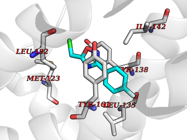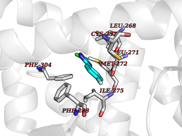 Target general information Gen name RARG Organism Homo sapiens (Human) Uniprot ID TTD ID Synonyms RAR-gamma; Nuclear receptor subfamily 1 group B member 3; NR1B3 Protein family Nuclear hormone receptor family, NR1 subfamily Biochemical class Nuclear hormone receptor Function Receptor for retinoic acid. Retinoic acid receptors bind as heterodimers to their target response elements in response to their ligands, all-trans or 9-cis retinoic acid, and regulate gene expression in various biological processes. The RAR/RXR heterodimers bind to the retinoic acid response elements (RARE) composed of tandem 5'-AGGTCA-3' sites known as DR1-DR5. In the absence of ligand, acts mainly as an activator of gene expression due to weak binding to corepressors. Required for limb bud development. In concert with RARA or RARB, required for skeletal growth, matrix homeostasis and growth plate function (By similarity). Related diseases Cystic fibrosis (CF) [MIM:219700]: A common generalized disorder of the exocrine glands which impairs clearance of secretions in a variety of organs. It is characterized by the triad of chronic bronchopulmonary disease (with recurrent respiratory infections), pancreatic insufficiency (which leads to malabsorption and growth retardation) and elevated sweat electrolytes. It is the most common genetic disease in Caucasians, with a prevalence of about 1 in 2'000 live births. Inheritance is autosomal recessive. {ECO:0000269|PubMed:10094564, ECO:0000269|PubMed:10869121, ECO:0000269|PubMed:10923036, ECO:0000269|PubMed:11242048, ECO:0000269|PubMed:12167682, ECO:0000269|PubMed:12394343, ECO:0000269|PubMed:12529365, ECO:0000269|PubMed:1284466, ECO:0000269|PubMed:1284468, ECO:0000269|PubMed:1284529, ECO:0000269|PubMed:1284530, ECO:0000269|PubMed:1284548, ECO:0000269|PubMed:1379210, ECO:0000269|PubMed:15528182, ECO:0000269|PubMed:15716351, ECO:0000269|PubMed:16822950, ECO:0000269|PubMed:1695717, ECO:0000269|PubMed:1699669, ECO:0000269|PubMed:17098864, ECO:0000269|PubMed:1710600, ECO:0000269|PubMed:1712898, ECO:0000269|PubMed:17182731, ECO:0000269|PubMed:20008117, ECO:0000269|PubMed:20150177, ECO:0000269|PubMed:20691141, ECO:0000269|PubMed:21884936, ECO:0000269|PubMed:2236053, ECO:0000269|PubMed:23818989, ECO:0000269|PubMed:25330774, ECO:0000269|PubMed:26846474, ECO:0000269|PubMed:27241308, ECO:0000269|PubMed:28001373, ECO:0000269|PubMed:28067262, ECO:0000269|PubMed:28087700, ECO:0000269|PubMed:32026723, ECO:0000269|PubMed:33572515, ECO:0000269|PubMed:7504969, ECO:0000269|PubMed:7505694, ECO:0000269|PubMed:7505767, ECO:0000269|PubMed:7508414, ECO:0000269|PubMed:7513296, ECO:0000269|PubMed:7517264, ECO:0000269|PubMed:7520022, ECO:0000269|PubMed:7522211, ECO:0000269|PubMed:7524909, ECO:0000269|PubMed:7524913, ECO:0000269|PubMed:7525450, ECO:0000269|PubMed:7537150, ECO:0000269|PubMed:7541273, ECO:0000269|PubMed:7541510, ECO:0000269|PubMed:7543567, ECO:0000269|PubMed:7544319, ECO:0000269|PubMed:7581407, ECO:0000269|PubMed:7606851, ECO:0000269|PubMed:7680525, ECO:0000269|PubMed:7683628, ECO:0000269|PubMed:7683954, ECO:0000269|PubMed:8081395, ECO:0000269|PubMed:8406518, ECO:0000269|PubMed:8522333, ECO:0000269|PubMed:8723693, ECO:0000269|PubMed:8723695, ECO:0000269|PubMed:8800923, ECO:0000269|PubMed:8829633, ECO:0000269|PubMed:8910473, ECO:0000269|PubMed:8956039, ECO:0000269|PubMed:9101301, ECO:0000269|PubMed:9222768, ECO:0000269|PubMed:9375855, ECO:0000269|PubMed:9401006, ECO:0000269|PubMed:9443874, ECO:0000269|PubMed:9452048, ECO:0000269|PubMed:9452054, ECO:0000269|PubMed:9452073, ECO:0000269|PubMed:9482579, ECO:0000269|PubMed:9507391, ECO:0000269|PubMed:9521595, ECO:0000269|PubMed:9554753, ECO:0000269|PubMed:9736778, ECO:0000269|PubMed:9804160, ECO:0000269|PubMed:9921909}. The disease is caused by variants affecting the gene represented in this entry. There is some evidence that the functional defect caused by the most common variant Phe-508 DEL can be corrected by the binding to the snake phospholipase A2 crotoxin basic subunit CB. This toxin both disrupts the Phe-508 DEL-cytokeratin 8 complex, allowing for the escape from degradation, and increases the chloride channel current (PubMed:27241308). {ECO:0000269|PubMed:27241308}.; DISEASE: Congenital bilateral absence of the vas deferens (CBAVD) [MIM:277180]: An autosomal recessive disease characterized by vas deferens aplasia resulting in azoospermia and male infertility. CBAVD may occur in isolation or as a manifestation of cystic fibrosis. {ECO:0000269|PubMed:10066035, ECO:0000269|PubMed:10651488, ECO:0000269|PubMed:17329263, ECO:0000269|PubMed:7529962, ECO:0000269|PubMed:7539342, ECO:0000269|PubMed:9067761, ECO:0000269|PubMed:9736778, ECO:0000269|Ref.117}. The disease is caused by variants affecting the gene represented in this entry. Drugs (DrugBank ID) DB07294; DB07031; DB00459; DB00210; DB00523; DB02466; DB03466; DB02741; DB03279; DB00926; DB00982; DB05785; DB05467; DB02258; DB00799; DB00755; DB12808 Interacts with Q96RK4; P13349; P31321; P28702; P48443; O60504-2 EC number NA Uniprot keywords 3D-structure; Alternative splicing; Cytoplasm; DNA-binding; Isopeptide bond; Metal-binding; Methylation; Nucleus; Proteomics identification; Receptor; Reference proteome; Transcription; Transcription regulation; Ubl conjugation; Zinc; Zinc-finger Protein physicochemical properties Chain ID A Molecular weight (Da) 26574.9 Length 236 Aromaticity 0.06 Instability index 49.98 Isoelectric point 5.76 Charge (pH=7) -2.95 3D Binding mode Sequence ASPQLEELITKVSKAHQETFPSLCQLGKYTTNSSADHRVQLDLGLWDKFSELATKCIIKIVEFAKRLPGFTGLSIADQITLLKAACLDILMLRICTRYTPEQDTMTFSDGLTLNRTQMHNAGFGPLTDLVFAFAGQLLPLEMDDTETGLLSAICLICGDRMDLEEPEKVDKLQEPLLEALRLYARRRRPSQPYMFPRMLMKITDLRGISTKGAERAITLKMEIPGPMPPLIREMLE Hydrogen bonds contact Hydrophobic contact | ||||
