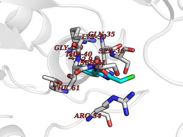 Target general information Gen name Stap-coc fabI Organism Staphylococcus aureus (strain NCTC 8325 / PS 47) Uniprot ID TTD ID Synonyms NADPHdependent enoylACP reductase; Enoyl[acylcarrierprotein] reductase [NADPH] FabI Protein family Short-chain dehydrogenases/reductases (SDR) family, FabI subfamily Biochemical class Short-chain dehydrogenases reductase Function Catalyzes the reduction of a carbon-carbon double bond in an enoyl moiety that is covalently linked to an acyl carrier protein (ACP). It has a preference for a long chain (C12) substrate compared to the shorter (C4) acyl group. Involved in the elongation cycle of fatty acid which are used in the lipid metabolism. Related diseases Amyloidosis, hereditary systemic 4, Finnish type (AMYLD4) [MIM:105120]: A form of hereditary systemic amyloidosis, a disorder characterized by amyloid deposition in multiple tissues resulting in a wide clinical spectrum. AMYLD4 is due to gelsolin amyloid deposition and is typically characterized by cranial neuropathy and lattice corneal dystrophy. Most patients have modest involvement of internal organs, but severe systemic disease can develop in some individuals causing peripheral polyneuropathy, amyloid cardiomyopathy, and nephrotic syndrome leading to renal failure. AMYLD4 is usually inherited in an autosomal dominant pattern. However, homozygotes with a more severe phenotype have also been reported. {ECO:0000269|PubMed:1338910, ECO:0000269|PubMed:19666512, ECO:0000269|PubMed:2176481}. The disease is caused by variants affecting the gene represented in this entry. Drugs (DrugBank ID) NA Interacts with NA EC number NA Uniprot keywords 3D-structure; Fatty acid biosynthesis; Fatty acid metabolism; Lipid biosynthesis; Lipid metabolism; NAD; NADP; Oxidoreductase; Reference proteome Protein physicochemical properties Chain ID A,C Molecular weight (Da) 55674.6 Length 510 Aromaticity 0.07 Instability index 33.86 Isoelectric point 5.64 Charge (pH=7) -9.3 3D Binding mode Sequence VNLENKTYVIMGIANKRSIAFGVAKVLDQLGAKLVFTYRKERSRKELEKLLEQLNQPEAHLYQIDVQSDEEVINGFEQIGKDVGNIDGVYHSIAFANMEDLRGRFSETSREGFLLAQDISSYSLTIVAHEAKKLMPEGGSIVATTYLGGEFAVQNYNVMGVAKASLEANVKYLALDLGPDNIRVNAISAGPIRTLSAKGVGGFNTILKEIEERAPLKRNVDQVEVGKTAAYLLSDLSSGVTGENIHVDSGFHAIKVNLENKTYVIMGIANKRSIAFGVAKVLDQLGAKLVFTYRKERSRKELEKLLEQLNQPEAHLYQIDVQSDEEVINGFEQIGKDVGNIDGVYHSIAFANMEDLRGRFSETSREGFLLAQDISSYSLTIVAHEAKKLMPEGGSIVATTYLGGEFAVQNYNVMGVAKASLEANVKYLALDLGPDNIRVNAISAGPIRTLSAKGVGGFNTILKEIEERAPLKRNVDQVEVGKTAAYLLSDLSSGVTGENIHVDSGFHAIK Hydrogen bonds contact Hydrophobic contact | ||||