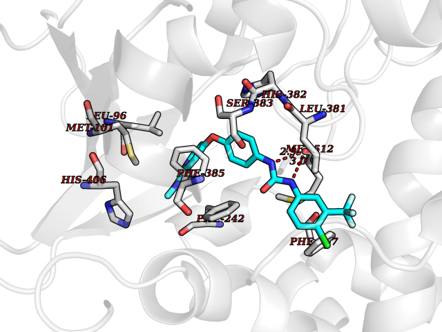 Target general information Gen name MAP3K20 Organism Homo sapiens (Human) Uniprot ID TTD ID Synonyms ZAK; Sterile alpha motif- and leucine zipper-containing kinase AZK; Mixed lineage kinase-related kinase; Mitogen-activated protein kinase kinase kinase MLT; Mitogen-activated protein kinase kinase kin Protein family Protein kinase superfamily, STE Ser/Thr protein kinase family, MAP kinase kinase kinase subfamily Biochemical class NA Function Stress-activated component of a protein kinase signal transduction cascade. Regulates the JNK and p38 pathways. Part of a signaling cascade that begins with the activation of the adrenergic receptor ADRA1B and leads to the activation of MAPK14. Pro-apoptotic. Role in regulation of S and G2 cell cycle checkpoint by direct phosphorylation of CHEK2. Involved in limb development. Related diseases Split-foot malformation with mesoaxial polydactyly (SFMMP) [MIM:616890]: An autosomal recessive disorder characterized by a split-foot defect, mesoaxial polydactyly, nail abnormalities of the hands, and sensorineural hearing loss. {ECO:0000269|PubMed:26755636, ECO:0000269|PubMed:32266845}. The disease is caused by variants affecting the gene represented in this entry.; DISEASE: Myopathy, centronuclear, 6, with fiber-type disproportion (CNM6) [MIM:617760]: A form of centronuclear myopathy, a congenital muscle disorder characterized by progressive muscular weakness and wasting involving mainly limb girdle, trunk, and neck muscles. It may also affect distal muscles. Weakness may be present during childhood or adolescence or may not become evident until the third decade of life. Ptosis is a frequent clinical feature. The most prominent histopathologic features include high frequency of centrally located nuclei in muscle fibers not secondary to regeneration, radial arrangement of sarcoplasmic strands around the central nuclei, and predominance and hypotrophy of type 1 fibers. CNM6 is an autosomal recessive, slowly progressive form with onset in infancy or early childhood. {ECO:0000269|PubMed:27816943, ECO:0000269|PubMed:30237576}. The disease is caused by variants affecting the gene represented in this entry. Drugs (DrugBank ID) DB01254; DB12010 Interacts with O75582; P31947; P63104; Q8N184; Q16512; Q6P2D0; Q6ZN57; P13682; Q8N184; Q6AZW8; Q9NQZ8 EC number EC 2.7.11.25 Uniprot keywords 3D-structure; Acetylation; Alternative splicing; ATP-binding; Cell cycle; Cytoplasm; Disease variant; Kinase; Magnesium; Metal-binding; Nucleotide-binding; Nucleus; Phosphoprotein; Proteomics identification; Reference proteome; RNA-binding; rRNA-binding; Serine/threonine-protein kinase; Transferase Protein physicochemical properties Chain ID A,B Molecular weight (Da) 64591.5 Length 566 Aromaticity 0.1 Instability index 52.08 Isoelectric point 5.69 Charge (pH=7) -12.83 3D Binding mode Sequence ASFVQIKFDDLQFFENCGGGSFGSVYRAKWISQDKEVAVKKLLKIEKEAEILSVLSHRNIIQFYGVILEPPNYGIVTEYASLGSLYDYINSNRSEEMDMDHIMTWATDVAKGMHYLHMEAPVKVIHRDLKSRNVVIAADGVLKICDFGASRFHNHXGTFPWMAPEVIQSLPVSETCDTYSYGVVLWEMLTREVPFKGLEGLQVAWLVVEKNERLTIPSSCPRSFAELLHQCWEADAKKRPSFKQIISILESMSNDTSLPDKCNSFLHNKAEWRCEIEATLERLKKLERSFVQIKFDDLQFFENCGGGSFGSVYRAKWISQDKEVAVKKLLKIEKEAEILSVLSHRNIIQFYGVILEPPNYGIVTEYASLGSLYDYINSNRSEEMDMDHIMTWATDVAKGMHYLHMEAPVKVIHRDLKSRNVVIAADGVLKICDFGGTFPWMAPEVIQSLPVSETCDTYSYGVVLWEMLTREVPFKGLEGLQVAWLVVEKNERLTIPSSCPRSFAELLHQCWEADAKKRPSFKQIISILESMSNDTSLPDKCNSFLHNKAEWRCEIEATLERLKKLE Hydrogen bonds contact Hydrophobic contact | ||||