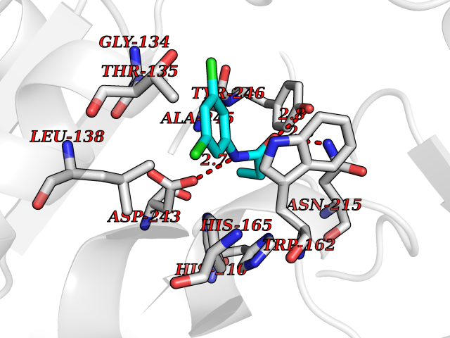 Target general information Gen name NQO1 Organism Homo sapiens (Human) Uniprot ID TTD ID Synonyms Qui reductase 1; QR1; Phylloquinone reductase; Phylloqui reductase; NMOR1; NAD(P)H:quinone oxidoreductase 1; NAD(P)H dehydrogenase [quinone] 1; Menadione reductase; DTD; DT-diaphorase 1; DT-diaphorase Protein family NAD(P)H dehydrogenase (quinone) family Biochemical class NADH/NADPH oxidoreductase Function The enzyme apparently serves as a quinone reductase in connection with conjugation reactions of hydroquinons involved in detoxification pathways as well as in biosynthetic processes such as the vitamin K-dependent gamma-carboxylation of glutamate residues in prothrombin synthesis. Related diseases Congenital disorder of glycosylation 2D (CDG2D) [MIM:607091]: A multisystem disorder caused by a defect in glycoprotein biosynthesis and characterized by under-glycosylated serum glycoproteins. Congenital disorders of glycosylation result in a wide variety of clinical features, such as defects in the nervous system development, psychomotor retardation, dysmorphic features, hypotonia, coagulation disorders, and immunodeficiency. The broad spectrum of features reflects the critical role of N-glycoproteins during embryonic development, differentiation, and maintenance of cell functions. {ECO:0000269|PubMed:11901181, ECO:0000269|PubMed:30653653, ECO:0000269|PubMed:32157688}. The disease is caused by variants affecting the gene represented in this entry.; DISEASE: Combined low LDL and fibrinogen (CLDLFIB) [MIM:620364]: An autosomal recessive condition characterized by low plasma LDL-cholesterol and fibrinogen levels, and associated with a decreased risk of coronary artery disease. {ECO:0000269|PubMed:34855475}. Disease susceptibility may be associated with variants affecting the gene represented in this entry. Drugs (DrugBank ID) DB07385; DB02395; DB03626; DB14001; DB04392; DB09061; DB00958; DB02633; DB00515; DB14002; DB00266; DB00997; DB01927; DB02400; DB03147; DB00170; DB00526; DB00252; DB04090; DB00163 Interacts with P07902; Q9UK53; P15559 EC number EC 1.6.5.2 Uniprot keywords 3D-structure; Alternative splicing; Cytoplasm; FAD; Flavoprotein; Isopeptide bond; NAD; NADP; Oxidoreductase; Phosphoprotein; Proteomics identification; Reference proteome; Ubl conjugation Protein physicochemical properties Chain ID A,B,C,D Molecular weight (Da) 61454.1 Length 546 Aromaticity 0.12 Instability index 36.74 Isoelectric point 8.99 Charge (pH=7) 8.99 3D Binding mode Sequence VGRRALIVLAHSERTSFNYAMKEAAAAALKKKGWEVVESDLYAMNFNPIISRKDITGKLKDPANFQYPAESVLAYKEGHLSPDIVAEQKKLEAADLVIFQFPLQWFGVPAILKGWFERVFIGEFAYTYAAMYDKGPFRSKKAVLSITTGGSGSMYSLQGIHGDMNVILWPIQSGILHFCGFQVLEPQLTYSIGHTPADARIQILEGWKKRLENIWDETPLYFAPSSLFDLNFQAGFLMKKEVQDEEKNKKFGLSVGHHLGKSIPTDNQIKARKVGRRALIVLAHSERTSFNYAMKEAAAAALKKKGWEVVESDLYAMNFNPIISRKDITGKLKDPANFQYPAESVLAYKEGHLSPDIVAEQKKLEAADLVIFQFPLQWFGVPAILKGWFERVFIGEFAYTYAAMYDKGPFRSKKAVLSITTGGSGSMYSLQGIHGDMNVILWPIQSGILHFCGFQVLEPQLTYSIGHTPADARIQILEGWKKRLENIWDETPLYFAPSSLFDLNFQAGFLMKKEVQDEEKNKKFGLSVGHHLGKSIPTDNQIKARK Hydrogen bonds contact Hydrophobic contact | ||||