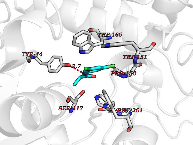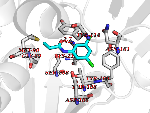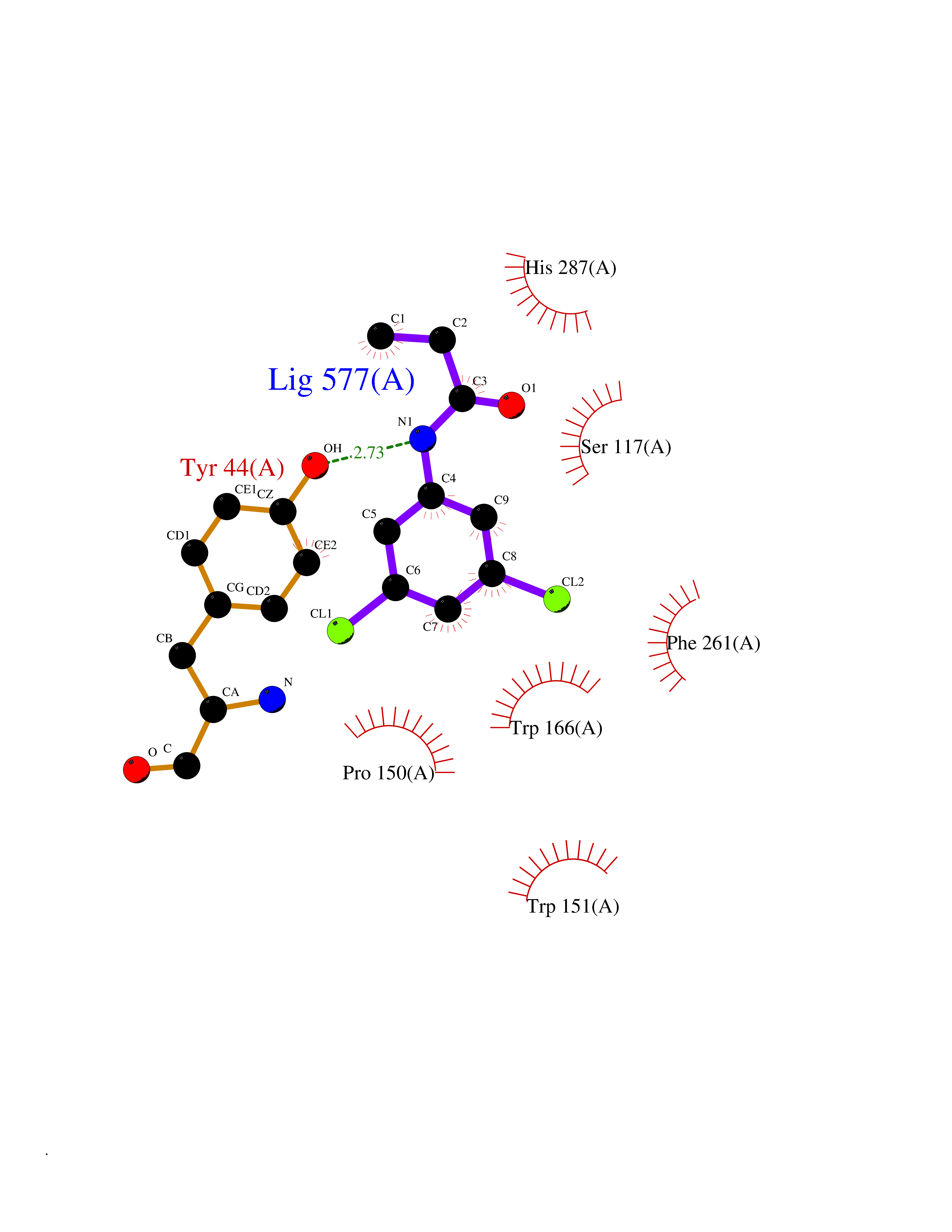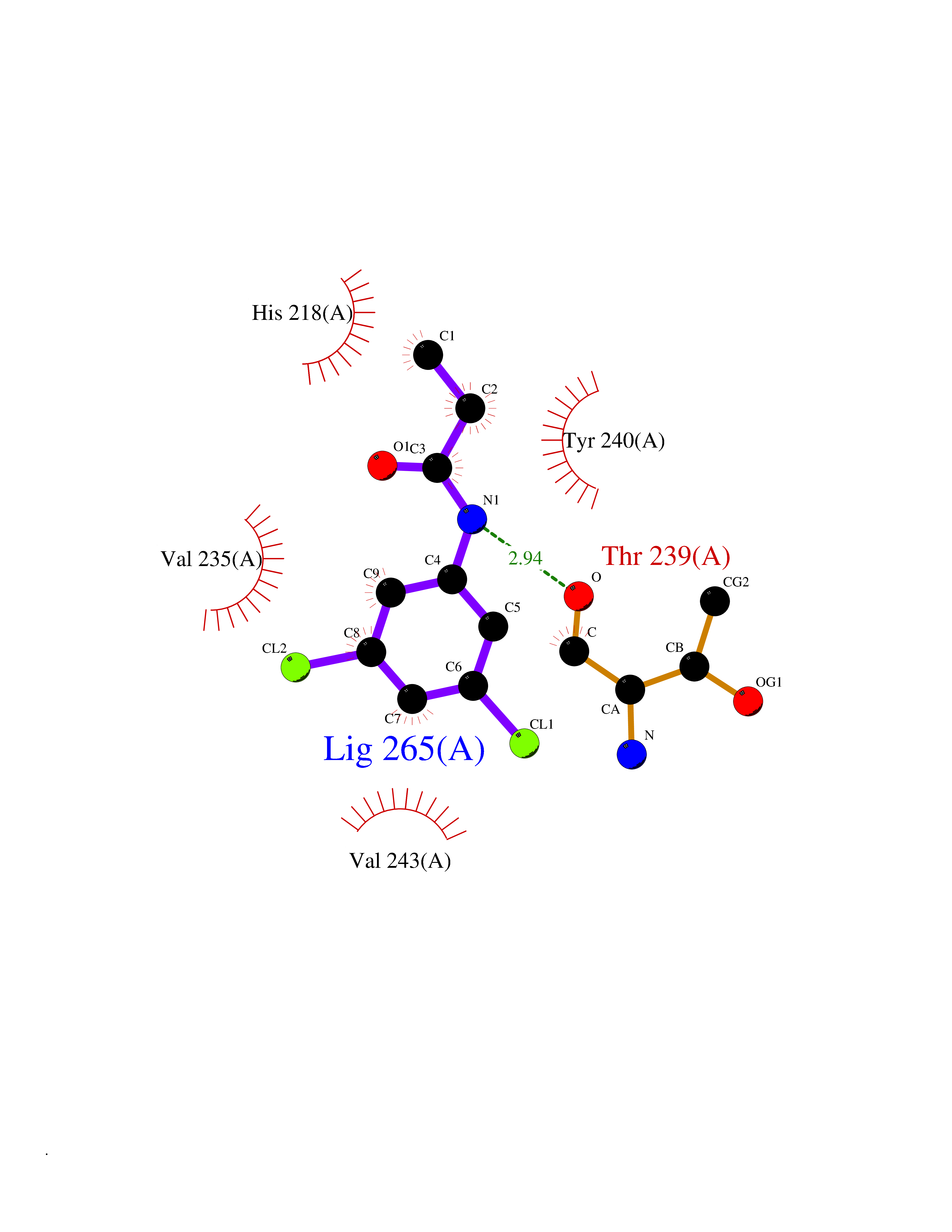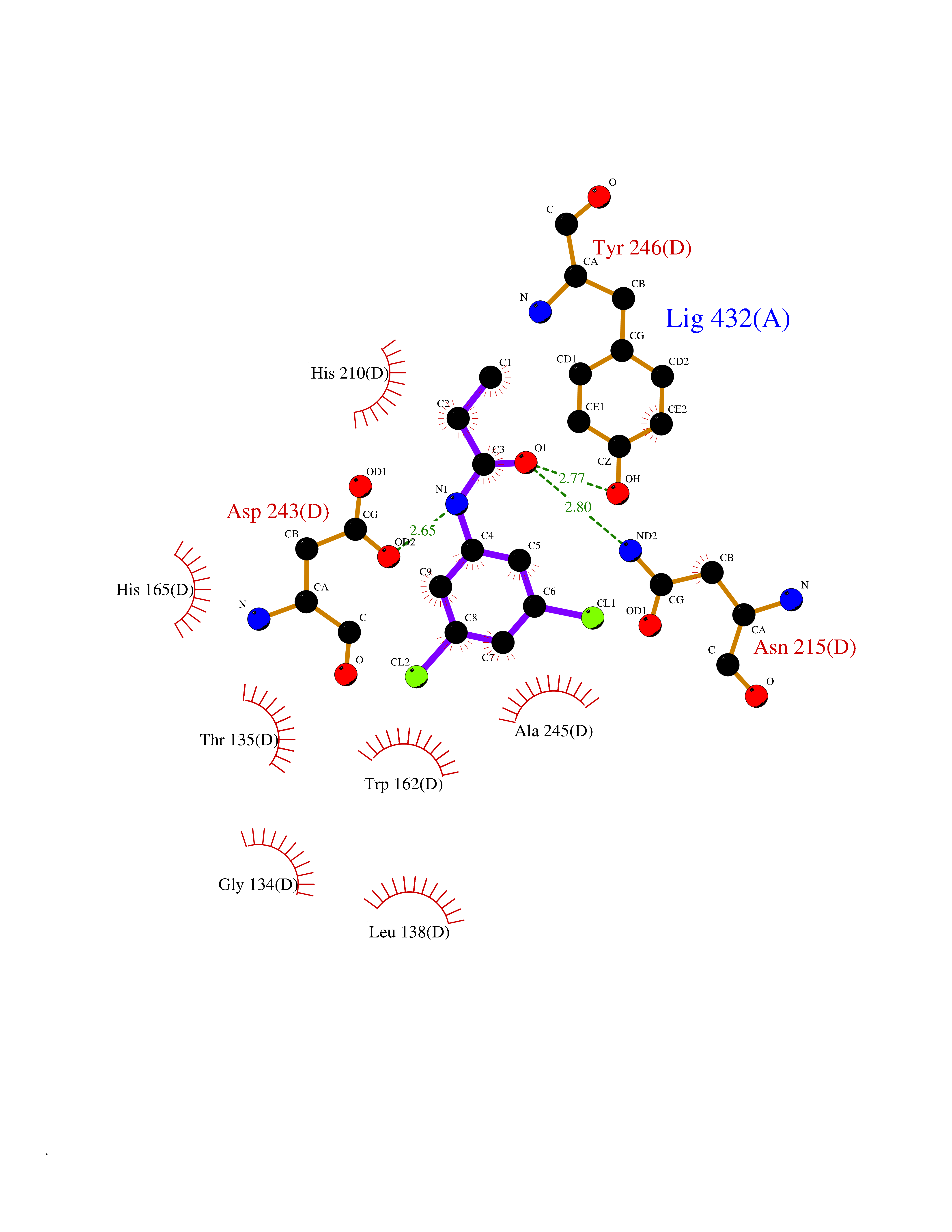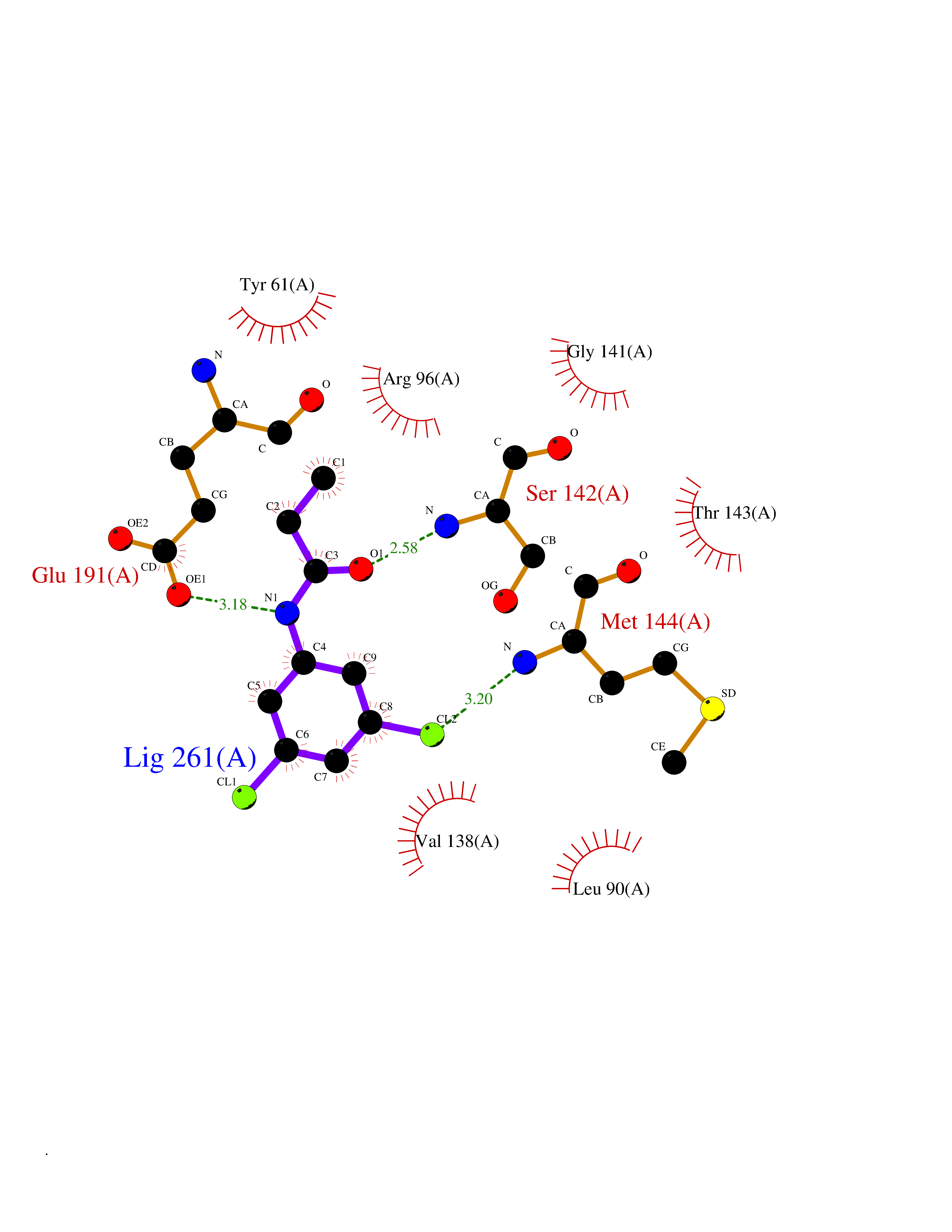 Target general information Gen name cocE Organism Rhodococcus sp. (strain MB1 Bresler) Uniprot ID TTD ID NA Synonyms NA Protein family CocE/NonD hydrolase family Biochemical class Hydrolase Function Carboxylic ester hydrolase activity.Dipeptidyl-peptidase activity. Related diseases Thiamine metabolism dysfunction syndrome 5, episodic encephalopathy type (THMD5) [MIM:614458]: An autosomal recessive metabolic disorder due to an inborn error of thiamine metabolism. The phenotype is highly variable, but in general, affected individuals have onset in early childhood of acute encephalopathic episodes associated with increased serum and CSF lactate. These episodes result in progressive neurologic dysfunction manifest as gait disturbances, ataxia, dystonia, and spasticity, which in some cases may result in loss of ability to walk. Cognitive function is usually preserved, although mildly delayed development has been reported. These episodes are usually associated with infection and metabolic decompensation. Some patients may have recovery of some neurologic deficits. {ECO:0000269|PubMed:22152682}. The disease is caused by variants affecting the gene represented in this entry. Drugs (DrugBank ID) DB03793; DB01795 Interacts with NA EC number 3.1.1.84 Uniprot keywords 3D-structure; Cytoplasm; Direct protein sequencing; Hydrolase; Serine esterase Protein physicochemical properties Chain ID A Molecular weight (Da) 62127.9 Length 574 Aromaticity 0.09 Instability index 26.62 Isoelectric point 4.56 Charge (pH=7) -33.24 3D Binding mode Sequence VDGNYSVASNVMVPMRDGVRLAVDLYRPDADGPVPVLLVRNPYDKFDVFAWSTQSTNWLEFVRDGYAVVIQDTRGLFASEGEFVPHVDDEADAEDTLSWILEQAWCDGNVGMFGVSYLGVTQWQAAVSGVGGLKAIAPSMASADLYRAPWYGPGGALSVEALLGWSALIGTGLITSRSDARPEDAADFVQLAAILNDVAGAASVTPLAEQPLLGRLIPWVIDQVVDHPDNDESWQSISLFERLGGLATPALITAGWYDGFVGESLRTFVAVKDNADARLVVGPWSHSNLTGRNADRKFGIAATYPIQEATTMHKAFFDRHLRGETDALAGVPKVRLFVMGIDEWRDETDWPLPDTAYTPFYLGGSGAANTSTGGGTLSTSISGTESADTYLYDPADPVPSLGGTLLFHNGDNGPADQRPIHDRDDVLCYSTEVLTDPVEVTGTVSARLFVSSSAVDTDFTAKLVDVFPDGRAIALCDGIVRMRYRETLVNPTLIEAGEIYEVAIDMLATSNVFLPGHRIMVQVSSSNFPKYDRNSNTGGVIAREQLEEMCTAVNRIHRGPEHPSHIVLPIIKRK Hydrogen bonds contact Hydrophobic contact | ||||