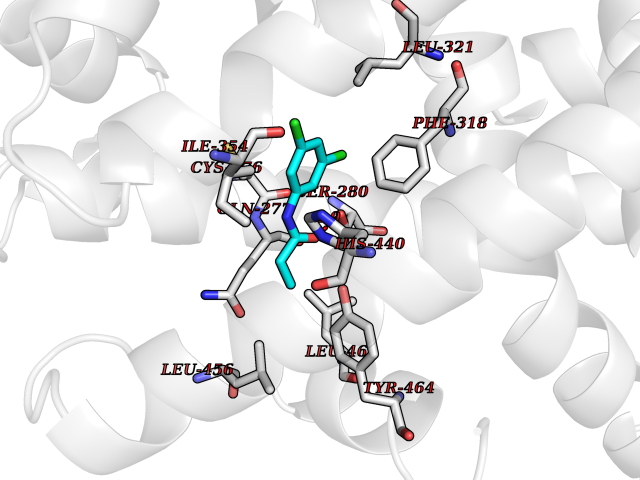 Target general information Gen name CHRNA3 Organism Homo sapiens (Human) Uniprot ID TTD ID NA Synonyms NACHRA3 Protein family Ligand-gated ion channel (TC 1.A.9) family, Acetylcholine receptor (TC 1.A.9.1) subfamily, Alpha-3/CHRNA3 sub-subfamily Biochemical class Acetylcholine binding protein Function Acetylcholine binding.Acetylcholine-gated cation-selective channel activity.Acetylcholine receptor activity.Ligand-gated ion channel activity.Serotonin-gated cation-selective channel activity. Related diseases Bladder dysfunction, autonomic, with impaired pupillary reflex and secondary CAKUT (BAIPRCK) [MIM:191800]: An autosomal recessive disease characterized by impaired innervation and autonomic dysfunction of the urinary bladder, hydronephrosis, vesicoureteral reflux, small kidneys, recurrent urinary tract infections, and progressive renal insufficiency. Additional autonomic features are impaired pupillary reflex and orthostatic hypotension. The disease manifests in utero or early childhood. {ECO:0000269|PubMed:31708116}. The disease is caused by variants affecting the gene represented in this entry. Drugs (DrugBank ID) DB00915; DB01156; DB00237; DB00565; DB09028; DB00514; DB07720; DB00898; DB00472; DB05710; DB01227; DB00848; DB00333; DB00184; DB01090; DB00202; DB01273 Interacts with NA EC number NA Uniprot keywords 3D-structure; Alternative splicing; Cell membrane; Disease variant; Disulfide bond; Endoplasmic reticulum; Glycoprotein; Golgi apparatus; Ion channel; Ion transport; Ligand-gated ion channel; Membrane; Phosphoprotein; Postsynaptic cell membrane; Proteomics identification; Receptor; Reference proteome; Signal; Synapse; Transmembrane; Transmembrane helix; Transport; Ubl conjugation Protein physicochemical properties Chain ID A,B,C,D,E Molecular weight (Da) 46391.5 Length 408 Aromaticity 0.12 Instability index 30.23 Isoelectric point 4.6 Charge (pH=7) -22.73 3D Binding mode Sequence LHSQANLMRLKSDLFYPGPTKDDPLTVTLGFTLQDIVKADSSTNEVDLVYWEQQRWKLNSLMWDPNEYGNITDFRTSAADIWTPDITAYSSTRPVQVLSPQIAVVTHDGSVMFIPAQRLSFMCDPTGVDSEEGATCAVKFGSWVYSGFEIDLKTDTDQVDLSSYYASSKYEILSATQYKHDIKYNCCEEIYPDVVLVVKFRERRLHSQANLMRLKSDLFNRYPGPTKDDPLTVTLGFTLQDIVKADSSTNEVDLVYWEQQRWKLNSLMWDPNEYGNITDFRTSAADIWTPDITAYSSTRPVQVLSPQIAVVTHDGSVMFIPAQRLSFMCDPTGVDSEEGATCAVKFGSWVYSGFEIDLKTDTDQVDLSSYYASSKYEILSATQYKHDIKYNCCEEIYPDVVLVVKFRE Hydrogen bonds contact Hydrophobic contact | ||||