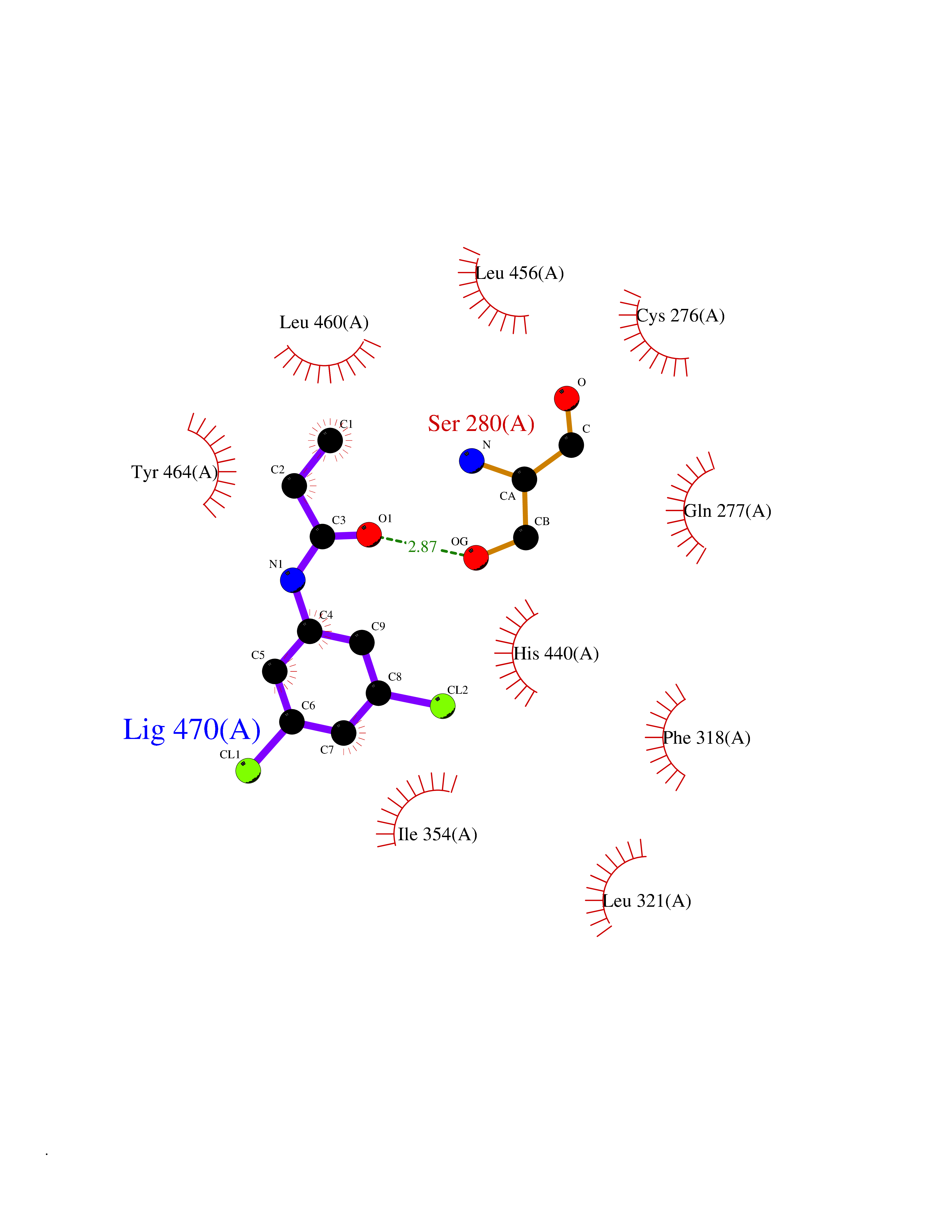 Target general information Gen name MGLL Organism Homo sapiens (Human) Uniprot ID TTD ID Synonyms Monoacylglycerol lipase; MGL; Lysophospholipaselike; Lysophospholipase-like; Lysophospholipase homolog; HUK5; HU-K5 Protein family AB hydrolase superfamily, Monoacylglycerol lipase family Biochemical class Carboxylic ester hydrolase Function Hydrolyzes the endocannabinoid 2-arachidonoylglycerol, and thereby contributes to the regulation of endocannabinoid signaling, nociperception and perception of pain. Regulates the levels of fatty acids that serve as signaling molecules and promote cancer cell migration, invasion and tumor growth. Converts monoacylglycerides to free fatty acids and glycerol. Related diseases Systemic lupus erythematosus 9 (SLEB9) [MIM:610927]: A chronic, relapsing, inflammatory, and often febrile multisystemic disorder of connective tissue, characterized principally by involvement of the skin, joints, kidneys and serosal membranes. It is of unknown etiology, but is thought to represent a failure of the regulatory mechanisms of the autoimmune system. The disease is marked by a wide range of system dysfunctions, an elevated erythrocyte sedimentation rate, and the formation of LE cells in the blood or bone marrow. {ECO:0000269|PubMed:17360460}. Disease susceptibility is associated with variants affecting the gene represented in this entry.; DISEASE: Immunodeficiency, common variable, 7 (CVID7) [MIM:614699]: A primary immunodeficiency characterized by antibody deficiency, hypogammaglobulinemia, recurrent bacterial infections and an inability to mount an antibody response to antigen. The defect results from a failure of B-cell differentiation and impaired secretion of immunoglobulins; the numbers of circulating B-cells is usually in the normal range, but can be low. {ECO:0000269|PubMed:22035880}. The disease is caused by variants affecting the gene represented in this entry. Drugs (DrugBank ID) NA Interacts with P07550; P37235 EC number EC 3.1.1.23 Uniprot keywords 3D-structure; Alternative splicing; Cytoplasm; Fatty acid biosynthesis; Fatty acid metabolism; Hydrolase; Lipid biosynthesis; Lipid degradation; Lipid metabolism; Membrane; Nitration; Phosphoprotein; Proteomics identification; Reference proteome; Serine esterase Protein physicochemical properties Chain ID A Molecular weight (Da) 31808.4 Length 289 Aromaticity 0.08 Instability index 29.7 Isoelectric point 6.73 Charge (pH=7) -0.91 3D Binding mode Sequence PRRTPQSIPYQDLPHLVNADGQYLFCRYWAPTGTPKALIFVSHGAGEHSGRYEELARMLMGLDLLVFAHDHVGHGQSEGERMVVSDFHVFVRDVLQHVDSMQKDYPGLPVFLLGHSMGGAIAILTAAERPGHFAGMVLISPLVLANPESATTFKVLAAKVLNSVLPNLSSGPIDSSVLSRNKTEVDIYNSDPLICRAGLKVCFGIQLLNAVSRVERALPKLTVPFLLLQGSADRLCDSKGAYLLMELAKSQDKTLKIYEGAYHVLHKELPEVTNSVFHEINMWVSQRTA Hydrogen bonds contact Hydrophobic contact | ||||