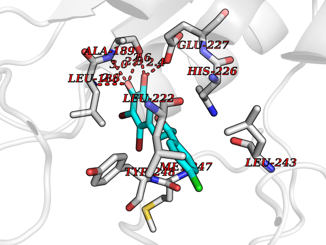 Target general information Gen name RRM1 Organism Homo sapiens (Human) Uniprot ID TTD ID NA Synonyms RR1 Protein family Ribonucleoside diphosphate reductase large chain family Biochemical class Oxidoreductase Function ATP binding.Identical protein binding.Ribonucleoside-diphosphate reductase activity, thioredoxin disulfide as acceptor. Related diseases Progressive external ophthalmoplegia with mitochondrial DNA deletions, autosomal recessive 6 (PEOB6) [MIM:620647]: A form of progressive external ophthalmoplegia, a mitochondrial myopathy characterized by progressive paralysis of the levator palpebrae, orbicularis oculi, and extraocular muscles. Ragged red fibers are seen on muscle biopsy. {ECO:0000269|PubMed:35617047}. The disease may be caused by variants affecting the gene represented in this entry. Drugs (DrugBank ID) DB00242; DB00631; DB01073; DB05420; DB00441; DB01005; DB05003; DB01280; DB06433 Interacts with P23921; P31350; Q8N720 EC number 1.17.4.1 Uniprot keywords 3D-structure; Acetylation; Allosteric enzyme; ATP-binding; Cytoplasm; Deoxyribonucleotide synthesis; Disulfide bond; Nucleotide-binding; Oxidoreductase; Phosphoprotein; Primary mitochondrial disease; Progressive external ophthalmoplegia; Proteomics identification; Reference proteome Protein physicochemical properties Chain ID A,B Molecular weight (Da) 147968 Length 1301 Aromaticity 0.1 Instability index 43.58 Isoelectric point 7.14 Charge (pH=7) 0.86 3D Binding mode Sequence LAARIAVSNLHKETKKVFSDVMEDLYNYINPHNGKHSPMVAKSTLDIVLANKDRLNSAIIYDRDFSYNYFGFKTLERSYLLKINGKVAERPQHMLMRVSVGIHKEDIDAAIETYNLLSERWFTHASPTLFNAGTNRPQLSSCFLLSMKDDSIEGIYDTLKQCALISKSAGGIGVAVSCIRATGSYIAGTNGNSNGLVPMLRVYNNTARYVDQGGNKRPGAFAIYLEPWHLDIFEFLDLKKNTGKEEQRARDLFFALWIPDLFMKRVETNQDWSLMCPNECPGLDEVWGEEFEKLYASYEKQGRVRKVVKAQQLWYAIIESQTETGTPYMLYKDSCNRKSNQQNLGTIKCSNLCTEIVEYTSKDEVAVCNLASLALNMYVTSEHTYDFKKLAEVTKVVVRNLNKIIDINYYPVPEACLSNKRHRPIGIGVQGLADAFILMRYPFESAEAQLLNKQIFETIYYGALEASCDLAKEQGPYETYEGSPVSKGILQYDMWNVTPTDLWDWKVLKEKIAKYGIRNSLLIAPMPTASTAQILGNNESIEPYTSNIYQIVNPHLLKDLTERGLGSIQSIPEIPDDLKQLYKTVWEISQKTVLKMAAERGAFIDQSQSLNIHIAEPNYGKLTSMHFYGWKQGLKTGMYYLRTRAARIAVSNLHKETKKVFSDVMEDLYNYINPHNGKHSPMVAKSTLDIVLANKDRLNSAIIYDRDFSYNYFGFKTLERSYLLKINGKVAERPQHMLMRVSVGIHKEDIDAAIETYNLLSERWFTHASPTLFNAGTNRPQLSSCFLLSMKDDSIEGIYDTLKQCALISKSAGGIGVAVSCIRATGSYIAGTNGNSNGLVPMLRVYNNTARYVDQGGNKRPGAFAIYLEPWHLDIFEFLDLKKNTGKEEQRARDLFFALWIPDLFMKRVETNQDWSLMCPNECPGLDEVWGEEFEKLYASYEKQGRVRKVVKAQQLWYAIIESQTETGTPYMLYKDSCNRKSNQQNLGTIKCSNLCTEIVEYTSKDEVAVCNLASLALNMYVTSEHTYDFKKLAEVTKVVVRNLNKIIDINYYPVPEACLSNKRHRPIGIGVQGLADAFILMRYPFESAEAQLLNKQIFETIYYGALEASCDLAKEQGPYETYEGSPVSKGILQYDMWNVTPTDLWDWKVLKEKIAKYGIRNSLLIAPMPTASTAQILGNNESIEPYTSNIYQIVNPHLLKDLTERGLWEEMKNQIIACNGSIQSIPEIPDDLKQLYKTVWEISQKTVLKMAAERGAFIDQSQSLNIHIAEPNYGKLTSMHFYGWKQGLKTGMYYLRTRAH Hydrogen bonds contact Hydrophobic contact | ||||