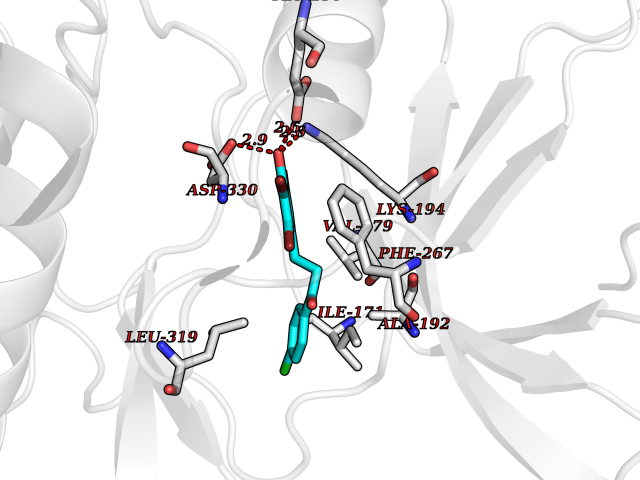 Target general information Gen name Malaria LACZ Organism Plasmodium falciparum (isolate FCR-3 / Gambia) Uniprot ID TTD ID Synonyms LACZ of Plasmodium falciparum (isolate FCR-3 / Gambia); Hypoxanthine phosphoribosyltransferase; HPRT; HGPRTase; HGPRT of Plasmodium falciparum (isolate FCR-3 / Gambia); Guanine phosphoribosyltransfera Protein family Purine/pyrimidine phosphoribosyltransferase family Biochemical class Pentosyltransferase Function Converts guanine to guanosine monophosphate, and hypoxanthine to inosine monophosphate. Transfers the 5- phosphoribosyl group from 5-phosphoribosylpyrophosphate onto the purine. Plays a central role in the generation of purine nucleotides through the purine salvage pathway. Related diseases Intellectual developmental disorder with dysmorphic facies and ptosis (IDDDFP) [MIM:617333]: An autosomal dominant neurodevelopmental disorder characterized by delayed psychomotor development, intellectual disability, delayed language, and facial dysmorphisms, most notably ptosis. Additional features may include poor growth, hypotonia, and seizures. {ECO:0000269|PubMed:27939639, ECO:0000269|PubMed:27939640}. The disease is caused by variants affecting the gene represented in this entry. Drugs (DrugBank ID) DB02075; DB11638 Interacts with NA EC number NA Uniprot keywords 3D-structure; Cytoplasm; Glycosyltransferase; Magnesium; Metal-binding; Nucleotide-binding; Purine salvage; Transferase Protein physicochemical properties Chain ID A Molecular weight (Da) 26581.3 Length 233 Aromaticity 0.12 Instability index 29.77 Isoelectric point 7.92 Charge (pH=7) 1.69 3D Binding mode Sequence PRGSHMPIPNNPGAGENAFDPVFVNDDDGYDLDSFMIPAHYKKYLTKVLVPNGVIKNRIEKLAYDIKKVYNNEEFHILCLLKGSRGFFTALLKHLSRIHNYSAVETSKPLFGEHYVRVKSYCNDQSTGTLEIVSEDLSCLKGKHVLIVEDIIDTGKTLVKFCEYLKKFEIKTVAIACLFIKRTPLWNGFKADFVGFSIPDHFVVGYSLDYNEIFRDLDHCCLVNDEGKKKYKA Hydrogen bonds contact Hydrophobic contact | ||||