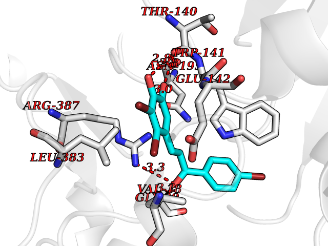 Target general information Gen name GOT1 Organism Homo sapiens (Human) Uniprot ID TTD ID Synonyms Glutamate oxaloacetate transaminase-1; GOT1 Protein family Class-I pyridoxal-phosphate-dependent aminotransferase family Biochemical class Transaminase Function Biosynthesis of L-glutamate from L-aspartate or L- cysteine. Important regulator of levels of glutamate, the major excitatory neurotransmitter of the vertebrate central nervous system. Acts as a scavenger of glutamate in brain neuroprotection. The aspartate aminotransferase activity is involved in hepatic glucose synthesis during development and in adipocyte glyceroneogenesis. Using L-cysteine as substrate, regulates levels of mercaptopyruvate, an important source of hydrogen sulfide. Mercaptopyruvate is converted into H(2)S via the action of 3- mercaptopyruvate sulfurtransferase (3MST). Hydrogen sulfide is an important synaptic modulator and neuroprotectant in the brain. Related diseases Multiple fibroadenomas of the breast (MFAB) [MIM:615554]: A benign breast disease marked by lobuloalveolar growth with abnormally high proliferation of the epithelium, and characterized by the presence of more than 3 fibroadenomas in one breast. Fibroadenomas are adenomas containing fibrous tissue. {ECO:0000269|PubMed:18779591}. The disease is caused by variants affecting the gene represented in this entry.; DISEASE: Hyperprolactinemia (HPRL) [MIM:615555]: A disorder characterized by increased levels of prolactin in the blood not associated with gestation or the puerperium. HPRL may result in infertility, hypogonadism, and galactorrhea. {ECO:0000269|PubMed:24195502}. The disease is caused by variants affecting the gene represented in this entry. Drugs (DrugBank ID) DB00210; DB00128; DB09130; DB00151; DB00142; DB04299; DB00114 Interacts with NA EC number EC 2.6.1.1 Uniprot keywords 3D-structure; Alternative splicing; Amino-acid biosynthesis; Aminotransferase; Cytoplasm; Direct protein sequencing; Phosphoprotein; Proteomics identification; Pyridoxal phosphate; Reference proteome; Transferase Protein physicochemical properties Chain ID A,B,C,D Molecular weight (Da) 51732.3 Length 462 Aromaticity 0.1 Instability index 31.83 Isoelectric point 7.48 Charge (pH=7) 0.86 3D Binding mode Sequence PVLVFKLTVLPVVKKVEQKIANDNSLNHEYLPILGLAEFRVQSLGGTGALRIGADEKIVRITWSNPMQPVLVFKLTADFREDPDPRKVNLGVGAYRTDDCHPWVLPVVKKVEQKIANDNSLNHEYLPILGLAEFRSCASRLALGDDSPALKEKRVGGVQSLGGTGALRIGADFLARWYNGTNNKNTPVYVSSPTWENHNAVFSAAGFKDIRSYRYWDAEKRGLDLQGFLNDLENAPEFSIVVLHACAHNPTGIDPTPEQWKQIASVMKHRFLFPFFDSAYQGFASGNLERDAWAIRYFVSEGFEFFCAQSFSKNFGLYNERVGNLTVVGKEPESILQVLSQMEKIVRITWSNPPAQGARIVASTLSNPELFEEWTGNVKTMADRILTMRSELRARLEALKTPGTWNHITDQIGMFSFTGLNPKQVEYLVNEKHIYLLPSGRINVSGLTTKNLDYVATSIHEA Hydrogen bonds contact Hydrophobic contact | ||||