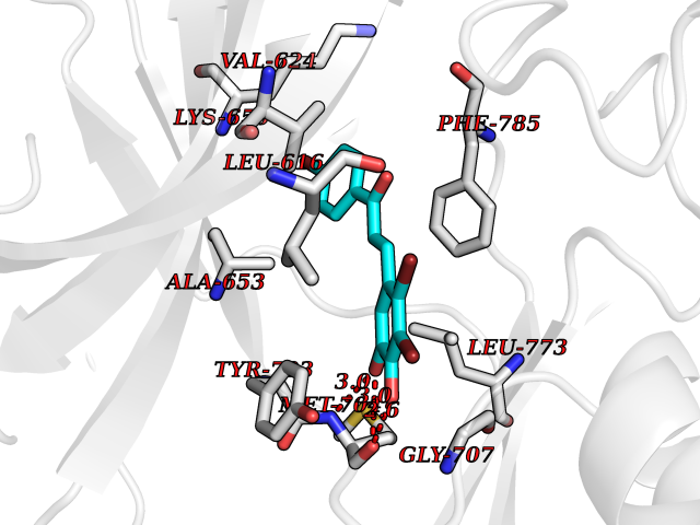 Target general information Gen name DDR1 Organism Homo sapiens (Human) Uniprot ID TTD ID Synonyms Tyrosine-protein kinase CAK; Tyrosine kinase DDR; TRKE; TRK E; RTK6; Protein-tyrosine kinase RTK-6; Protein-tyrosine kinase 3A; PTK3A; NTRK4; NEP; Mammary carcinoma kinase 10; MCK-10; HGK2; Epithelial Protein family Protein kinase superfamily, Tyr protein kinase family, Insulin receptor subfamily Biochemical class Kinase Function Collagen binding triggers a signaling pathway that involves SRC and leads to the activation of MAP kinases. Regulates remodeling of the extracellular matrix by up-regulation of the matrix metalloproteinases MMP2, MMP7 and MMP9, and thereby facilitates cell migration and wound healing. Required for normal blastocyst implantation during pregnancy, for normal mammary gland differentiation and normal lactation. Required for normal ear morphology and normal hearing. Promotes smooth muscle cell migration, and thereby contributes to arterial wound healing. Also plays a role in tumor cell invasion. Phosphorylates PTPN11. Tyrosine kinase that functions as cell surface receptor for fibrillar collagen and regulates cell attachment to the extracellular matrix, remodeling of the extracellular matrix, cell migration, differentiation, survival and cell proliferation. Related diseases Combined oxidative phosphorylation deficiency 33 (COXPD33) [MIM:617713]: An autosomal recessive disorder caused by multiple mitochondrial respiratory chain defects and impaired mitochondrial energy metabolism. Clinical manifestations are highly variable. Affected infants present with cardiomyopathy accompanied by multisystemic features involving liver, kidney, and brain. Death in infancy is observed in some patients. Children and adults present with myopathy and progressive external ophthalmoplegia. {ECO:0000269|PubMed:28942965}. The disease is caused by variants affecting the gene represented in this entry. Drugs (DrugBank ID) DB12010; DB00619; DB15822 Interacts with Q16832; O43639; Q06124; Q9UHD9 EC number EC 2.7.10.1 Uniprot keywords 3D-structure; Alternative splicing; ATP-binding; Calcium; Cell membrane; Direct protein sequencing; Disulfide bond; Glycoprotein; Kinase; Lactation; Membrane; Metal-binding; Nucleotide-binding; Phosphoprotein; Pregnancy; Proteomics identification; Receptor; Reference proteome; Secreted; Signal; Transferase; Transmembrane; Transmembrane helix; Tyrosine-protein kinase Protein physicochemical properties Chain ID A,B Molecular weight (Da) 34061.1 Length 297 Aromaticity 0.1 Instability index 42.8 Isoelectric point 6.32 Charge (pH=7) -2.01 3D Binding mode Sequence MPRVDFPRSRLRFKEKLGEGQFGEVHLCEVDSPQDLVSLDFPLNVRKGHPLLVAVKILRPDATKNARNDFLKEVKIMSRLKDPNIIRLLGVCVQDDPLCMITDYMENGDLNQFLSAHQLEDKGPTISYPMLLHVAAQIASGMRYLATLNFVHRDLATRNCLVGENFTIKIADFGMSRNLYAGDYYRAVLPIRWMAWECILMGKFTTASDVWAFGVTLWEVLMLCRAQPFGQLTDEQVIENAGEFFRDQGRQVYLSRPPACPQGLYELMLRCWSRESEQRPPFSQLHRFLAEDALNTV Hydrogen bonds contact Hydrophobic contact | ||||