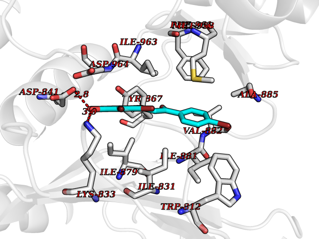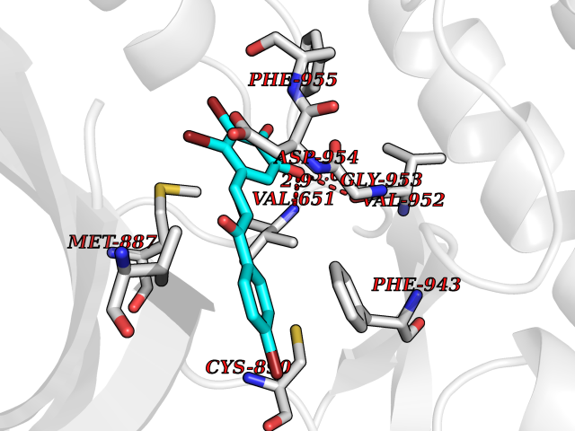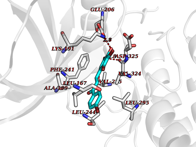 Target general information Gen name PIK3CG Organism Homo sapiens (Human) Uniprot ID TTD ID Synonyms p120-PI3K; p110gamma; Serine/threonine protein kinase PIK3CG; PtdIns-3-kinase subunit p110-gamma; PtdIns-3-kinase subunit gamma; PtdIns-3-kinase p110; Phosphoinositol-3 kinase; Phosphoinositide-3-kina Protein family PI3/PI4-kinase family Biochemical class Kinase Function Phosphoinositide-3-kinase (PI3K) that phosphorylates PtdIns(4,5)P2 (Phosphatidylinositol 4,5-bisphosphate) to generate phosphatidylinositol 3,4,5-trisphosphate (PIP3). PIP3 plays a key role by recruiting PH domain-containing proteins to the membrane, including AKT1 and PDPK1, activating signaling cascades involved in cell growth, survival, proliferation, motility and morphology. Links G-protein coupled receptor activation to PIP3 production. Involved in immune, inflammatory and allergic responses. Modulates leukocyte chemotaxis to inflammatory sites and in response to chemoattractant agents. May control leukocyte polarization and migration by regulating the spatial accumulation of PIP3 and by regulating the organization of F-actin formation and integrin-based adhesion at the leading edge. Controls motility of dendritic cells. Together with PIK3CD is involved in natural killer (NK) cell development and migration towards the sites of inflammation. Participates in T-lymphocyte migration. Regulates T-lymphocyte proliferation and cytokine production. Together with PIK3CD participates in T-lymphocyte development. Required for B-lymphocyte development and signaling. Together with PIK3CD participates in neutrophil respiratory burst. Together with PIK3CD is involved in neutrophil chemotaxis and extravasation. Together with PIK3CB promotes platelet aggregation and thrombosis. Regulates alpha-IIb/beta-3 integrins (ITGA2B/ ITGB3) adhesive function in platelets downstream of P2Y12 through a lipid kinase activity-independent mechanism. May have also a lipid kinase activity-dependent function in platelet aggregation. Involved in endothelial progenitor cell migration. Negative regulator of cardiac contractility. Modulates cardiac contractility by anchoring protein kinase A (PKA) and PDE3B activation, reducing cAMP levels. Regulates cardiac contractility also by promoting beta-adrenergic receptor internalization by binding to GRK2 and by non-muscle tropomyosin phosphorylation. Also has serine/threonine protein kinase activity: both lipid and protein kinase activities are required for beta-adrenergic receptor endocytosis. May also have a scaffolding role in modulating cardiac contractility. Contributes to cardiac hypertrophy under pathological stress. Through simultaneous binding of PDE3B to RAPGEF3 and PIK3R6 is assembled in a signaling complex in which the PI3K gamma complex is activated by RAPGEF3 and which is involved in angiogenesis. Related diseases Immunodeficiency 97 with autoinflammation (IMD97) [MIM:619802]: An autosomal recessive disorder with variable features. Affected individuals have childhood-onset antibody defects, cytopenias, and T lymphocytic pneumonitis and colitis. Some patients may have features of hemophagocytic lymphohistiocytosis. {ECO:0000269|PubMed:31554793, ECO:0000269|PubMed:33054089}. The disease is caused by variants affecting the gene represented in this entry. Drugs (DrugBank ID) DB07503; DB08300; DB06831; DB07335; DB07073; DB04769; DB12483; DB11952; DB12010; DB02656; DB02375; DB06836; DB04216; DB02010; DB05552; DB08059; DB05241 Interacts with P05067; Q13370; P48736; O02696; Q3U6Q4; P68404-2 EC number EC 2.7.1.153 Uniprot keywords 3D-structure; Angiogenesis; ATP-binding; Cell membrane; Chemotaxis; Cytoplasm; Disease variant; Endocytosis; Immunity; Inflammatory response; Kinase; Lipid metabolism; Membrane; Nucleotide-binding; Phosphoprotein; Proteomics identification; Reference proteome; Serine/threonine-protein kinase; Transferase Protein physicochemical properties Chain ID A Molecular weight (Da) 94934.7 Length 823 Aromaticity 0.1 Instability index 41.86 Isoelectric point 6.23 Charge (pH=7) -8.39 3D Binding mode Sequence SEESQAFQRQLTALIGYDVTDVSNVHDDELEFTRRGLVTPRMAEVASRDPKLYAMHPWVTSKPLPEYLWKKIANNCIFIVIHRSTTSQTIKVSPDDTPGAILQSFFTKMDFVLRVCGRDEYLVGETPIKNFQWVRHCLKNGEEIHVVLDTPPDPALDEVRKEEWCDRKFRVKIRGIDIPVLDLTVFVEANIQHGQQVLCQRRTSPKPFTEEVLWNVWLEFSIKIKDLPKGALLNLQIYCQLLYYVNLLLIDHRFLLRRGEYVLHMWQISGFNADKLTSATNPDKENSMSISILLDNHPIAAEMPNQLRKQLEAIIATDPLNPLTAEDKELLWHFRYESLKHPKAYPKLFSSVKWGQQEIVAKTYQLLARREVWDQSALDVGLTMQLLDCNFSDENVRAIAVQKLESLEDDDVLHYLLQLVQAVKFEPYHDSALARFLLKRGLRNKRIGHFLFWFLRSEIAQSRHYQQRFAVILEAYLRGCGTAMLHDFTQQVQVIEMLQKVTLDIKSLSAEKYDVSSQVISQLKQKLENLQNSQLPESFRVPYDPGLKAGALAIEKCKVMASKKKPLWLEFKCADPTALSNETIGIIFKHGDDLRQDMLILQILRIMESIWETESLDLCLLPYGCISTGDKIGMIEIVKDATTIAKIQTGAFKDEVLNHWLKEKSPTEEKFQAAVERFVYSCAGYCVATFVLGIGDRHNDNIMITETGNLFHIDFGHIERVPFVLTPDFLFVMGTSGKKTSPHFQKFQDICVKAYLALRHHTNLLIILFSMMLMTGMPDIEYIRDALTVGKNEEDAKKYFLDQIEVCRDKGWTVQFNWFLHLV Hydrogen bonds contact Hydrophobic contact | ||||