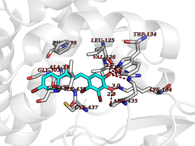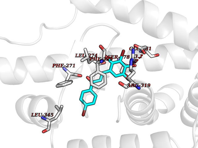 Target general information Gen name CYP46A1 Organism Homo sapiens (Human) Uniprot ID TTD ID Synonyms Cytochrome P450 46A1; CYP46; Cholesterol 24S-hydroxylase; Cholesterol 24-monooxygenase; CH24H Protein family Cytochrome P450 family Biochemical class Paired donor oxygen oxidoreductase Function Primarily catalyzes the hydroxylation (with S stereochemistry) at C-24 of cholesterol side chain, triggering cholesterol diffusion out of neurons and its further degradation. By promoting constant cholesterol elimination in neurons, may activate the mevalonate pathway and coordinate the synthesis of new cholesterol and nonsterol isoprenoids involved in synaptic activity and learning. Further hydroxylates cholesterol derivatives and hormone steroids on both the ring and side chain of these molecules, converting them into active oxysterols involved in lipid signaling and biosynthesis. Acts as an epoxidase converting cholesta-5,24-dien-3beta-ol/desmosterol into (24S),25-epoxycholesterol, an abundant lipid ligand of nuclear NR1H2 and NR1H3 receptors shown to promote neurogenesis in developing brain. May also catalyze the oxidative metabolism of xenobiotics, such as clotrimazole. P450 monooxygenase that plays a major role in cholesterol homeostasis in the brain. Related diseases Spinocerebellar ataxia, autosomal recessive, with axonal neuropathy 1 (SCAN1) [MIM:607250]: A form of spinocerebellar ataxia, a clinically and genetically heterogeneous group of cerebellar disorders. Patients show progressive incoordination of gait and often poor coordination of hands, speech and eye movements, due to degeneration of the cerebellum with variable involvement of the brainstem and spinal cord. SCAN1 is an autosomal recessive cerebellar ataxia (ARCA) associated with peripheral axonal motor and sensory neuropathy, distal muscular atrophy, pes cavus and steppage gait as seen in Charcot-Marie-Tooth neuropathy. All affected individuals have normal intelligence. {ECO:0000269|PubMed:12244316, ECO:0000269|PubMed:15647511, ECO:0000269|PubMed:15920477, ECO:0000269|PubMed:16141202, ECO:0000269|PubMed:17948061}. The disease is caused by variants affecting the gene represented in this entry. Drugs (DrugBank ID) NA Interacts with NA EC number EC 1.14.14.25 Uniprot keywords 3D-structure; Alternative splicing; Cell projection; Cholesterol metabolism; Endoplasmic reticulum; Heme; Iron; Lipid metabolism; Membrane; Metal-binding; Microsome; Monooxygenase; Oxidoreductase; Proteomics identification; Reference proteome; Steroid metabolism; Sterol metabolism; Synapse; Transmembrane; Transmembrane helix Protein physicochemical properties Chain ID A Molecular weight (Da) 48977 Length 427 Aromaticity 0.1 Instability index 49.59 Isoelectric point 9.04 Charge (pH=7) 6.25 3D Binding mode Sequence RVLQDVFLDWAKKYGPVVRVNVFHKTSVIVTSPESVKKFLMSTKYNKDSKMYRALQTVFGERLFGQGLVSECNYERWHKQRRVIDLAFSRSSLVSLMETFNEKAEQLVEILEAKADGQTPVSMQDMLTYTAMDILAKAAFGMETSMLLGAQKPLSQAVKLMLEGITASRNTKRKQLREVRESIRFLRQVGRDWVQRRREALKRGEEVPADILTQILKAEEGAQDDEGLLDNFVTFFIAGHETSANHLAFTVMELSRQPEIVARLQAEVDEVIGSKRYLDFEDLGRLQYLSQVLKESLRLYPPAWGTFRLLEEETLIDGVRVPGNTPLLFSTYVMGRMDTYFEDPLTFNPDRFGPGAPKPRFTYFPFSLGHRSCIGQQFAQMEVKVVMAKLLQRLEFRLVPGQRFGLQEQATLKPLDPVLCTLRPRGW Hydrogen bonds contact Hydrophobic contact | ||||