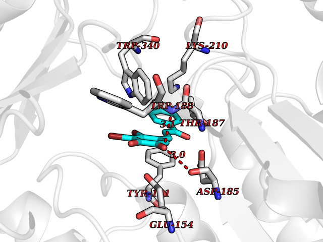 Target general information Gen name PNP Organism Homo sapiens (Human) Uniprot ID TTD ID Synonyms PNP; Inosine phosphorylase Protein family PNP/MTAP phosphorylase family Biochemical class Pentosyltransferase Function The purine nucleoside phosphorylases catalyze the phosphorolytic breakdown of the N-glycosidic bond in the beta- (deoxy)ribonucleoside molecules, with the formation of the corresponding free purine bases and pentose-1-phosphate. Related diseases Purine nucleoside phosphorylase deficiency (PNPD) [MIM:613179]: A disorder that interrupts both the catabolism of inosine into hypoxanthine and guanosine into guanine, and leads to the accumulation of guanosine, inosine, and their deoxified by-products. The main clinical presentation is recurrent infections due to severe T-cell immunodeficiency. Some patients also have neurologic impairment. {ECO:0000269|PubMed:1384322, ECO:0000269|PubMed:3029074, ECO:0000269|PubMed:8931706}. The disease is caused by variants affecting the gene represented in this entry. Drugs (DrugBank ID) DB03881; DB03551; DB02222; DB02391; DB03609; DB01667; DB04260; DB02796; DB04753; DB00640; DB00242; DB00900; DB06185; DB02377; DB02857; DB04754; DB04757; DB04076; DB02230; DB04335; DB02568; DB03101 Interacts with P05067; Q9UQM7; O14576-2; P06241; P14136; Q92993-2; Q9BXM7; P00491; P17612; P63000; Q92673; Q15583 EC number EC 2.4.2.1 Uniprot keywords 3D-structure; Acetylation; Cytoplasm; Direct protein sequencing; Disease variant; Glycosyltransferase; Phosphoprotein; Proteomics identification; Purine salvage; Reference proteome; Transferase Protein physicochemical properties Chain ID A,B,C Molecular weight (Da) 31849.2 Length 288 Aromaticity 0.1 Instability index 34.77 Isoelectric point 6.42 Charge (pH=7) -1.63 3D Binding mode Sequence GYTYEDYKNTAEYLLSHTKHRPQVAIICGSGLGGLTDKLTQAQIFDYSEIPNFPRSTVPGHAGRLVFGFLNGRACVMMQGRFHMYEGYPLYKVTFPVRVFHLLGVDTLVVTNAAGGLNPKFEVGDIMLIRDHINLPGFSGQNPLRGPNDERFGDRFPAMSDAYDRTMRQRALSTYKQMGEQRELQEGTYVMVAGPSFETVAECRVLQKLGADAVGMSTVPEVIVARHCGLRVFGFSLITNKVIMDYESLEKANXEEVLAAGKQAAQKLEQFVSILMASIDRFPAMSDA Hydrogen bonds contact Hydrophobic contact | ||||