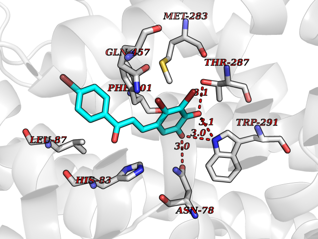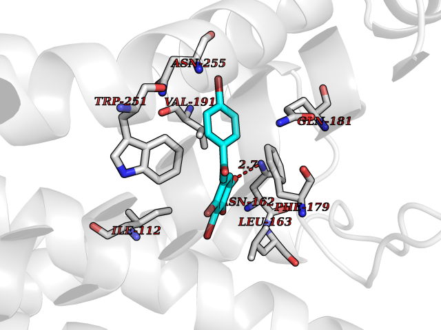 Target general information Gen name MTNR1A Organism Homo sapiens (Human) Uniprot ID TTD ID Synonyms Mel1a receptor; Mel1AR; Mel-1A-R Protein family G-protein coupled receptor 1 family Biochemical class GPCR rhodopsin Function Likely to mediate the reproductive and circadian actions of melatonin. The activity of this receptor is mediated by pertussis toxin sensitive G proteins that inhibit adenylate cyclase activity. High affinity receptor for melatonin. Related diseases Spermatogenic failure 5 (SPGF5) [MIM:243060]: An infertility disorder caused by spermatogenesis defects. Semen from affected men show close to 100% morphologically abnormal multiflagellar spermatozoa with low motility, oversized irregular heads, and abnormal midpiece and acrosome. {ECO:0000269|PubMed:17435757, ECO:0000269|PubMed:21733974}. The disease is caused by variants affecting the gene represented in this entry. Drugs (DrugBank ID) DB06594; DB01065; DB00980; DB02709; DB09071 Interacts with P27797; A8MQ03; Q8IUG1; P49286; O76081; P57088 EC number NA Uniprot keywords 3D-structure; Cell membrane; Disulfide bond; G-protein coupled receptor; Glycoprotein; Membrane; Receptor; Reference proteome; Transducer; Transmembrane; Transmembrane helix Protein physicochemical properties Chain ID D Molecular weight (Da) 31301 Length 276 Aromaticity 0.15 Instability index 37.33 Isoelectric point 9.22 Charge (pH=7) 9.92 3D Binding mode Sequence RPSWLASALACVLIFTIVVDILGNLLVILSVYRNKKLRNAGNIFVVSLAVADLVVAIYPYPLVLMSIFNNGWNLGYLHCQVSGFLMGLSVIGSIFNITGIAINRYCYICHSLKYDKLYSSKNSLCYVLLIWLLTLAAVLPNLRAGTLQYDPRIYSCTFAQSVSSAYTIAVVVFHFLVPMIIVIFCYLRIWILVLQVRQRVPQDFRNFVTMFVVFVLFAICWAPLNFIGLAVASDPASMVPRIPEWLFVASYYMAYFNSCLNAIIYGLLNQNFRKEY Hydrogen bonds contact Hydrophobic contact | ||||