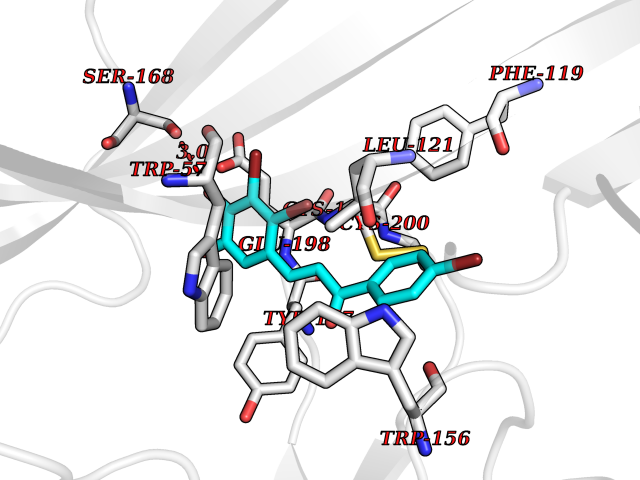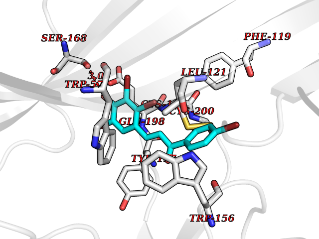 Target general information Gen name NR1H2 Organism Homo sapiens (Human) Uniprot ID TTD ID Synonyms Ubiquitously-expressed nuclear receptor; Nuclear receptor subfamily 1 group H member 2; Nuclear receptor NER; Nuclear orphan receptor LXR-beta; NER; Liver X receptor beta; LXRbeta; LXRB Protein family Nuclear hormone receptor family, NR1 subfamily Biochemical class Nuclear hormone receptor Function Binds preferentially to double-stranded oligonucleotide direct repeats having the consensus half-site sequence 5'-AGGTCA-3' and 4-nt spacing (DR-4). Regulates cholesterol uptake through MYLIP-dependent ubiquitination of LDLR, VLDLR and LRP8; DLDLR and LRP8. Interplays functionally with RORA for the regulation of genes involved in liver metabolism. Plays an anti-inflammatory role during the hepatic acute phase response by acting as a corepressor: inhibits the hepatic acute phase response by preventing dissociation of the N-Cor corepressor complex. Nuclear receptor that exhibits a ligand-dependent transcriptional activation activity. Related diseases Wolcott-Rallison syndrome (WRS) [MIM:226980]: A rare autosomal recessive disorder, characterized by permanent neonatal or early infancy insulin-dependent diabetes and, at a later age, epiphyseal dysplasia, osteoporosis, growth retardation and other multisystem manifestations, such as hepatic and renal dysfunctions, intellectual disability and cardiovascular abnormalities. {ECO:0000269|PubMed:10932183, ECO:0000269|PubMed:12086964, ECO:0000269|PubMed:12960215, ECO:0000269|PubMed:16813601, ECO:0000269|PubMed:24168455, ECO:0000269|PubMed:24194294, ECO:0000269|PubMed:27145240, ECO:0000269|PubMed:28220546, ECO:0000269|PubMed:30906465, ECO:0000269|PubMed:30922274, ECO:0000269|PubMed:32216767, ECO:0000269|PubMed:34123975}. The disease is caused by variants affecting the gene represented in this entry. Drugs (DrugBank ID) DB07082; DB03848; DB11994; DB03791; DB13174; DB07080 Interacts with Q92828; Q99750; O75376; P19793; P48443; Q07869-1; Q03181; P37231; P19793 EC number NA Uniprot keywords 3D-structure; Activator; Alternative splicing; DNA-binding; Isopeptide bond; Metal-binding; Nucleus; Proteomics identification; Receptor; Reference proteome; Transcription; Transcription regulation; Ubl conjugation; Zinc; Zinc-finger Protein physicochemical properties Chain ID A Molecular weight (Da) 27215.1 Length 236 Aromaticity 0.09 Instability index 54.18 Isoelectric point 7.08 Charge (pH=7) 0.11 3D Binding mode Sequence VQLTAAQELMIQQLVAAQLQCNKRSFSDQPKVTPWPLGADPQSRDARQQRFAHFTELAIISVQEIVDFAKQVPGFLQLGREDQIALLKASTIEIMLLETARRYNHETECITFLKDFTYSKDDFHRAGLQVEFINPIFEFSRAMRRLGLDDAEYALLIAINIFSADRPNVQEPGRVEALQQPYVEALLSYTRIKRPQDQLRFPRMLMKLVSLRTLSSVHSEQVFALRKLPPLLSEIW Hydrogen bonds contact Hydrophobic contact | ||||