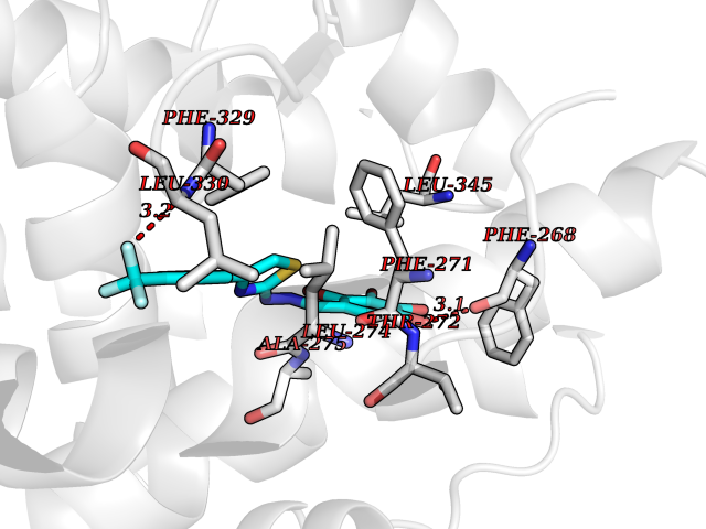Target general information Gen name CYP2A6 Organism Homo sapiens (Human) Uniprot ID TTD ID Synonyms Cytochrome P450(I); Cytochrome P450 IIA3; Coumarin 7-hydroxylase; CYPIIA6; CYP2A6; CYP2A3 Protein family Cytochrome P450 family Biochemical class Paired donor oxygen oxidoreductase Function Exhibits a high coumarin 7-hydroxylase activity. Can act in the hydroxylation of the anti-cancer drugs cyclophosphamide and ifosphamide. Competent in the metabolic activation of aflatoxin B1. Constitutes the major nicotine C-oxidase. Possesses low phenacetin O-deethylation activity. Related diseases Lecithin-cholesterol acyltransferase deficiency (LCATD) [MIM:245900]: A disorder of lipoprotein metabolism characterized by inadequate esterification of plasmatic cholesterol. Two clinical forms are recognized: complete LCAT deficiency and fish-eye disease. LCATD is generally referred to the complete form which is associated with absence of both alpha and beta LCAT activities resulting in esterification anomalies involving both HDL (alpha-LCAT activity) and LDL (beta-LCAT activity). It causes a typical triad of diffuse corneal opacities, target cell hemolytic anemia, and proteinuria with renal failure. {ECO:0000269|PubMed:11423760, ECO:0000269|PubMed:12957688, ECO:0000269|PubMed:15994445, ECO:0000269|PubMed:16051254, ECO:0000269|PubMed:16216249, ECO:0000269|PubMed:1681161, ECO:0000269|PubMed:1859405, ECO:0000269|PubMed:2370048, ECO:0000269|PubMed:7607641, ECO:0000269|PubMed:7711728, ECO:0000269|PubMed:8318557, ECO:0000269|PubMed:8432868, ECO:0000269|PubMed:8807342, ECO:0000269|PubMed:9007616, ECO:0000269|PubMed:9741700}. The disease is caused by variants affecting the gene represented in this entry.; DISEASE: Fish-eye disease (FED) [MIM:136120]: A disorder of lipoprotein metabolism due to partial lecithin-cholesterol acyltransferase deficiency that affects only alpha-LCAT activity. FED is characterized by low plasma HDL and corneal opacities due to accumulation of cholesterol deposits in the cornea ('fish-eye'). {ECO:0000269|PubMed:1516702, ECO:0000269|PubMed:1571050, ECO:0000269|PubMed:15994445, ECO:0000269|PubMed:1737840, ECO:0000269|PubMed:21901787, ECO:0000269|PubMed:8620346, ECO:0000269|PubMed:9261271}. The disease is caused by variants affecting the gene represented in this entry. Drugs (DrugBank ID) DB07621; DB07623; DB00316; DB01118; DB00182; DB01435; DB05676; DB01274; DB09274; DB11586; DB00972; DB00443; DB01194; DB01222; DB09061; DB14737; DB06119; DB00356; DB00568; DB00604; DB06470; DB00257; DB00363; DB04665; DB00531; DB06292; DB01234; DB14649; DB00470; DB06374; DB00216; DB00330; DB01039; DB04841; DB01544; DB00544; DB00690; DB01213; DB00983; DB01159; DB00741; DB01181; DB00951; DB01026; DB01006; DB00281; DB06448; DB04871; DB14009; DB01043; DB00170; DB00763; DB00553; DB01028; DB00959; DB00916; DB01011; DB01110; DB00471; DB07609; DB07617; DB00238; DB00184; DB01115; DB06712; DB00717; DB00312; DB03783; DB01174; DB00252; DB01085; DB04977; DB14631; DB00635; DB00396; DB01045; DB15119; DB01037; DB06739; DB01236; DB00675; DB09256; DB09327; DB12816; DB00752; DB00755; DB12245; DB00313; DB09068; DB00495 Interacts with Q9UI14 EC number EC 1.14.13.- Uniprot keywords 3D-structure; Direct protein sequencing; Endoplasmic reticulum; Heme; Iron; Lipid metabolism; Membrane; Metal-binding; Microsome; Monooxygenase; NADP; Oxidoreductase; Proteomics identification; Reference proteome Protein physicochemical properties Chain ID A Molecular weight (Da) 53586.9 Length 467 Aromaticity 0.12 Instability index 40.76 Isoelectric point 9.14 Charge (pH=7) 7.77 3D Binding mode Sequence KGKLPPGPTPLPFIGNYLQLNTEQMYNSLMKISERYGPVFTIHLGPRRVVVLCGHDAVREALVDQAEEFSGRGEQATFDWVFKGYGVVFSNGERAKQLRRFSIATLRDFGVGKRGIEERIQEEAGFLIDALRGTGGANIDPTFFLSRTVSNVISSIVFGDRFDYKDKEFLSLLRMMLGIFQFTSTSTGQLYEMFSSVMKHLPGPQQQAFQLLQGLEDFIAKKVEHNQRTLDPNSPRDFIDSFLIRMQEEEKNPNTEFYLKNLVMTTLNLFIGGTETVSTTLRYGFLLLMKHPEVEAKVHEEIDRVIGKNRQPKFEDRAKMPYMEAVIHEIQRFGDVIPMSLARRVKKDTKFRDFFLPKGTEVYPMLGSVLRDPSFFSNPQDFNPQHFLNEKGQFKKSDAFVPFSIGKRNCFGEGLARMELFLFFTTVMQNFRLKSSQSPKDIDVSPKHVGFATIPRNYTMSFLPRHH Hydrogen bonds contact Hydrophobic contact | ||||