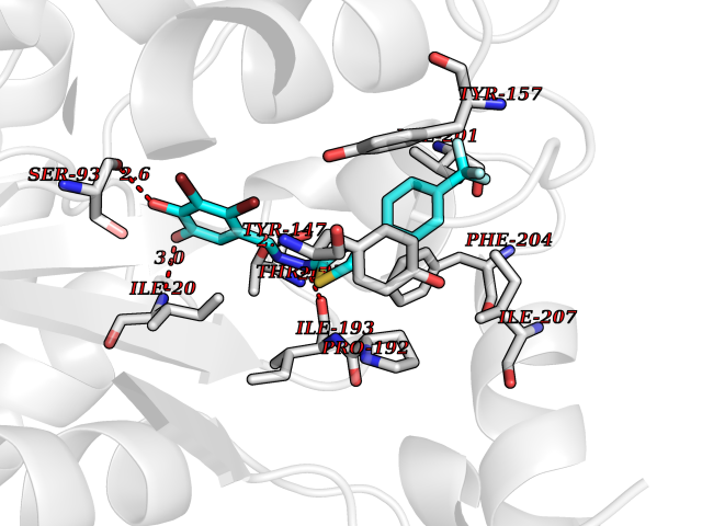 Target general information Gen name NR3C1 Organism Homo sapiens (Human) Uniprot ID TTD ID Synonyms Nuclear receptor subfamily 3 group C member 1; GRL; GR Protein family Nuclear hormone receptor family, NR3 subfamily Biochemical class Nuclear hormone receptor Function Receptor for glucocorticoids (GC). Has a dual mode of action: as a transcription factor that binds to glucocorticoid response elements (GRE), both for nuclear and mitochondrial DNA, and as a modulator of other transcription factors. Affects inflammatory responses, cellular proliferation and differentiation in target tissues. Involved in chromatin remodeling. Plays a role in rapid mRNA degradation by binding to the 5' UTR of target mRNAs and interacting with PNRC2 in a ligand-dependent manner which recruits the RNA helicase UPF1 and the mRNA-decapping enzyme DCP1A, leading to RNA decay. Could act as a coactivator for STAT5-dependent transcription upon growth hormone (GH) stimulation and could reveal an essential role of hepatic GR in the control of body growth (By similarity). Related diseases Glucocorticoid resistance, generalized (GCCR) [MIM:615962]: An autosomal dominant disease characterized by increased plasma cortisol concentration and high urinary free cortisol, resistance to adrenal suppression by dexamethasone, and the absence of Cushing syndrome typical signs. Clinical features include hypoglycemia, hypertension, metabolic alkalosis, chronic fatigue and profound anxiety. {ECO:0000269|PubMed:11589680, ECO:0000269|PubMed:11701741, ECO:0000269|PubMed:12050230, ECO:0000269|PubMed:15769988, ECO:0000269|PubMed:1704018, ECO:0000269|PubMed:17635946, ECO:0000269|PubMed:20335448, ECO:0000269|PubMed:21362280, ECO:0000269|PubMed:23426617, ECO:0000269|PubMed:24483153, ECO:0000269|PubMed:26031419, ECO:0000269|PubMed:26541474, ECO:0000269|PubMed:27120390, ECO:0000269|PubMed:7683692}. The disease is caused by variants affecting the gene represented in this entry. Drugs (DrugBank ID) DB00240; DB04630; DB00288; DB00394; DB00443; DB14669; DB01222; DB01410; DB01013; DB13158; DB00838; DB01380; DB13003; DB11921; DB01260; DB00547; DB01234; DB14649; DB00223; DB09095; DB06781; DB01395; DB00687; DB00663; DB00180; DB00591; DB01047; DB00324; DB01185; DB00846; DB13867; DB08906; DB00588; DB11619; DB02210; DB00769; DB00741; DB14538; DB14539; DB14540; DB14541; DB14542; DB14543; DB14544; DB00367; DB14596; DB00253; DB00351; DB00959; DB00834; DB00764; DB14512; DB00717; DB12637; DB05423; DB01384; DB01130; DB00860; DB15566; DB14631; DB00635; DB00396; DB00896; DB14583; DB00421; DB09091; DB00620; DB08867; DB00596; DB15114 Interacts with P31749; P01730; P00533; P41235; P07900; Q6ZU52; P06239; P28702; Q14141; O95416; P82094; P59598; Q62667; Q61026 EC number NA Uniprot keywords 3D-structure; Acetylation; Alternative initiation; Alternative splicing; Apoptosis; Cell cycle; Cell division; Chromatin regulator; Chromosome; Chromosome partition; Cytoplasm; Cytoskeleton; Disease variant; DNA-binding; Isopeptide bond; Lipid-binding; Metal-binding; Methylation; Mitochondrion; Mitosis; Nucleus; Phosphoprotein; Proteomics identification; Pseudohermaphroditism; Receptor; Reference proteome; RNA-binding; Steroid-binding; Transcription; Transcription regulation; Ubl conjugation; Zinc; Zinc-finger Protein physicochemical properties Chain ID A Molecular weight (Da) 30565.2 Length 262 Aromaticity 0.1 Instability index 46.97 Isoelectric point 5.79 Charge (pH=7) -4.17 3D Binding mode Sequence TPTLVSLLEVIEPEVLYAGYDSSVPDSTWRIMTTLNMLGGRQMIAAVKWAKAIPGFRNLHLDDQMTLLQYSWMSLMAFALGWRSYRQSSANLLCFAPDLIINEQRMTLPDMYDQCKHMLYVSSELHRLQVSYEEYLCMKTLLLLSSVPKDGLKSQELFDEIRMTYIKELGKAIVKREGNSSQNWQRFYQLTKLLDSMHEVVENLLNYCFQTFLDKTMSIEFPEMLAEIITNQIPKYSNGNIKKLLFHQKENALLRYLLDKDD Hydrogen bonds contact Hydrophobic contact | ||||