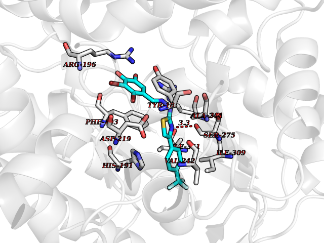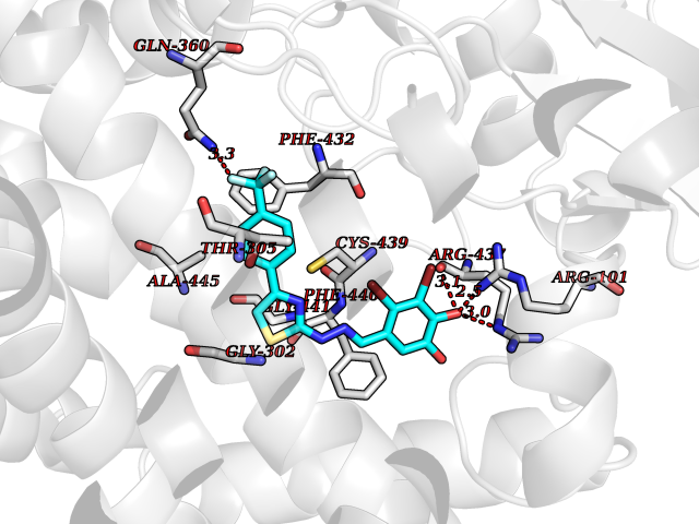 Target general information Gen name pchF Organism Pseudomonas putida (Arthrobacter siderocapsulatus) Uniprot ID TTD ID NA Synonyms NA Protein family NA Biochemical class Oxidoreductase Function 4-cresol dehydrogenase (hydroxylating) activity.Flavin adenine dinucleotide binding.Oxidoreductase activity, acting on CH-OH group of donors. Related diseases Dihydrolipoamide dehydrogenase deficiency (DLDD) [MIM:246900]: An autosomal recessive metabolic disorder characterized biochemically by a combined deficiency of the branched-chain alpha-keto acid dehydrogenase complex (BCKDC), pyruvate dehydrogenase complex (PDC), and alpha-ketoglutarate dehydrogenase complex (KGDC). Clinically, affected individuals have lactic acidosis and neurologic deterioration due to sensitivity of the central nervous system to defects in oxidative metabolism. {ECO:0000269|PubMed:10448086, ECO:0000269|PubMed:11687750, ECO:0000269|PubMed:12925875, ECO:0000269|PubMed:15712224, ECO:0000269|PubMed:16442803, ECO:0000269|PubMed:16770810, ECO:0000269|PubMed:17404228, ECO:0000269|PubMed:20160912, ECO:0000269|PubMed:8506365, ECO:0000269|PubMed:8968745, ECO:0000269|PubMed:9540846, ECO:0000269|PubMed:9934985}. The disease is caused by variants affecting the gene represented in this entry. Drugs (DrugBank ID) DB03147 Interacts with NA EC number 1.17.9.1 Uniprot keywords 3D-structure; Direct protein sequencing; FAD; Flavoprotein; Oxidoreductase; Plasmid Protein physicochemical properties Chain ID A Molecular weight (Da) 57240.8 Length 515 Aromaticity 0.1 Instability index 30.94 Isoelectric point 6.06 Charge (pH=7) -4.42 3D Binding mode Sequence AVLPKGVTQGEFNKAVQKFRALLGDDNVLVESDQLVPYNKIMMPVENAAHAPSAAVTATTVEQVQGVVKICNEHKIPIWTISTGRNFGYGSAAPVQRGQVILDLKKMNKIIKIDPEMCYALVEPGVTFGQMYDYIQENNLPVMLSFSAPSAIAGPVGNTMDRGVGYTPYGEHFMMQCGMEVVLANGDVYRTGMGGVPGSNTWQIFKWGYGPTLDGMFTQANYGICTKMGFWLMPKPPVFKPFEVIFEDEADIVEIVDALRPLRMSNTIPNSVVIASTLWEAGSAHLTRAQYTTEPGHTPDSVIKQMQKDTGMGAWNLYAALYGTQEQVDVNWKIVTDVFKKLGKGRIVTQEEAGDTQPFKYRAQLMSGVPNLQEFGLYNWRGGGGSMWFAPVSEARGSECKKQAAMAKRVLHKYGLDYVAEFIVAPRDMHHVIDVLYDRTNPEETKRADACFNELLDEFEKEGYAVYRVNTRFQDRVAQSYGPVKRKLEHAIKRAVDPNNILAPGRSGIDLNNDF Hydrogen bonds contact Hydrophobic contact | ||||