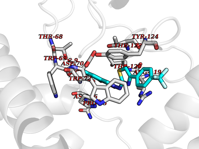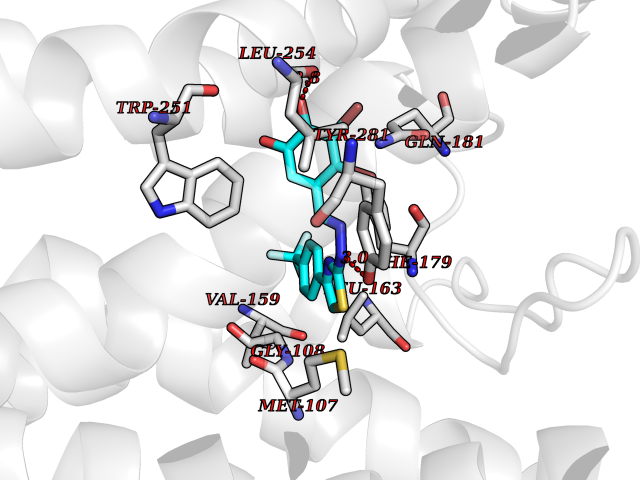 Target general information Gen name MTNR1A Organism Homo sapiens (Human) Uniprot ID TTD ID Synonyms Mel1a receptor; Mel1AR; Mel-1A-R Protein family G-protein coupled receptor 1 family Biochemical class GPCR rhodopsin Function Likely to mediate the reproductive and circadian actions of melatonin. The activity of this receptor is mediated by pertussis toxin sensitive G proteins that inhibit adenylate cyclase activity. High affinity receptor for melatonin. Related diseases Spermatogenic failure 5 (SPGF5) [MIM:243060]: An infertility disorder caused by spermatogenesis defects. Semen from affected men show close to 100% morphologically abnormal multiflagellar spermatozoa with low motility, oversized irregular heads, and abnormal midpiece and acrosome. {ECO:0000269|PubMed:17435757, ECO:0000269|PubMed:21733974}. The disease is caused by variants affecting the gene represented in this entry. Drugs (DrugBank ID) DB06594; DB01065; DB00980; DB02709; DB09071 Interacts with P27797; A8MQ03; Q8IUG1; P49286; O76081; P57088 EC number NA Uniprot keywords 3D-structure; Cell membrane; Disulfide bond; G-protein coupled receptor; Glycoprotein; Membrane; Receptor; Reference proteome; Transducer; Transmembrane; Transmembrane helix Protein physicochemical properties Chain ID D Molecular weight (Da) 31301 Length 276 Aromaticity 0.15 Instability index 37.33 Isoelectric point 9.22 Charge (pH=7) 9.92 3D Binding mode Sequence RPSWLASALACVLIFTIVVDILGNLLVILSVYRNKKLRNAGNIFVVSLAVADLVVAIYPYPLVLMSIFNNGWNLGYLHCQVSGFLMGLSVIGSIFNITGIAINRYCYICHSLKYDKLYSSKNSLCYVLLIWLLTLAAVLPNLRAGTLQYDPRIYSCTFAQSVSSAYTIAVVVFHFLVPMIIVIFCYLRIWILVLQVRQRVPQDFRNFVTMFVVFVLFAICWAPLNFIGLAVASDPASMVPRIPEWLFVASYYMAYFNSCLNAIIYGLLNQNFRKEY Hydrogen bonds contact Hydrophobic contact | ||||