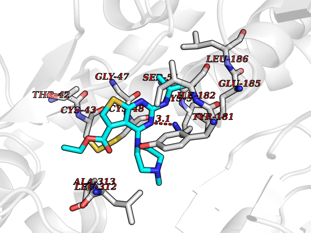 Target general information Gen name por Organism Desulfocurvibacter africanus (Desulfovibrio africanus) Uniprot ID TTD ID NA Synonyms NA Protein family Pyruvate:ferredoxin/flavodoxin oxidoreductase family Biochemical class Oxidoreductase Function 4 iron, 4 sulfur cluster binding.Iron ion binding.Pyruvate synthase activity.Thiamine pyrophosphate binding. Related diseases Intellectual developmental disorder, autosomal dominant 62 (MRD62) [MIM:618793]: An autosomal dominant form of intellectual disability, a disorder characterized by significantly below average general intellectual functioning associated with impairments in adaptive behavior and manifested during the developmental period. MRD62 is characterized by mild to moderately impaired intellectual development. {ECO:0000269|PubMed:27479843, ECO:0000269|PubMed:29460436}. The disease is caused by variants affecting the gene represented in this entry. Drugs (DrugBank ID) DB02410; DB01987; DB00507 Interacts with NA EC number 1.2.7.1 Uniprot keywords 3D-structure; 4Fe-4S; Calcium; Cytoplasm; Direct protein sequencing; Disulfide bond; Electron transport; Iron; Iron-sulfur; Magnesium; Metal-binding; Oxidoreductase; Pyruvate; Thiamine pyrophosphate; Transport Protein physicochemical properties Chain ID A,B Molecular weight (Da) 115569 Length 1065 Aromaticity 0.09 Instability index 31.51 Isoelectric point 6.32 Charge (pH=7) -5.62 3D Binding mode Sequence GKKMMTTDGNTATAHVAYAMSEVAAIYPITPSSTMGEEADDWAAQGRKNIFGQTLTIREMQSEAGAAGAVHGALAAGALTTTFTASQGLLLMIPNMYKISGELLPGVFHVTARAIAAHALSIFGDHQDIYAARQTGFAMLASSSVQEAHDMALVAHLAAIESNVPFMHFFDGFRTSHEIQKIEVLDYADMASLVNQKALAEFRAKSPGIVAEYMQKVASLTGRSYKLFDYVGAPDAERVIVSMGSSCETIEEVINHLAAKGEKIGLIKVRLYRPFVSEAFFAALPASAKVITVLDRTKEPGAPGDPLYLDVCSAFVERGEAMPKILAGRYGLGSKEFSPAMVKSVYDNMSGAKKNHFTVGIEDDVTGTSLPVDNAFADTTPKGTIQCQFWGLGADGTVGANKQAIKIIGDNTDLFAQGYFSYDSKKSGGITISHLRFGEKPIQSTYLVNRADYVACHNPAYVGIYDILEGIKDGGTFVLNSPWSSLEDMDKHLPSGIKRTIANKKLKFYNIDAVKIATDVGLGGRINMIMQTAFFKLAGVLPFEKAVDLLKKSIHKAYGKKGEKIVKMNTDAVDQAVTSLQEFKYPDSWKDAPAETKAEPMTNEFFKNVVKPILTQQGDKLPVSAFEADGRFPLGTSQFEKRGVAINVPQWVPENCIQCNQCAFVCPHSAILPVLAKEEELVGAPANFTALEAKGKELKGYKFRIQINTLDCMGCGNCADICPPKEKALVMQPLDTQRDAQVPNLEYAARIPVKSEVLPRDSLKGSQFQEPLMEFSGACSGCGETPYVRVITQLFGERMFIANATGCSSIWGASAPSMPYKTNRLGQGPAWGNSLFEDAAEYGFGMSVWIFGGDGWAYDIGYGGLDHVLASGEDVNVFVMDTEVYSNTGGQSSKATPTGAVAKFAAAGKRTGKKDLARMVMTYGYVYVATVSMGYSKQQFLKVLKEAESFPGPSLVIAYATCINQGLRKGMGKSQDVMNTAVKSGYWPLFRYDPRLAAQGKNPFQLDSKAPDGSVEEFLMAQNRFAVLDRSFPEDAKRLRAQVAHELDVRFKELEHMAATNIFES Hydrogen bonds contact Hydrophobic contact | ||||