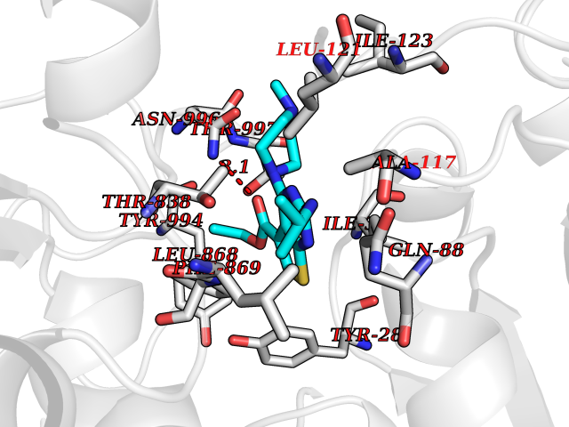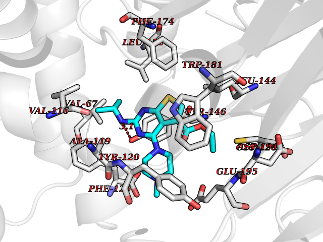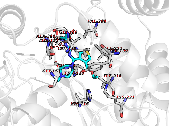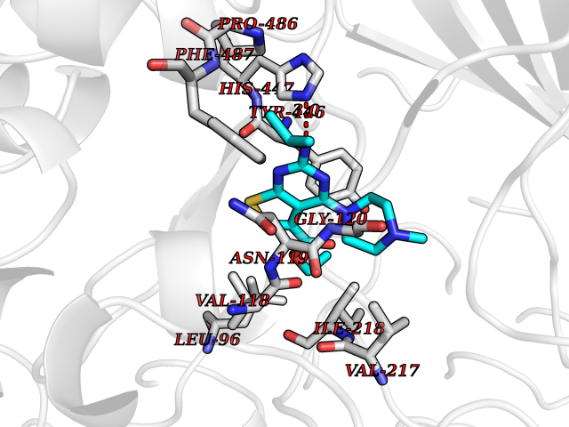 Target general information Gen name RRM1 Organism Homo sapiens (Human) Uniprot ID TTD ID NA Synonyms RR1 Protein family Ribonucleoside diphosphate reductase large chain family Biochemical class Oxidoreductase Function ATP binding.Identical protein binding.Ribonucleoside-diphosphate reductase activity, thioredoxin disulfide as acceptor. Related diseases Progressive external ophthalmoplegia with mitochondrial DNA deletions, autosomal recessive 6 (PEOB6) [MIM:620647]: A form of progressive external ophthalmoplegia, a mitochondrial myopathy characterized by progressive paralysis of the levator palpebrae, orbicularis oculi, and extraocular muscles. Ragged red fibers are seen on muscle biopsy. {ECO:0000269|PubMed:35617047}. The disease may be caused by variants affecting the gene represented in this entry. Drugs (DrugBank ID) DB00242; DB00631; DB01073; DB05420; DB00441; DB01005; DB05003; DB01280; DB06433 Interacts with P23921; P31350; Q8N720 EC number 1.17.4.1 Uniprot keywords 3D-structure; Acetylation; Allosteric enzyme; ATP-binding; Cytoplasm; Deoxyribonucleotide synthesis; Disulfide bond; Nucleotide-binding; Oxidoreductase; Phosphoprotein; Primary mitochondrial disease; Progressive external ophthalmoplegia; Proteomics identification; Reference proteome Protein physicochemical properties Chain ID A,B Molecular weight (Da) 147968 Length 1301 Aromaticity 0.1 Instability index 43.58 Isoelectric point 7.14 Charge (pH=7) 0.86 3D Binding mode Sequence LAARIAVSNLHKETKKVFSDVMEDLYNYINPHNGKHSPMVAKSTLDIVLANKDRLNSAIIYDRDFSYNYFGFKTLERSYLLKINGKVAERPQHMLMRVSVGIHKEDIDAAIETYNLLSERWFTHASPTLFNAGTNRPQLSSCFLLSMKDDSIEGIYDTLKQCALISKSAGGIGVAVSCIRATGSYIAGTNGNSNGLVPMLRVYNNTARYVDQGGNKRPGAFAIYLEPWHLDIFEFLDLKKNTGKEEQRARDLFFALWIPDLFMKRVETNQDWSLMCPNECPGLDEVWGEEFEKLYASYEKQGRVRKVVKAQQLWYAIIESQTETGTPYMLYKDSCNRKSNQQNLGTIKCSNLCTEIVEYTSKDEVAVCNLASLALNMYVTSEHTYDFKKLAEVTKVVVRNLNKIIDINYYPVPEACLSNKRHRPIGIGVQGLADAFILMRYPFESAEAQLLNKQIFETIYYGALEASCDLAKEQGPYETYEGSPVSKGILQYDMWNVTPTDLWDWKVLKEKIAKYGIRNSLLIAPMPTASTAQILGNNESIEPYTSNIYQIVNPHLLKDLTERGLGSIQSIPEIPDDLKQLYKTVWEISQKTVLKMAAERGAFIDQSQSLNIHIAEPNYGKLTSMHFYGWKQGLKTGMYYLRTRAARIAVSNLHKETKKVFSDVMEDLYNYINPHNGKHSPMVAKSTLDIVLANKDRLNSAIIYDRDFSYNYFGFKTLERSYLLKINGKVAERPQHMLMRVSVGIHKEDIDAAIETYNLLSERWFTHASPTLFNAGTNRPQLSSCFLLSMKDDSIEGIYDTLKQCALISKSAGGIGVAVSCIRATGSYIAGTNGNSNGLVPMLRVYNNTARYVDQGGNKRPGAFAIYLEPWHLDIFEFLDLKKNTGKEEQRARDLFFALWIPDLFMKRVETNQDWSLMCPNECPGLDEVWGEEFEKLYASYEKQGRVRKVVKAQQLWYAIIESQTETGTPYMLYKDSCNRKSNQQNLGTIKCSNLCTEIVEYTSKDEVAVCNLASLALNMYVTSEHTYDFKKLAEVTKVVVRNLNKIIDINYYPVPEACLSNKRHRPIGIGVQGLADAFILMRYPFESAEAQLLNKQIFETIYYGALEASCDLAKEQGPYETYEGSPVSKGILQYDMWNVTPTDLWDWKVLKEKIAKYGIRNSLLIAPMPTASTAQILGNNESIEPYTSNIYQIVNPHLLKDLTERGLWEEMKNQIIACNGSIQSIPEIPDDLKQLYKTVWEISQKTVLKMAAERGAFIDQSQSLNIHIAEPNYGKLTSMHFYGWKQGLKTGMYYLRTRAH Hydrogen bonds contact Hydrophobic contact | ||||