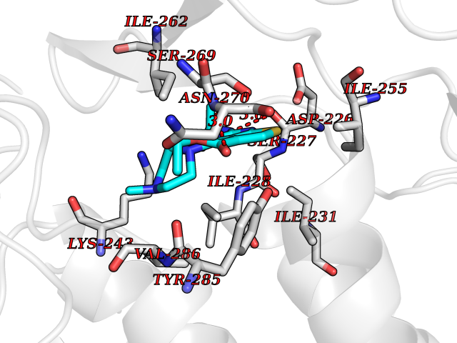 Target general information Gen name DPP8 Organism Homo sapiens (Human) Uniprot ID TTD ID Synonyms Prolyl dipeptidase DPP8; MSTP141; MSTP135; MSTP097; Dipeptidyl peptidase VIII; Dipeptidyl peptidase IV-related protein 1; DPRP1; DPRP-1; DPP VIII; DP8 Protein family Peptidase S9B family, DPPIV subfamily Biochemical class Peptidase Function Dipeptidyl peptidase that cleaves off N-terminal dipeptides from proteins having a Pro or Ala residue at position 2. Related diseases Orotic aciduria 1 (ORAC1) [MIM:258900]: A disorder of pyrimidine metabolism resulting in megaloblastic anemia and orotic acid crystalluria that is frequently associated with some degree of physical and intellectual disability. A minority of cases have additional features, particularly congenital malformations and immune deficiencies. {ECO:0000269|PubMed:9042911}. The disease is caused by variants affecting the gene represented in this entry. Drugs (DrugBank ID) NA Interacts with NA EC number EC 3.4.14.5 Uniprot keywords 3D-structure; Alternative splicing; Aminopeptidase; Apoptosis; Cytoplasm; Hydrolase; Protease; Proteomics identification; Reference proteome; Serine protease Protein physicochemical properties Chain ID A,D Molecular weight (Da) 97764.9 Length 849 Aromaticity 0.12 Instability index 47.71 Isoelectric point 5.69 Charge (pH=7) -21.66 3D Binding mode Sequence LEPFYVERYSWSQLKKLLADTRKYHGYMMAKAPHDFMFVKRNDPDGPHSDRIYYLAMSNRENTLFYSEIPKTINRAAVLMLSWKPLLDLFQYSREEELLRERKRIGTVGIASYDYHQGSGTFLFQAGSGIYHVKDGGPQGFTQQPLRPNLVETSCPNIRMDPKLCPADPDWIAFIHSNDIWISNIVTREERRLTYVHNELANMEEDARSAGVATFVLQEEFDRYSGYWWCPKAETTPSGGKILRILYEENDESEVEIIHVTSPMLETRRADSFRYPKTGTANPKVTFKMSEIMIDAEGRIIDVIDKELIQPFEILFEGVEYIARAGWTPEGKYAWSILLDRSQTRLQIVLISPELFIPVEDDVMERQRLIESVPDSVTPLIIYEETTDIWINIHDIFHVFPQSHEEEIEFIFASECKTGFRHLYKITSILKESKYKRSSGGLPAPSDFKCPIKEEIAITSGEWEVLGRHGSNIQVDEVRRLVYFEGTKDSPLEHHLYVVSYVNPGEVTRLTDRGYSHSCCISQHCDFFISKYSNQKNPHCVSLYKLSSPEDDPTCKTKEFWATILDSAGPLPDYTPPEIFSFESTTGFTLYGMLYKPHDLQPGKKYPTVLFIYGGPQVQLVNNRFKGVKYFRLNTLASLGYVVVVIDNRGSXHRGLKFEGAFKYKMGQIEIDDQVEGLQYLASRYDFIDLDRVGIHGWSYGGYLSLMALMQRSDIFRVAIAGAPVTLWIFYDTGYTERYMGHPDQNEQGYYLGSVAMQAEKFPSEPNRLLLLHGFLDENVHFAHTSILLSFLVRAGKPYDLQIYPQERHSIRVPESGEHYELHLLHYLQENLGSRIAALKVSLRFLYEG Hydrogen bonds contact Hydrophobic contact | ||||
