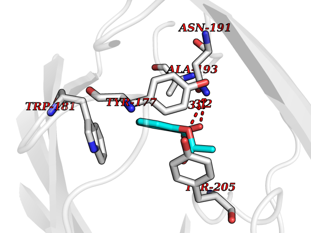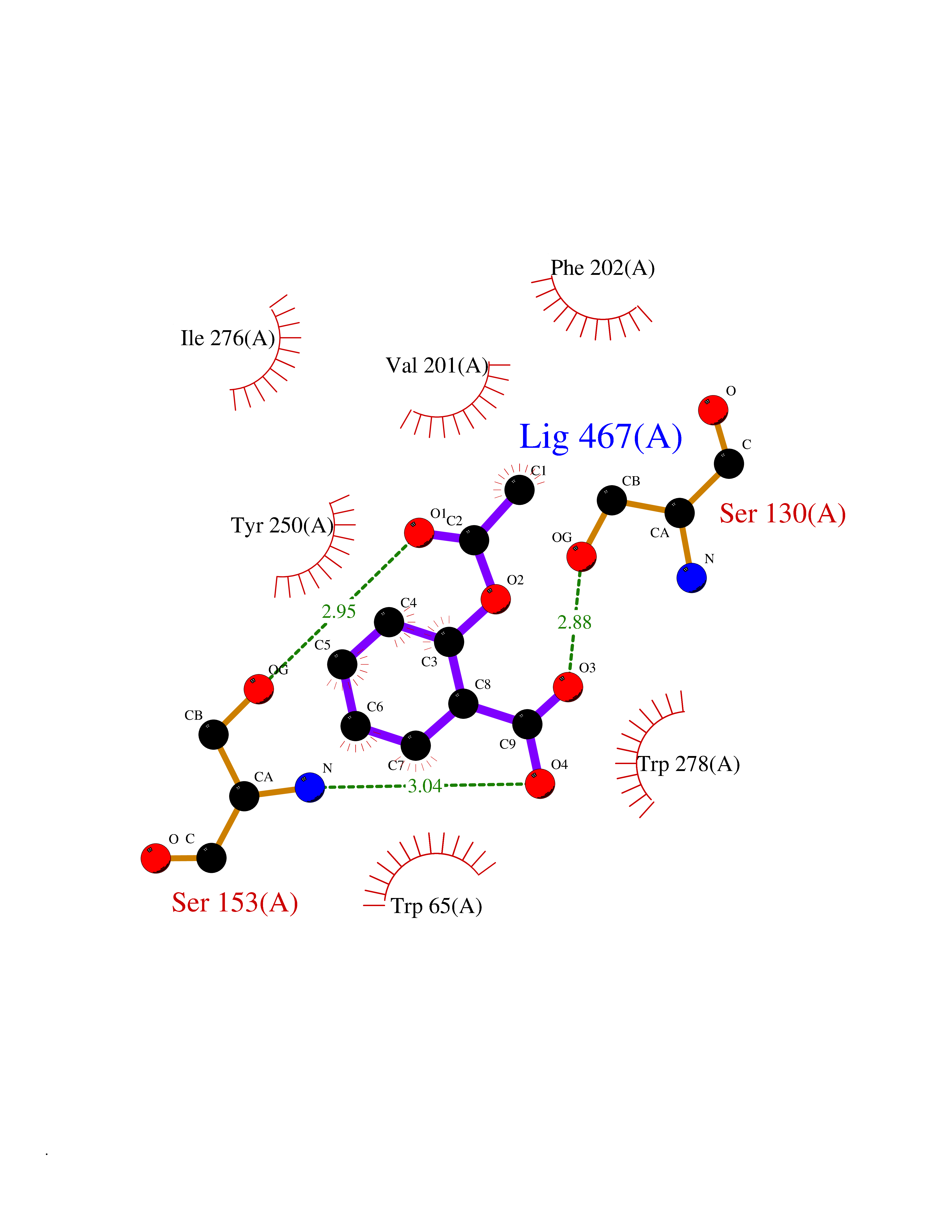 Target general information Gen name MGLL Organism Homo sapiens (Human) Uniprot ID TTD ID Synonyms Monoacylglycerol lipase; MGL; Lysophospholipaselike; Lysophospholipase-like; Lysophospholipase homolog; HUK5; HU-K5 Protein family AB hydrolase superfamily, Monoacylglycerol lipase family Biochemical class Carboxylic ester hydrolase Function Hydrolyzes the endocannabinoid 2-arachidonoylglycerol, and thereby contributes to the regulation of endocannabinoid signaling, nociperception and perception of pain. Regulates the levels of fatty acids that serve as signaling molecules and promote cancer cell migration, invasion and tumor growth. Converts monoacylglycerides to free fatty acids and glycerol. Related diseases Systemic lupus erythematosus 9 (SLEB9) [MIM:610927]: A chronic, relapsing, inflammatory, and often febrile multisystemic disorder of connective tissue, characterized principally by involvement of the skin, joints, kidneys and serosal membranes. It is of unknown etiology, but is thought to represent a failure of the regulatory mechanisms of the autoimmune system. The disease is marked by a wide range of system dysfunctions, an elevated erythrocyte sedimentation rate, and the formation of LE cells in the blood or bone marrow. {ECO:0000269|PubMed:17360460}. Disease susceptibility is associated with variants affecting the gene represented in this entry.; DISEASE: Immunodeficiency, common variable, 7 (CVID7) [MIM:614699]: A primary immunodeficiency characterized by antibody deficiency, hypogammaglobulinemia, recurrent bacterial infections and an inability to mount an antibody response to antigen. The defect results from a failure of B-cell differentiation and impaired secretion of immunoglobulins; the numbers of circulating B-cells is usually in the normal range, but can be low. {ECO:0000269|PubMed:22035880}. The disease is caused by variants affecting the gene represented in this entry. Drugs (DrugBank ID) NA Interacts with P07550; P37235 EC number EC 3.1.1.23 Uniprot keywords 3D-structure; Alternative splicing; Cytoplasm; Fatty acid biosynthesis; Fatty acid metabolism; Hydrolase; Lipid biosynthesis; Lipid degradation; Lipid metabolism; Membrane; Nitration; Phosphoprotein; Proteomics identification; Reference proteome; Serine esterase Protein physicochemical properties Chain ID A Molecular weight (Da) 31808.4 Length 289 Aromaticity 0.08 Instability index 29.7 Isoelectric point 6.73 Charge (pH=7) -0.91 3D Binding mode Sequence PRRTPQSIPYQDLPHLVNADGQYLFCRYWAPTGTPKALIFVSHGAGEHSGRYEELARMLMGLDLLVFAHDHVGHGQSEGERMVVSDFHVFVRDVLQHVDSMQKDYPGLPVFLLGHSMGGAIAILTAAERPGHFAGMVLISPLVLANPESATTFKVLAAKVLNSVLPNLSSGPIDSSVLSRNKTEVDIYNSDPLICRAGLKVCFGIQLLNAVSRVERALPKLTVPFLLLQGSADRLCDSKGAYLLMELAKSQDKTLKIYEGAYHVLHKELPEVTNSVFHEINMWVSQRTA Hydrogen bonds contact Hydrophobic contact | ||||