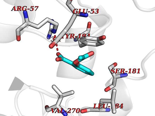 Target general information Gen name pox5 Organism Lactiplantibacillus plantarum (strain ATCC BAA-793 / NCIMB 8826 / WCFS1) (Lactobacillus plantarum) Uniprot ID TTD ID NA Synonyms lp_3589 Protein family TPP enzyme family Biochemical class Oxidoreductase Function Magnesium ion binding.Pyruvate oxidase activity.Thiamine pyrophosphate binding. Related diseases Telangiectasia, hereditary hemorrhagic, 2 (HHT2) [MIM:600376]: A multisystemic vascular dysplasia leading to dilation of permanent blood vessels and arteriovenous malformations of skin, mucosa, and viscera. The disease is characterized by recurrent epistaxis and gastro-intestinal hemorrhage. Visceral involvement includes arteriovenous malformations of the lung, liver, and brain. {ECO:0000269|PubMed:10694922, ECO:0000269|PubMed:10767348, ECO:0000269|PubMed:11170071, ECO:0000269|PubMed:11484689, ECO:0000269|PubMed:14684682, ECO:0000269|PubMed:15024723, ECO:0000269|PubMed:15712270, ECO:0000269|PubMed:16525724, ECO:0000269|PubMed:16752392, ECO:0000269|PubMed:20414677, ECO:0000269|PubMed:26176610, ECO:0000269|PubMed:8640225, ECO:0000269|PubMed:9245985}. The disease is caused by variants affecting the gene represented in this entry. Drugs (DrugBank ID) DB01987; DB03147 Interacts with NA EC number 1.2.3.3 Uniprot keywords 3D-structure; FAD; Flavoprotein; Magnesium; Metal-binding; Oxidoreductase; Reference proteome; Thiamine pyrophosphate Protein physicochemical properties Chain ID A,B Molecular weight (Da) 64137.9 Length 585 Aromaticity 0.08 Instability index 28.31 Isoelectric point 5.17 Charge (pH=7) -18.41 3D Binding mode Sequence TNILAGAAVIKVLEAWGVDHLYGIPGGSINSIMDALSAERDRIHYIQVRHEEVGAMAAAADAKLTGKIGVCFGSAGPGGTHLMNGLYDAREDHVPVLALIGQFGTTGMNMDTFQEMNENPIYADVADYNVTAVNAATLPHVIDEAIRRAYAHQGVAVVQIPVDLPWQQIPAEDWYASANSYQTPLLPEPDVQAVTRLTQTLLAAERPLIYYGIGARKAGKELEQLSKTLKIPLMSTYPAKGIVADRYPAYLGSANRVAQKPANEALAQADVVLFVGNNYPFAEVSKAFKNTRYFLQIDIDPAKLGKRHKTDIAVLADAQKTLAAILAQVSERESTPWWQANLANVKNWRAYLASLEDKQEGPLQAYQVLRAVNKIAEPDAIYSIDVGDINLNANRHLKLTPSNRHITSNLFATMGVGIPGAIAAKLNYPERQVFNLAGDGGASMTMQDLATQVQYHLPVINVVFTNCQYGWIKDEQEDTNQNDFIGVEFNDIDFSKIADGVHMQAFRVNKIEQLPDVFEQAKAIAQHEPVLIDAVITGDRPLPAEKLRLDSAMSSAADIEAFKQRYEAQDLQPLSTYLKQFGLDD Hydrogen bonds contact Hydrophobic contact | ||||