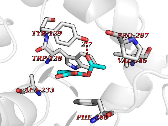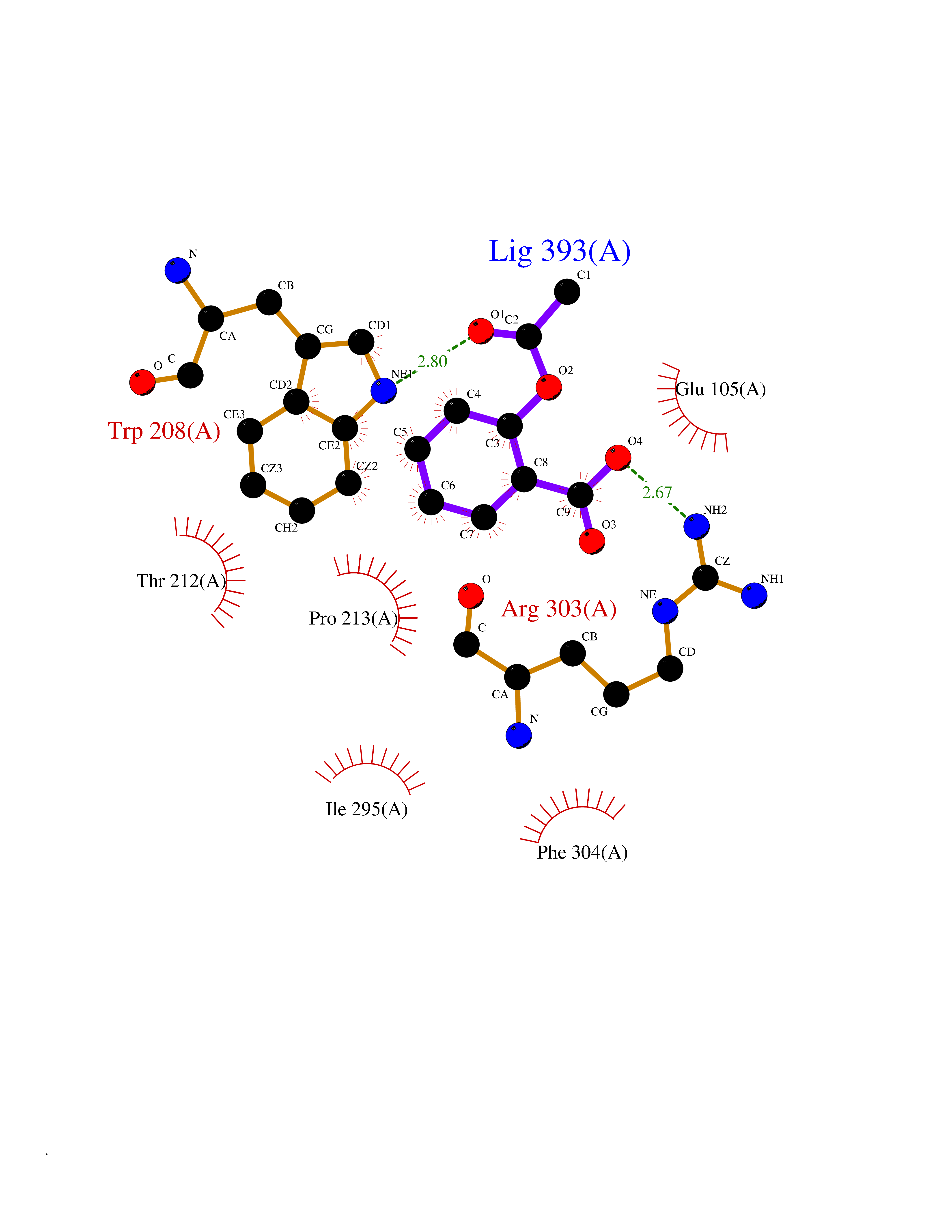Target general information Gen name TDO2 Organism Homo sapiens (Human) Uniprot ID TTD ID Synonyms Tryptophanase; Tryptophan pyrrolase; Tryptophan oxygenase; Tryptamin 2,3-dioxygenase; TRPO; TO Protein family Tryptophan 2,3-dioxygenase family Biochemical class Oxygenase Function Catalyzes the oxidative cleavage of the indole moiety. Heme-dependent dioxygenase that catalyzes the oxidative cleavage of the L-tryptophan (L-Trp) pyrrole ring and converts L-tryptophan to N-formyl-L-kynurenine. Related diseases Hypertryptophanemia (HYPTRP) [MIM:600627]: An autosomal recessive condition characterized by persistent hypertryptophanemia and hyperserotoninemia. {ECO:0000269|PubMed:28285122}. The disease is caused by variants affecting the gene represented in this entry. Drugs (DrugBank ID) DB00779; DB00500; DB00150 Interacts with O43865; O95671; P27797; P12830; P36957; O60762; P06730; Q8TBB1; Q9H8S9; Q70IA8; Q8TDX7; Q9NPG2; Q9HAN9; P20393; Q9NRD5; Q8IYS1; O00560; Q9H190; P48775; Q68DK2-5 EC number EC 1.13.11.11 Uniprot keywords 3D-structure; Dioxygenase; Disease variant; Heme; Iron; Metal-binding; Oxidoreductase; Proteomics identification; Reference proteome; Tryptophan catabolism Protein physicochemical properties Chain ID A Molecular weight (Da) 42122.8 Length 353 Aromaticity 0.11 Instability index 45.07 Isoelectric point 7.06 Charge (pH=7) 0.23 3D Binding mode Sequence GLIYGNYLHLEKVLNAQELQSETKGNKIHDEHLFIITHQAYELWFKQILWELDSVREIFQNGHVRDERNMLKVVSRMHRVSVILKLLVQQFSILETMTALDFNDFREYLSPASGFQSLQFRLLENKIGVLQNMRVPYNRRHYRDNFKGEENELLLKSEQEKTLLELVEAWLERTPGLEPHGFNFWGKLEKNITRGLEEEFIRIQAKEESEEKEEQVAEFQKQKEVLLSLFDEKRHEHLLSKGERRLSYRALQGALMIYFYREEPRFQVPFQLLTSLMDIDSLMTKWRYNHVCMVHRMLGSKAGTGGSSGYHYLRSTVSDRYKVFVDLFNLSTYLIPRHWIPKMNPTIHKFLEH Hydrogen bonds contact Hydrophobic contact | ||||