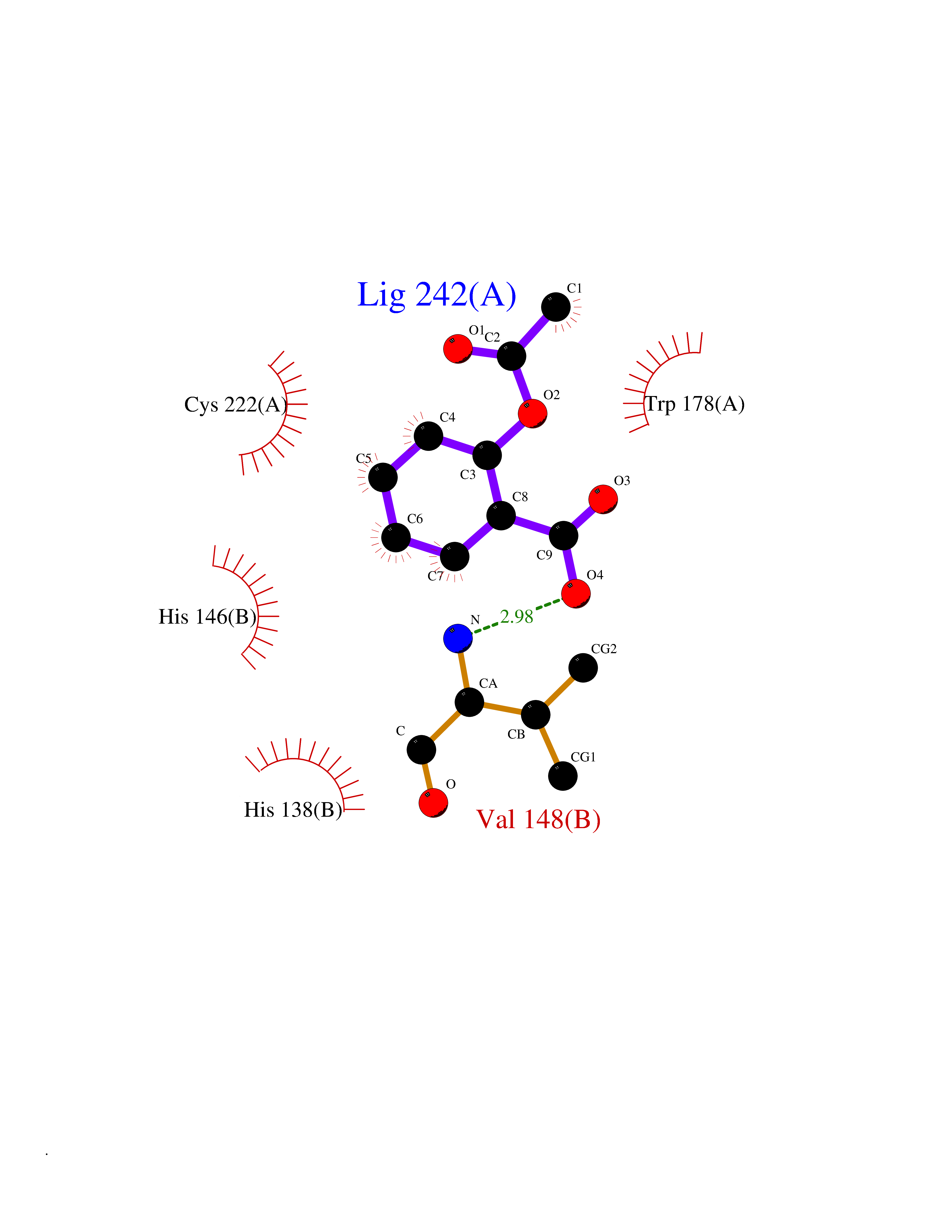 Target general information Gen name LTA4H Organism Homo sapiens (Human) Uniprot ID TTD ID Synonyms Leukotriene A4 hydrolase; Leukotriene A(4)Leukotriene A-4 hydrolase hydrolase; Leukotriene A(4) hydrolase; LTA4; LTA-H; LTA-4hydrolase; LTA-4 hydrolase Protein family Peptidase M1 family Biochemical class Ether bond hydrolase Function Has also aminopeptidase activity. Epoxide hydrolase that catalyzes the final step in the biosynthesis of the proinflammatory mediator leukotriene B4. Related diseases Pigmentary disorder, reticulate, with systemic manifestations, X-linked (PDR) [MIM:301220]: An X-linked recessive disorder characterized by recurrent infections and sterile inflammation in various organs. Diffuse skin hyperpigmentation with a distinctive reticulate pattern is universally evident by early childhood. This is later followed in many patients by hypohidrosis, corneal inflammation and scarring, enterocolitis that resembles inflammatory bowel disease, and recurrent urethral strictures. Melanin and amyloid deposition is present in the dermis. Affected males also have a characteristic facies with frontally upswept hair and flared eyebrows. Female carriers have only restricted pigmentary changes along Blaschko's lines. {ECO:0000269|PubMed:27019227}. The disease is caused by variants affecting the gene represented in this entry. XLPDR is caused by a recurrent intronic mutation that results in missplicing and reduced POLA1 expression. This leads to a decrease in cytosolic RNA:DNA hybrids and constitutive activation of type I interferon responses, but has no effect on cell replication. {ECO:0000269|PubMed:27019227}.; DISEASE: Van Esch-O'Driscoll syndrome (VEODS) [MIM:301030]: An X-linked recessive syndrome characterized by different degrees of intellectual disability, moderate to severe short stature, microcephaly, hypogonadism, and variable congenital malformations. {ECO:0000269|PubMed:31006512}. The disease is caused by variants affecting the gene represented in this entry. Drugs (DrugBank ID) DB07102; DB06917; DB07258; DB07094; DB07259; DB02352; DB07292; DB07104; DB06828; DB08466; DB01197; DB05177; DB03366; DB08040; DB06851; DB02062; DB07099; DB07260; DB07196; DB11781; DB03424; DB07237 Interacts with Q9BSI4 EC number EC 3.3.2.6 Uniprot keywords 3D-structure; Acetylation; Alternative splicing; Cytoplasm; Direct protein sequencing; Hydrolase; Leukotriene biosynthesis; Lipid metabolism; Metal-binding; Metalloprotease; Phosphoprotein; Protease; Proteomics identification; Reference proteome; Zinc Protein physicochemical properties Chain ID A Molecular weight (Da) 68927 Length 608 Aromaticity 0.1 Instability index 38.84 Isoelectric point 5.87 Charge (pH=7) -9.86 3D Binding mode Sequence IVDTCSLASPASVCRTKHLHLRCSVDFTRRTLTGTAALTVQSQEDNLRSLVLDTKDLTIEKVVINGQEVKYALGERQSYKGSPMEISLPIALSKNQEIVIEISFETSPKSSALQWLTPEQTSGKEHPYLFSQCQAIHCRAILPCQDTPSVKLTYTAEVSVPKELVALMSAIRDGETPDPEDPSRKIYKFIQKVPIPCYLIALVVGALESRQIGPRTLVWSEKEQVEKSAYEFSETESMLKIAEDLGGPYVWGQYDLLVLPPSFPYGGMENPCLTFVTPTLLAGDKSLSNVIAHEISHSWTGNLVTNKTWDHFWLNEGHTVYLERHICGRLFGEKFRHFNALGGWGELQNSVKTFGETHPFTKLVVDLTDIDPDVAYSSVPYEKGFALLFYLEQLLGGPEIFLGFLKAYVEKFSYKSITTDDWKDFLYSYFKDKVDVLNQVDWNAWLYSPGLPPIKPNYDMTLTNACIALSQRWITAKEDDLNSFNATDLKDLSSHQLNEFLAQTLQRAPLPLGHIKRMQEVYNFNAINNSEIRFRWLRLCIQSKWEDAIPLALKMATEQGRMKFTRPLFKDLAAFDKSHDQAVRTYQEHKASMHPVTAMLVGKDLKVD Hydrogen bonds contact Hydrophobic contact | ||||