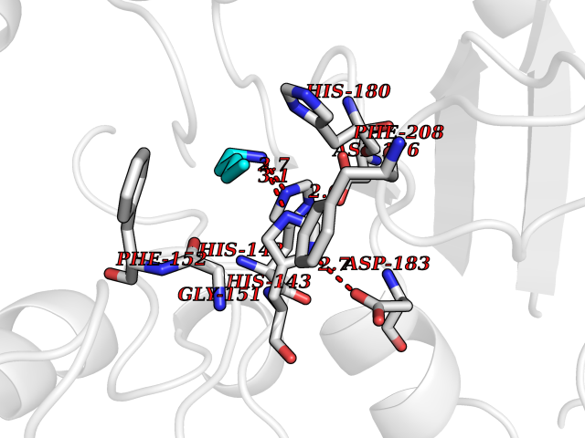Target general information Gen name HDAC8 Organism Homo sapiens (Human) Uniprot ID TTD ID Synonyms Histone deacetylase-8; HDACL1; HD8; CDA07 Protein family Histone deacetylase family, HD type 1 subfamily Biochemical class Carbon-nitrogen hydrolase Function Gives a tag for epigenetic repression and plays an important role in transcriptional regulation, cell cycle progression and developmental events. Histone deacetylases act via the formation of large multiprotein complexes. Also involved in the deacetylation of cohesin complex protein SMC3 regulating release of cohesin complexes from chromatin. May play a role in smooth muscle cell contractility. Responsible for the deacetylation of lysine residues on the N-terminal part of the core histones (H2A, H2B, H3 and H4). Related diseases Cornelia de Lange syndrome 5 (CDLS5) [MIM:300882]: A form of Cornelia de Lange syndrome, a clinically heterogeneous developmental disorder associated with malformations affecting multiple systems. It is characterized by facial dysmorphisms, abnormal hands and feet, growth delay, cognitive retardation, hirsutism, gastroesophageal dysfunction and cardiac, ophthalmologic and genitourinary anomalies. {ECO:0000269|PubMed:22885700, ECO:0000269|PubMed:22889856}. The disease is caused by variants affecting the gene represented in this entry. Drugs (DrugBank ID) DB07350; DB02565; DB07586; DB12565; DB05015; DB08168; DB01262; DB11841; DB14490; DB14491; DB14488; DB14501; DB14489; DB12645; DB01592; DB02917; DB06603; DB06819; DB03766; DB12847; DB06176; DB04297; DB00313; DB02546; DB01593; DB14487; DB14533; DB14548 Interacts with NA EC number EC 3.5.1.98 Uniprot keywords 3D-structure; Alternative splicing; Chromatin regulator; Chromosome; Cytoplasm; Disease variant; Hydrolase; Intellectual disability; Metal-binding; Nucleus; Obesity; Phosphoprotein; Proteomics identification; Reference proteome; Repressor; Transcription; Transcription regulation Protein physicochemical properties Chain ID A,B Molecular weight (Da) 39018.4 Length 351 Aromaticity 0.11 Instability index 38.57 Isoelectric point 6.06 Charge (pH=7) -5.26 3D Binding mode Sequence LVPVYIYSPEYVSMCDSLPKRAEMVHSLIEAYALHKQMRIVKPKVASMEEMATFHTDAYLQHLQKVSQEYGLGYDCPATEGIFDYAAAIGGATITAAQCLIDGMCKVAINWSGGWHHAKKDEASGFCYLNDAVLGILRLRRKFERILYVDLDLHHGDGVEDAFSFTSKVMTVSLHKFSPGFFPGTGDVSDVGLGKGRYYSVNVPIQDGIQDEKYYQICESVLKEVYQAFNPKAVVLQLGADTIAGDPMCSFNMTPVGIGKCLKYILQWQLATLILGGGGYNLANTARCWTYLTGVILGKTLSSEIPDHEFFTAYGPDYVLEITPSCRPDRNEPHRIQQILNYIKGNLKHVV Hydrogen bonds contact Hydrophobic contact | ||||