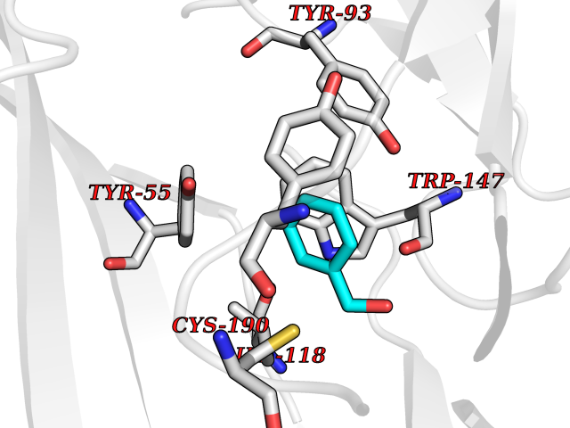 Target general information Gen name TH Organism Homo sapiens (Human) Uniprot ID TTD ID Synonyms Tyrosine 3-hydroxylase; TH Protein family Biopterin-dependent aromatic amino acid hydroxylase family Biochemical class Paired donor oxygen oxidoreductase Function Plays an important role in the physiology of adrenergic neurones. Related diseases Segawa syndrome autosomal recessive (ARSEGS) [MIM:605407]: A form of DOPA-responsive dystonia presenting in infancy or early childhood. Dystonia is defined by the presence of sustained involuntary muscle contractions, often leading to abnormal postures. Some cases present with parkinsonian symptoms in infancy. Unlike all other forms of dystonia, it is an eminently treatable condition, due to a favorable response to L-DOPA. {ECO:0000269|PubMed:10585338, ECO:0000269|PubMed:11196107, ECO:0000269|PubMed:11246459, ECO:0000269|PubMed:15505183, ECO:0000269|PubMed:15747353, ECO:0000269|PubMed:16049992, ECO:0000269|PubMed:17696123, ECO:0000269|PubMed:18058633, ECO:0000269|PubMed:18554280, ECO:0000269|PubMed:19491146, ECO:0000269|PubMed:20056467, ECO:0000269|PubMed:20430833, ECO:0000269|PubMed:21940685, ECO:0000269|PubMed:22264700, ECO:0000269|PubMed:22815559, ECO:0000269|PubMed:23762320, ECO:0000269|PubMed:23939262, ECO:0000269|PubMed:24753243, ECO:0000269|PubMed:7814018, ECO:0000269|PubMed:8528210, ECO:0000269|PubMed:8817341, ECO:0000269|PubMed:9613851, ECO:0000269|PubMed:9703425}. The disease is caused by variants affecting the gene represented in this entry.; DISEASE: May play a role in the pathogenesis of Parkinson disease (PD). A genome-wide copy number variation analysis has identified a 34 kilobase deletion over the TH gene in a PD patient but not in any controls. {ECO:0000269|PubMed:20809526}. Drugs (DrugBank ID) DB03552; DB04400; DB00765; DB00120; DB00360; DB00135 Interacts with P29762; P61978-2; Q99750; P08651-5; O75928-2; Q9UHX1-2; P0DJD3-2; P07101-3; Q9UJ04; C9J7I0; Q5MCW4 EC number EC 1.14.16.2 Uniprot keywords 3D-structure; Alternative splicing; Catecholamine biosynthesis; Cell projection; Cytoplasm; Cytoplasmic vesicle; Disease variant; Dystonia; Iron; Metal-binding; Monooxygenase; Neurotransmitter biosynthesis; Nucleus; Oxidoreductase; Parkinson disease; Parkinsonism; Phosphoprotein; Proteomics identification; Reference proteome; Synapse Protein physicochemical properties Chain ID A,B,C,D Molecular weight (Da) 34997 Length 306 Aromaticity 0.12 Instability index 42.59 Isoelectric point 5.32 Charge (pH=7) -12.31 3D Binding mode Sequence VPWFPRKVSELDKCHHLVTKFDPDLDLDHPGFSDQVYRQRRKLIAEIAFQYRHGDPIPRVEYTAEEIATWKEVYTTLKGLYATHACGEHLEAFALLERFSGYREDNIPQLEDVSRFLKERTGFQLRPVAGLLSARDFLASLAFRVFQCTQYIRHASSPMHSPEPDCCHELLGHVPMLADRTFAQFSQDIGLASLGASDEEIEKLSTLYWFTVEFGLCKQNGEVKAYGAGLLSSYGELLHCLSEEPEIRAFDPEAAAVQPYQDQTYQSVYFVSESFSDAKDKLRSYASRIQRPFSVKFDPYTLAIDV Hydrogen bonds contact Hydrophobic contact | ||||
