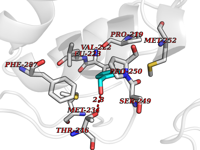Target general information Gen name DPP9 Organism Homo sapiens (Human) Uniprot ID TTD ID Synonyms Dipeptidyl peptidase-like protein 9; Dipeptidyl peptidase IX; Dipeptidyl peptidase IV-related protein 2; DPRP2; DPRP-2; DPP IX; DPLP9; DP9 Protein family Peptidase S9B family, DPPIV subfamily Biochemical class Peptidase Function Dipeptidyl peptidase that cleaves off N-terminal dipeptides from proteins having a Pro or Ala residue at position 2. Related diseases Hatipoglu immunodeficiency syndrome (HATIS) [MIM:620331]: An autosomal recessive immunologic disorder manifesting in infancy or early childhood, and characterized by failure to thrive, short stature, skin pigmentation abnormalities, pancytopenia, and susceptibility to recurrent infections. {ECO:0000269|PubMed:36112693}. The disease is caused by variants affecting the gene represented in this entry. Drugs (DrugBank ID) NA Interacts with Q9NXR5; Q86TI2; Q6NUP5; P46379-2; Q8WUW1; Q96A83-2; O75190-2; O14645; Q01658; P29692-2; Q06787-7; Q9Y5Q9; O14901; Q9BVL2; Q96CV9; Q06830; P14678-2; P49458; Q11203; Q13148; P14927 EC number EC 3.4.14.5 Uniprot keywords 3D-structure; Acetylation; Alternative splicing; Aminopeptidase; Cytoplasm; Disease variant; Hydrolase; Nucleus; Protease; Proteomics identification; Reference proteome; Serine protease Protein physicochemical properties Chain ID A Molecular weight (Da) 92797.4 Length 808 Aromaticity 0.12 Instability index 37.45 Isoelectric point 6.34 Charge (pH=7) -8.98 3D Binding mode Sequence AARFQVQKHSWDGLRSIIHGSRKAPHDFQFVQKSGPHSHRLYYLGMPYRENSLLYSEIPKLLLSWKQMLDHFQATPHHGVYSREEELLRERKRLGVFGITSYDFHSESGLFLFQASNSLFHCRDGGKNGFMVSPMKPLEIKTQCSGPRMDPKICPADPAFFSFINNSDLWVANIETGEERRLTFCHQNVLDDPKSAGVATFVIQEEFDRFTGYWWCPTASWEGLKTLRILYEEVDESEVEVIHVPSPALEERKTDSYRYPRTGSKNPKIALKLAEFQTDSQGKIVSTQEKELVQPFSSLFPKVEYIARAGWTRDGKYAWAMFLDRPQQWLQLVLLPPALFIPSTENEEQRLASARAVPRNVQPYVVYEEVTNVWINVHDIFYPFPQLCFLRANECKTGFCHLYKVTAVLKSQGYDWSEPFSPGEDEFKCPIKEEIALTSGEWEVLARHGSKIWVNEETKLVYFQGTKDTPLEHHLYVVSYEAAGEIVRLTTPGFSHSCSMSQNFDMFVSHYSSVSTPPCVHVYKLSGPDDDPLHKQPRFWASMMEADYVPPEIFHFHTRSDVRLYGMIYKPHALQPGKKHPTVLFVYGGPQVQLVNNSFKGIKYLRLNTLASLGYAVVVIDGRGSCQRGLRFEGALKNQMGQVEIEDQVEGLQFVAEKYGFIDLSRVAIHGWSYGGFLSLMGLIHKPQVFKVAIAGAPVTVWMAYDTGYTERYMDVPENNQHGYEAGSVALHVEKLPNEPNRLLILHGFLDENVHFFHTNFLVSQLIRAGKPYQLQIYPNERHSIRCPESGEHYEVTLLHFLQEYLHH Hydrogen bonds contact Hydrophobic contact | ||||