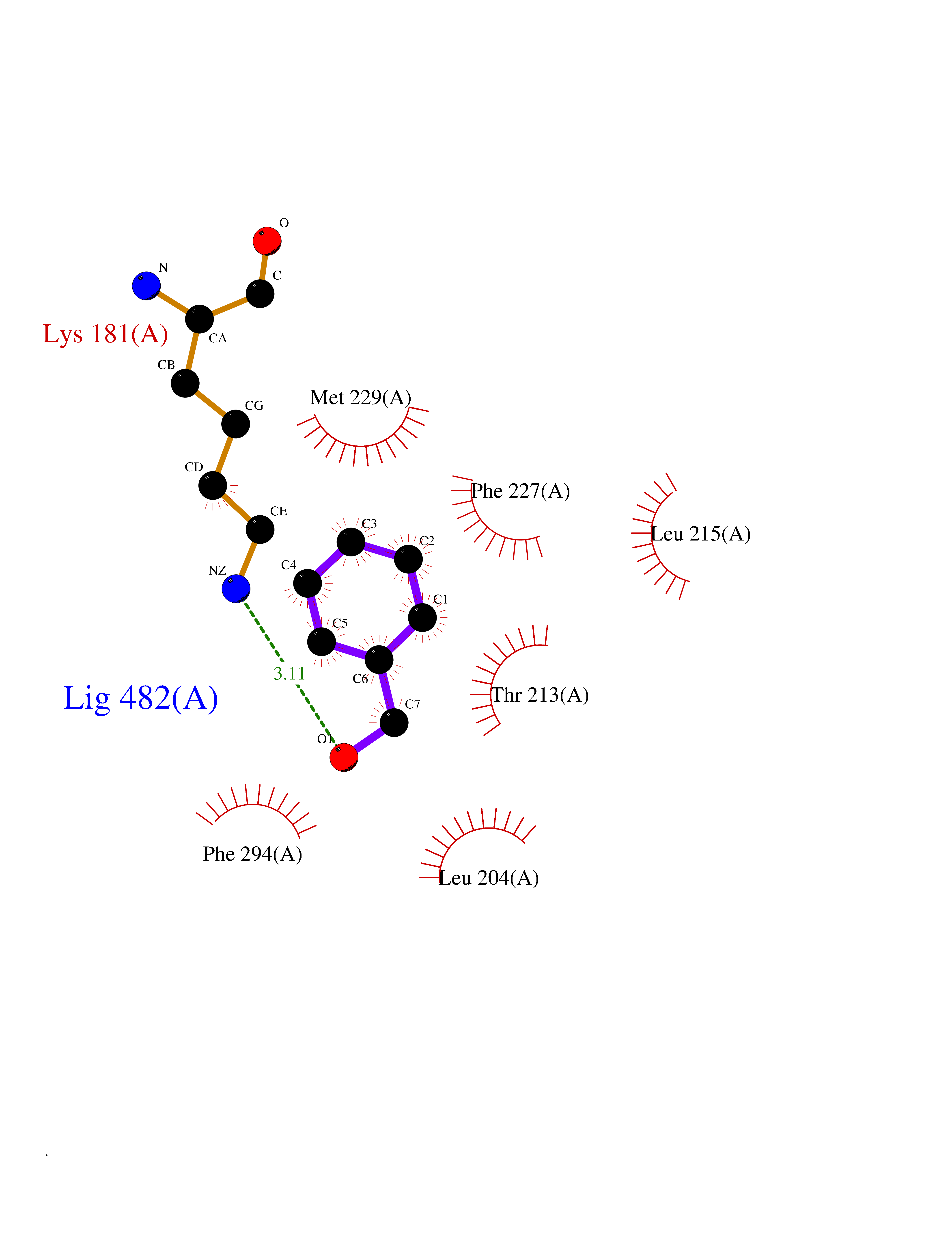 Target general information Gen name cocE Organism Rhodococcus sp. (strain MB1 Bresler) Uniprot ID TTD ID NA Synonyms NA Protein family CocE/NonD hydrolase family Biochemical class Hydrolase Function Carboxylic ester hydrolase activity.Dipeptidyl-peptidase activity. Related diseases Thiamine metabolism dysfunction syndrome 5, episodic encephalopathy type (THMD5) [MIM:614458]: An autosomal recessive metabolic disorder due to an inborn error of thiamine metabolism. The phenotype is highly variable, but in general, affected individuals have onset in early childhood of acute encephalopathic episodes associated with increased serum and CSF lactate. These episodes result in progressive neurologic dysfunction manifest as gait disturbances, ataxia, dystonia, and spasticity, which in some cases may result in loss of ability to walk. Cognitive function is usually preserved, although mildly delayed development has been reported. These episodes are usually associated with infection and metabolic decompensation. Some patients may have recovery of some neurologic deficits. {ECO:0000269|PubMed:22152682}. The disease is caused by variants affecting the gene represented in this entry. Drugs (DrugBank ID) DB03793; DB01795 Interacts with NA EC number 3.1.1.84 Uniprot keywords 3D-structure; Cytoplasm; Direct protein sequencing; Hydrolase; Serine esterase Protein physicochemical properties Chain ID A Molecular weight (Da) 62127.9 Length 574 Aromaticity 0.09 Instability index 26.62 Isoelectric point 4.56 Charge (pH=7) -33.24 3D Binding mode Sequence VDGNYSVASNVMVPMRDGVRLAVDLYRPDADGPVPVLLVRNPYDKFDVFAWSTQSTNWLEFVRDGYAVVIQDTRGLFASEGEFVPHVDDEADAEDTLSWILEQAWCDGNVGMFGVSYLGVTQWQAAVSGVGGLKAIAPSMASADLYRAPWYGPGGALSVEALLGWSALIGTGLITSRSDARPEDAADFVQLAAILNDVAGAASVTPLAEQPLLGRLIPWVIDQVVDHPDNDESWQSISLFERLGGLATPALITAGWYDGFVGESLRTFVAVKDNADARLVVGPWSHSNLTGRNADRKFGIAATYPIQEATTMHKAFFDRHLRGETDALAGVPKVRLFVMGIDEWRDETDWPLPDTAYTPFYLGGSGAANTSTGGGTLSTSISGTESADTYLYDPADPVPSLGGTLLFHNGDNGPADQRPIHDRDDVLCYSTEVLTDPVEVTGTVSARLFVSSSAVDTDFTAKLVDVFPDGRAIALCDGIVRMRYRETLVNPTLIEAGEIYEVAIDMLATSNVFLPGHRIMVQVSSSNFPKYDRNSNTGGVIAREQLEEMCTAVNRIHRGPEHPSHIVLPIIKRK Hydrogen bonds contact Hydrophobic contact | ||||