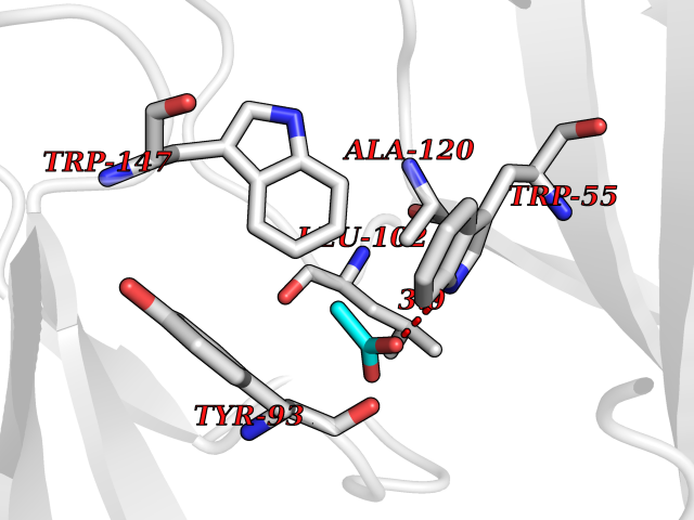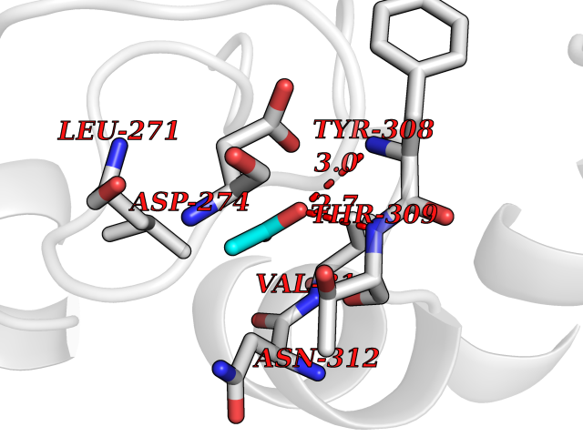 Target general information Gen name cumD Organism Pseudomonas fluorescens Uniprot ID TTD ID NA Synonyms NA Protein family NA Biochemical class Hydrolase Function Hydrolase activity. Related diseases Intellectual developmental disorder, autosomal dominant 62 (MRD62) [MIM:618793]: An autosomal dominant form of intellectual disability, a disorder characterized by significantly below average general intellectual functioning associated with impairments in adaptive behavior and manifested during the developmental period. MRD62 is characterized by mild to moderately impaired intellectual development. {ECO:0000269|PubMed:27479843, ECO:0000269|PubMed:29460436}. The disease is caused by variants affecting the gene represented in this entry. Drugs (DrugBank ID) DB03741; DB03793; DB03568; DB02531; DB03750; DB02406; DB03766 Interacts with NA EC number NA Uniprot keywords 3D-structure; Hydrolase Protein physicochemical properties Chain ID A Molecular weight (Da) 30307.9 Length 271 Aromaticity 0.1 Instability index 37.49 Isoelectric point 5.02 Charge (pH=7) -11.58 3D Binding mode Sequence NLEIGKSILAAGVLTNYHDVGEGQPVILIHGSGPGVSAYANWRLTIPALSKFYRVIAPDMVGFGFTDRPENYNYSKDSWVDHIIGIMDALEIEKAHIVGNAFGGGLAIATALRYSERVDRMVLMGAAGTRFDVTEGLNAVWGYTPSIENMRNLLDIFAYDRSLVTDELARLRYEASIQPGFQESFSSMFPEPRQRWIDALASSDEDIKTLPNETLIIHGREDQVVPLSSSLRLGELIDRAQLHVFGRCGHWTQIEQTDRFNRLVVEFFNEA Hydrogen bonds contact Hydrophobic contact | ||||